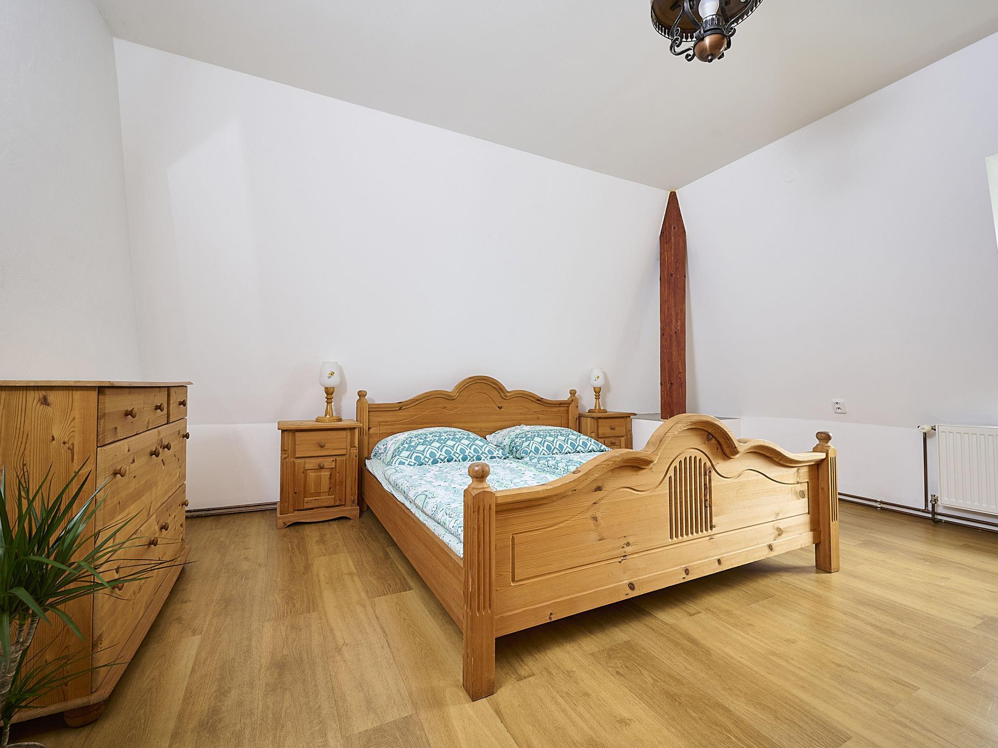 "Riedlovka", 4-room apartment on 2nd floor. Beautiful and rustic furnishings: large living room with TV. 1 small room with 1 bed. 1 room with 1 x 1 bunk beds. Kitchen (oven, dishwasher, 4 ceramic glass hob hotplates, toaster, kettle, microwave, freezer, electric coffee machine) with dining table. Bathroom. Heating. Facilities: washing machine, children's high chair, baby cot, hair dryer, baby changing unit. Internet (WiFi). Please note: non-smokers only.