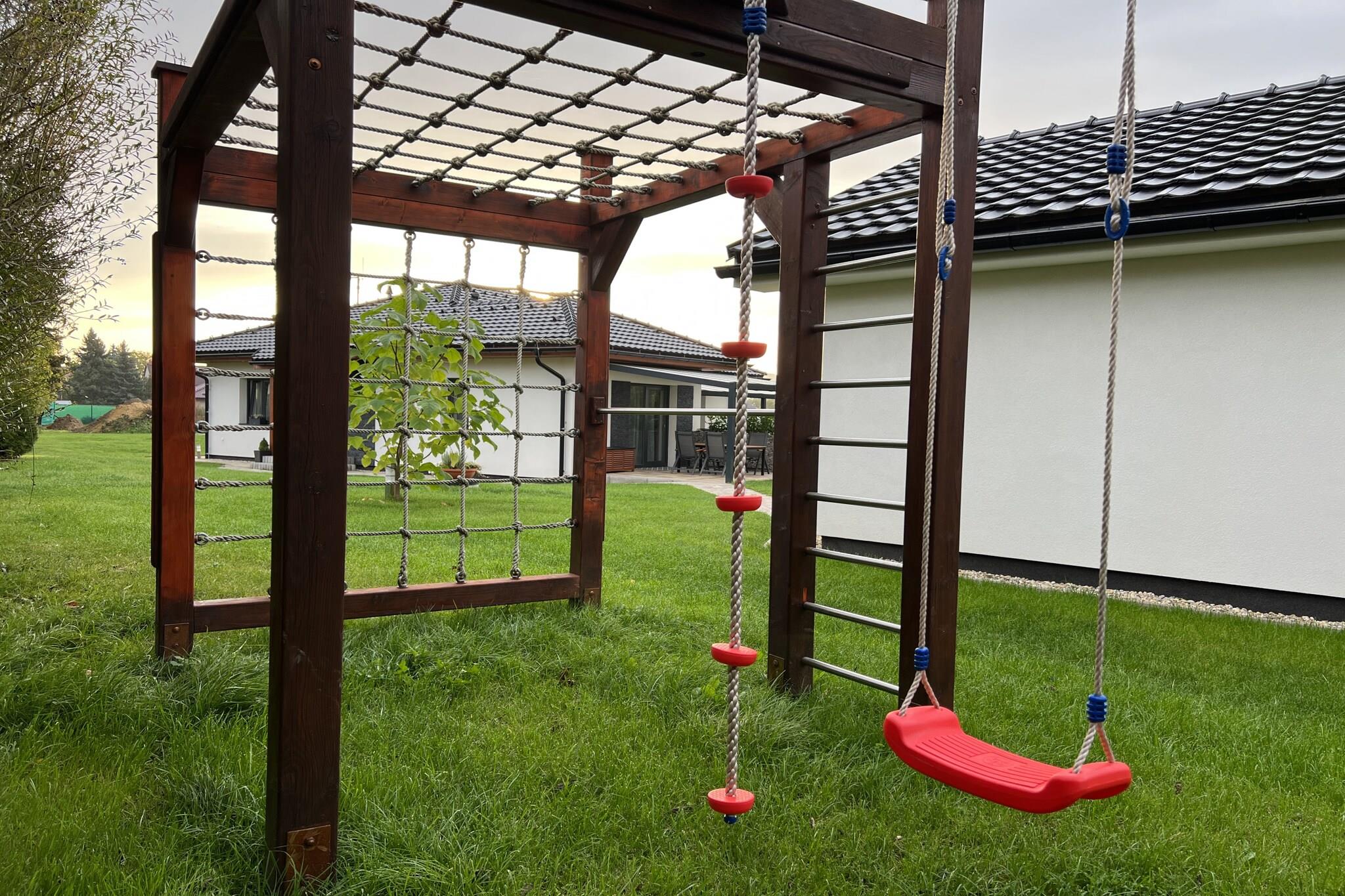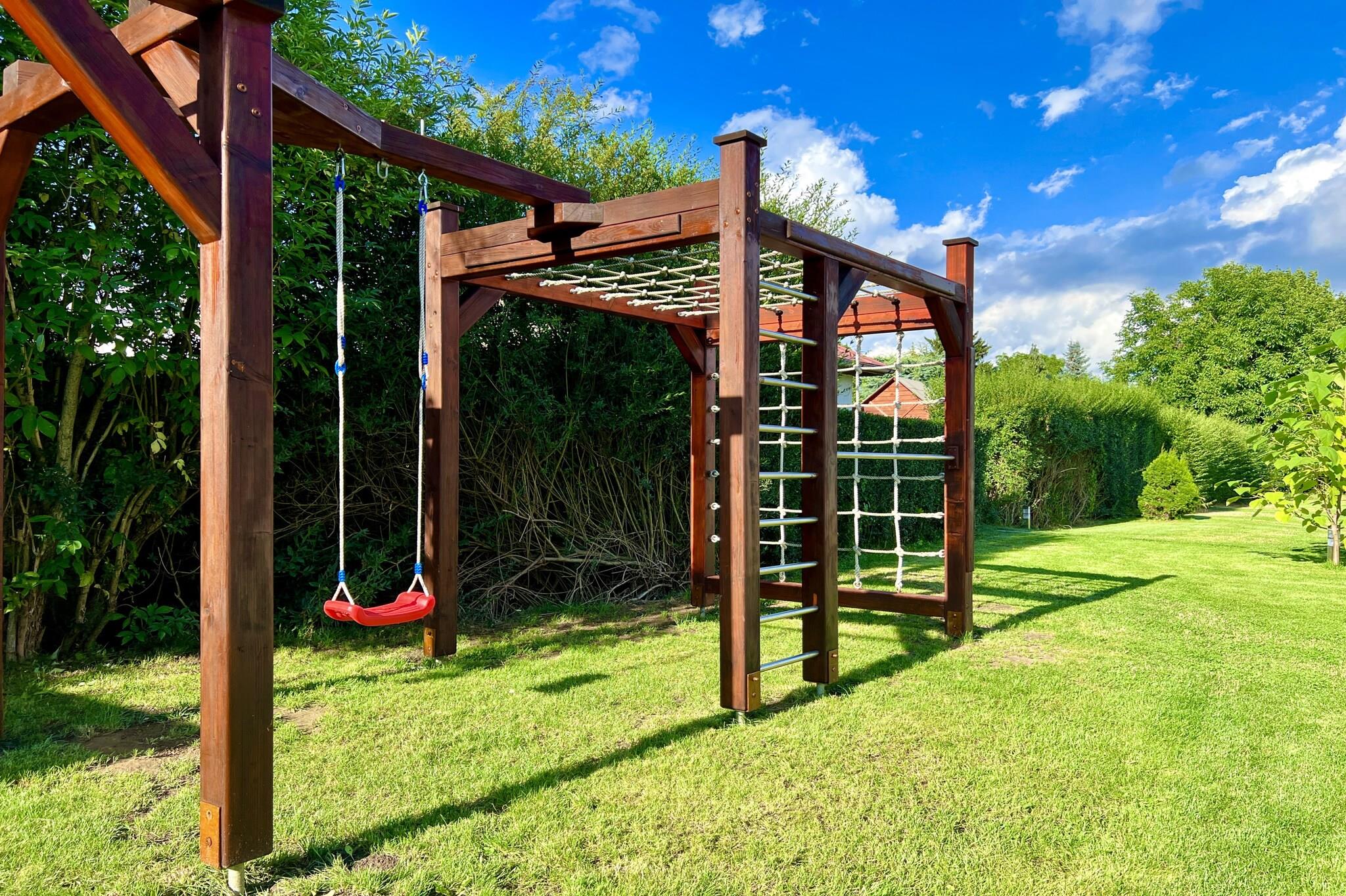 Omfavn roen i vores charmerende villa, designet til at rumme op til 6 gæster i komfort og stil. Villaen har 2 smukt indrettede soveværelser og et luksuriøst badeværelse og tilbyder et fredfyldt tilflugtssted for familier eller små grupper. For yngre gæster giver sovesofaen en hyggelig mulighed for to børn. Villaen er fuldt udstyret med moderne bekvemmeligheder, herunder et stilfuldt brusebad til foryngende øjeblikke og et køkken med køleskab, fryser, ovn, mikroovn og alt det nødvendige køkkenudstyr til at tilberede dejlige måltider. En opvaskemaskine er inkluderet for at gøre rengøring ubesværet, så du kan slappe af og nyde din ferie uden bekymringer. Efter en dag med eventyr kan du slappe af i villaens komfort. Slap af med en bog på den bløde sofa, forkæl dig selv med dine yndlingsprogrammer på smart-tv'et, eller nyd en varm kop te eller kaffe. For ekstra bekvemmelighed inkluderer villaen en vaskemaskine til at friske dit tøj op. Træd udenfor til den indbydende terrasse og ekspansive have, perfekt for børn at lege frit og kæledyr til at strejfe omkring. Villaen ligger kun 2 km fra den smukke Macha-sø og en kort 0,75 km gåtur til Doksy-togstationen, og tilbyder nem adgang til de bedste lokale attraktioner. Den pulserende by Doksy er i nærheden, og eventyr venter med forlystelsesparker inden for 3 til 14 km. Naturelskere kan udforske naturreservatet Bohemian Switzerland, kun 50 km væk. Villaen er opdelt i to private rum, hver med sin egen terrasse og have, hvilket sikrer fred og privatliv for alle gæster.