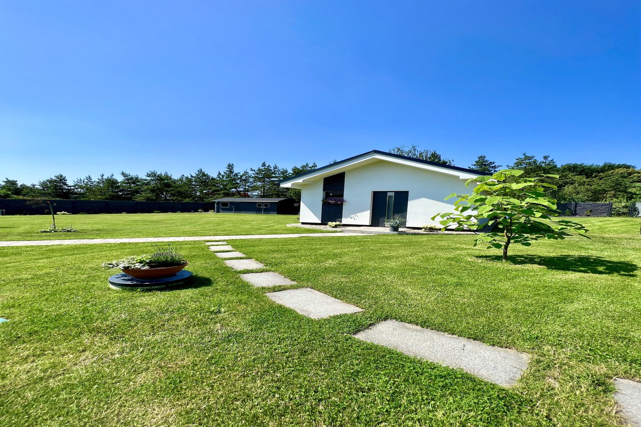 Stueetage: (åbent køkken(kogeplade(induktion), elkedel, brødrister, kaffemaskine, ovn, mikrobølgeovn, opvaskemaskine , køleskab, fryser, ), stue / spisestue(dobbeltsovesofa, Fjernsyn, spisebord, sofahjørne), soveværelse(dobbeltseng, Fjernsyn), soveværelse(enkeltseng, enkeltseng), badeværelse(bruser, håndvask, toilet), toilet(toilet), Internetadgang) grill, tørretumbler, vaskemaskine, varme(central), terrasse(28 m2), have, havemøbler, parkering