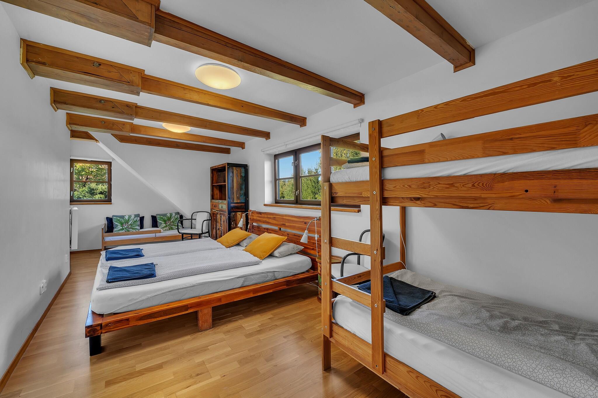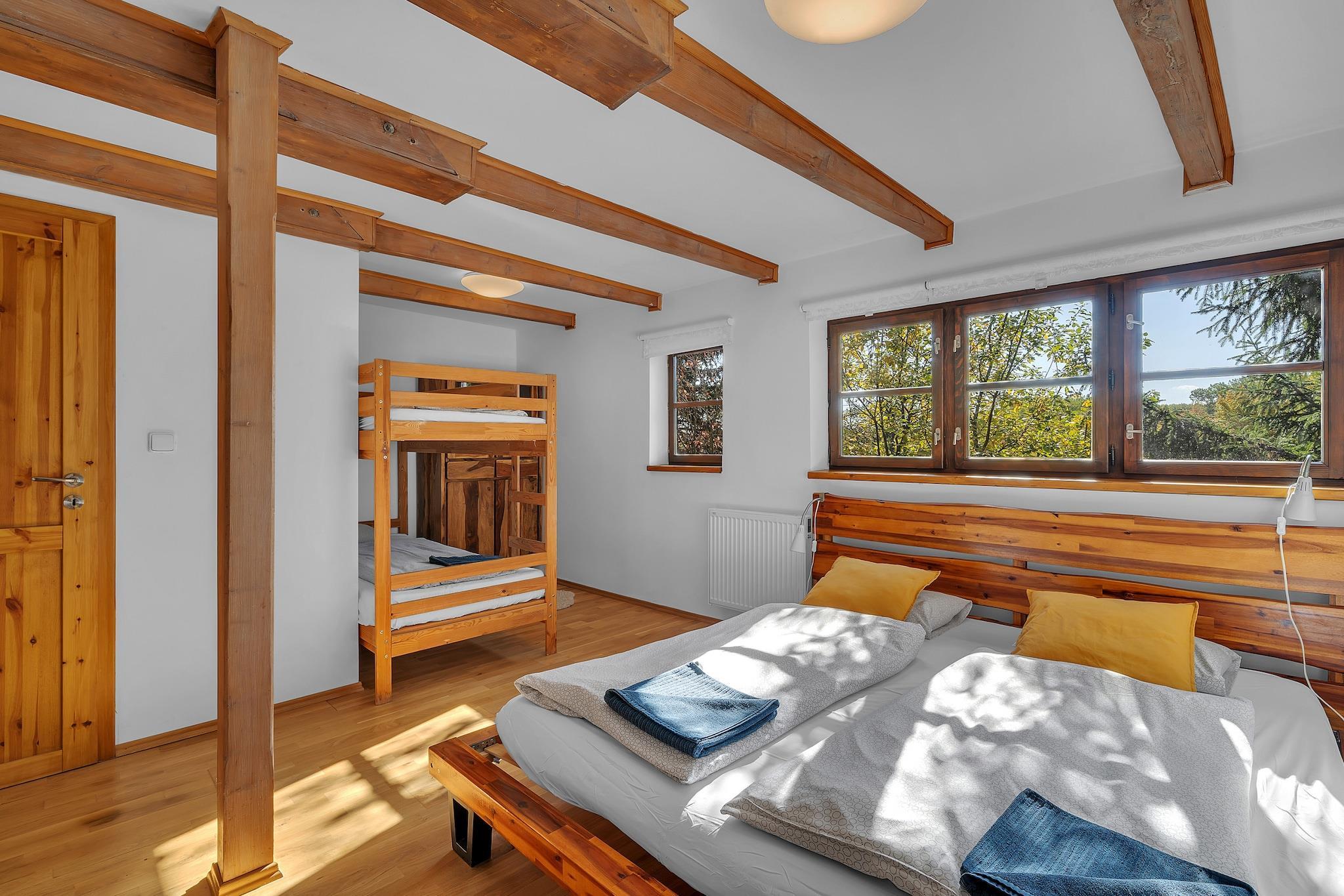 Denne charmerende moderne villa, beliggende i den maleriske by Dolní Branná, er det ideelle tilflugtssted for en fredelig ferie. Villaen er omgivet af frodige grønne områder og tilbyder fredfyldte omgivelser for familier eller grupper på op til 10 personer. Dets indbydende og rummelige interiør giver rigelig plads til både afslapning og underholdning, hvilket gør det til et perfekt valg til familieferier eller en ferie med venner. Landsbyen er et paradis for udendørsentusiaster, der tilbyder en blanding af natur og ro. Villaen med tre soveværelser er gennemtænkt designet til at sikre komfort for alle gæster. Med nok badeværelser til at rumme alle, er der ingen grund til at stå i kø. For ekstra afslapning byder villaen på sauna og spabad, der giver den ultimative wellness-oplevelse. Jacuzzien er inkluderet i prisen, med et nominelt gebyr for forvarmning ved ankomst. Det moderne køkken er fuldt udstyret til dine kulinariske behov, med køleskab, ovn, mikroovn og alt det nødvendige køkkenudstyr. Efter madlavningen kan du slappe af og lade opvaskemaskinen tage sig af oprydningen. Udenfor er den smukke have det perfekte sted for kæledyr og børn at lege sikkert. En privat swimmingpool tilbyder en forfriskende flugt om sommeren, og grillpladsen er et ideelt sted at slappe af og nyde aftenen. Uanset om du svømmer, griller eller bare nyder solskin, giver denne villa et vidunderligt miljø til afslapning. Beliggenheden giver også nem adgang til både vinter- og sommeraktiviteter, med nærliggende skisportssteder om vinteren og vandre-, cykling- og naturudforskning i de varmere måneder.
