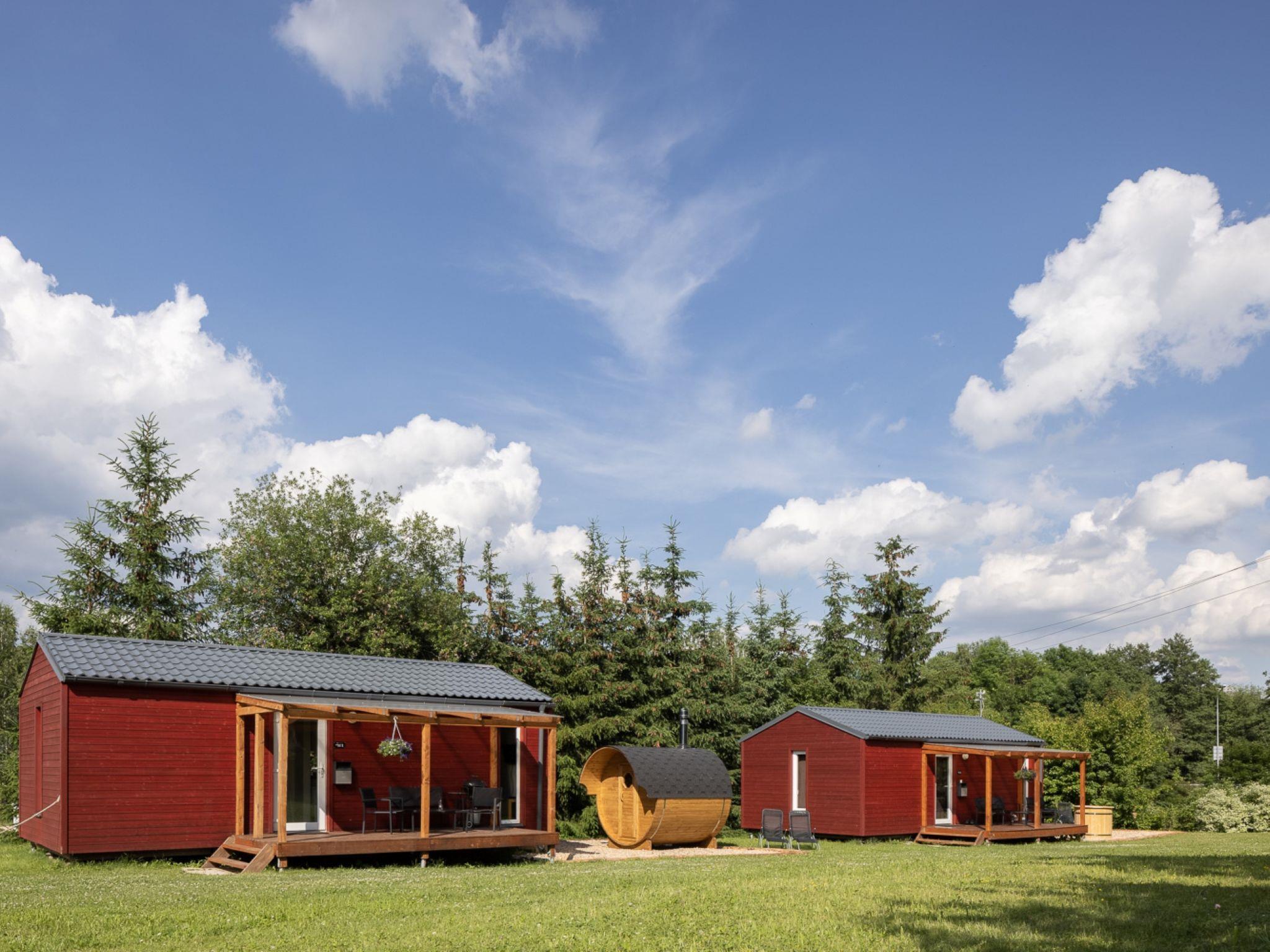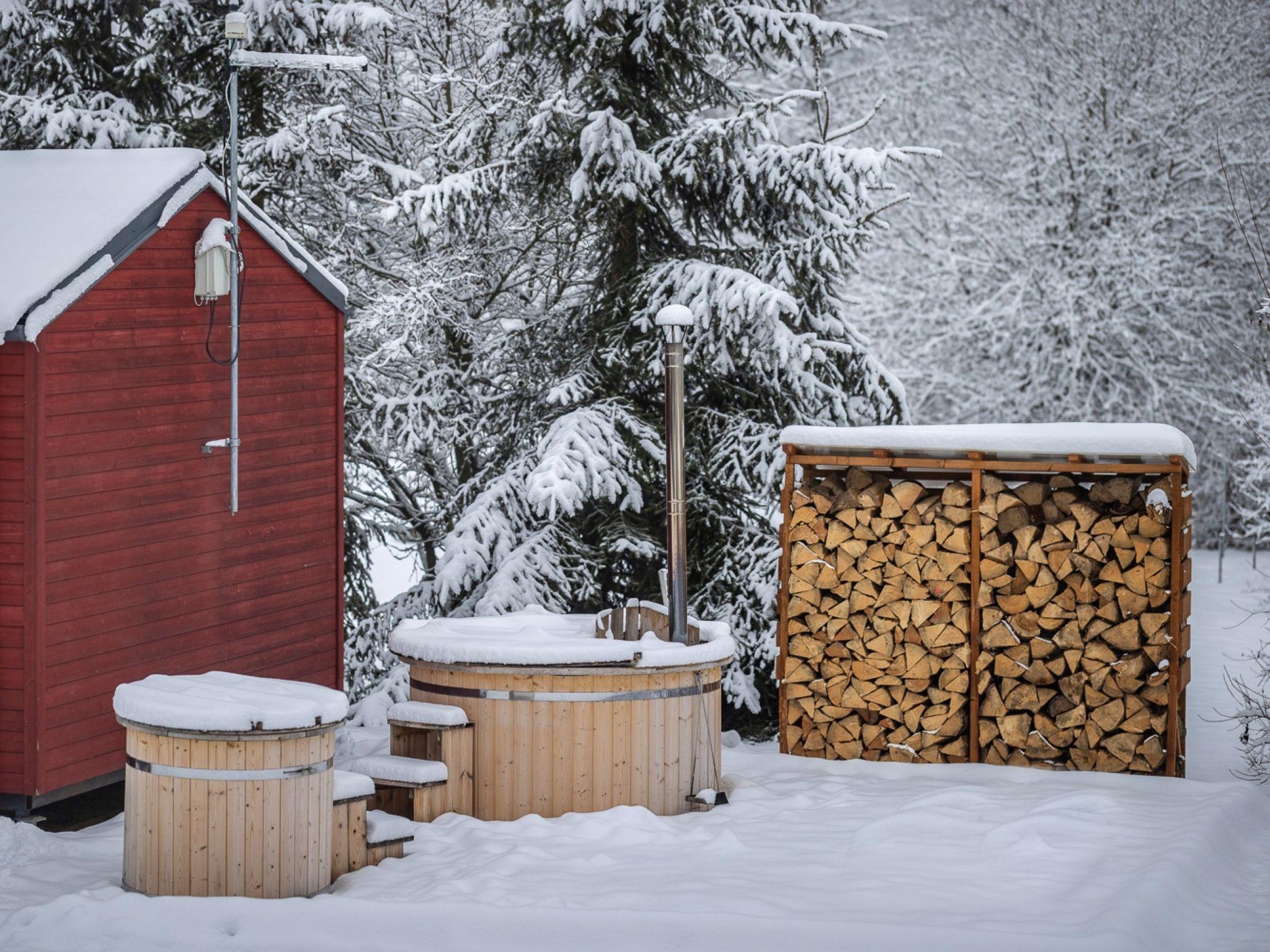 "Pod Lišcím kopcem 2+2 hot tube", 2-room cottage. Living/sleeping room with 1 double sofabed and TV. Exit to the terrace. 1 room with 1 double bed. Kitchenette (4 ceramic glass hob hotplates, kettle, microwave) with dining table. Shower/WC. Terrace. Terrace furniture. Facilities: Internet (WiFi, free). Please note: suitable for families. Non-smoking house. Maximum 1 pet/ dog allowed.