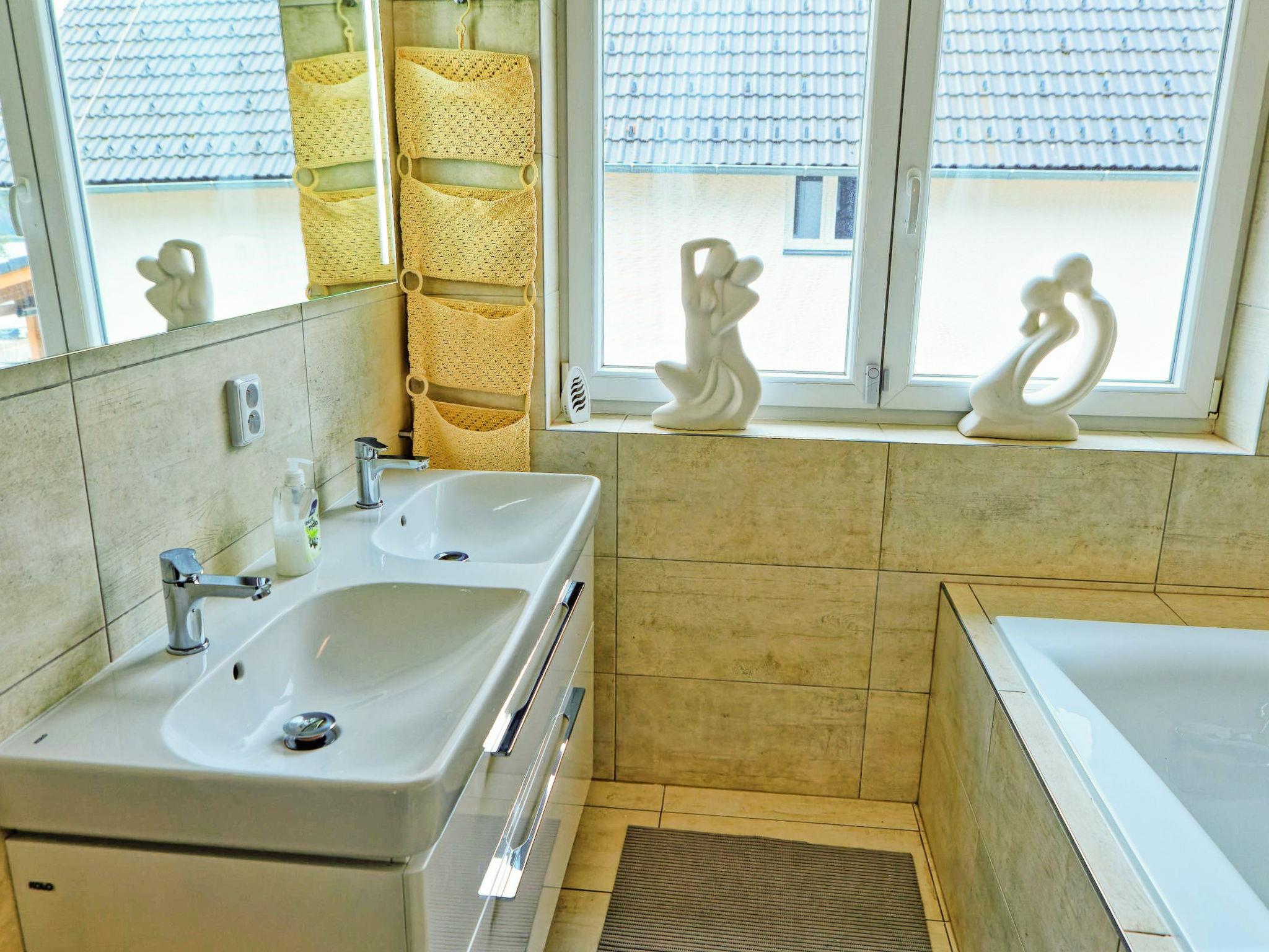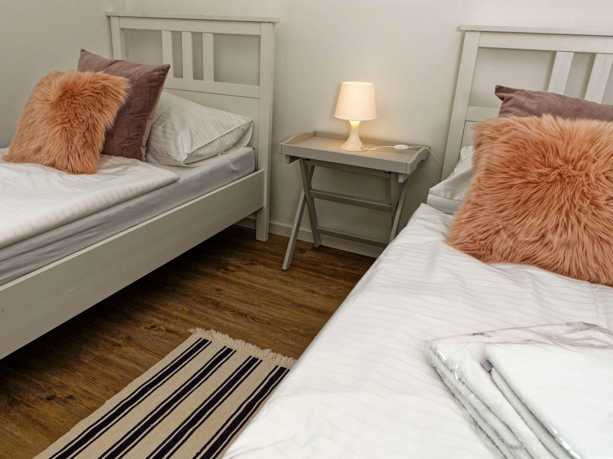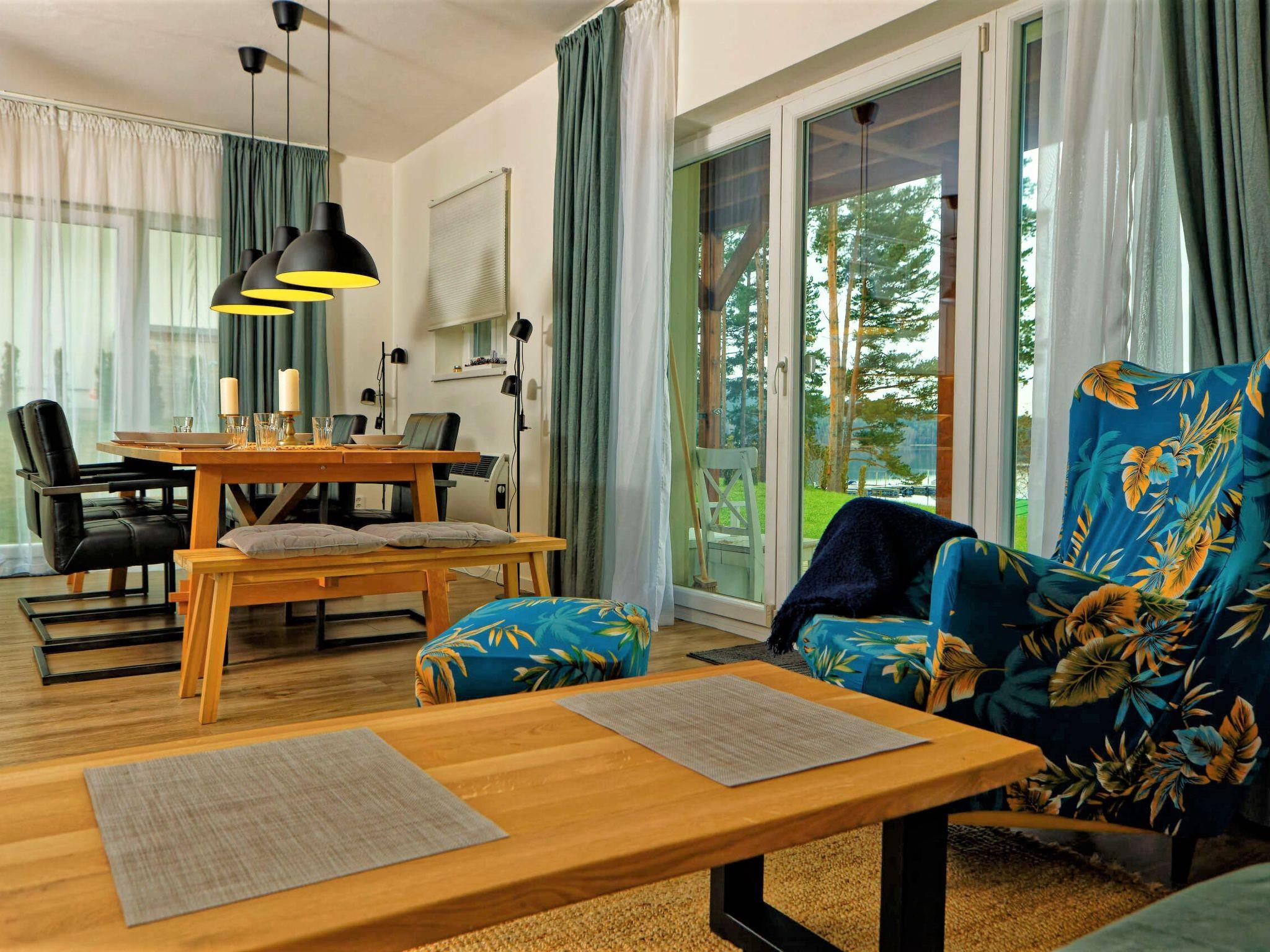 "Lakeside Village 3", 5-room house 96 m2 on 2 levels. Comfortable and cosy furnishings: living room with 1 sofabed. Kitchenette (4 hot plates, oven, dishwasher, kettle, microwave, electric coffee machine) with dining table, satellite TV. Shower, sep. WC. Floor heating. Upper floor: 4 rooms, each room with 1 double bed. Bathroom. Balcony, terrace. Terrace furniture. Partial view of the lake. Facilities: washing machine. Internet (WiFi, free). Suitable for families. Dog (extra) on request.