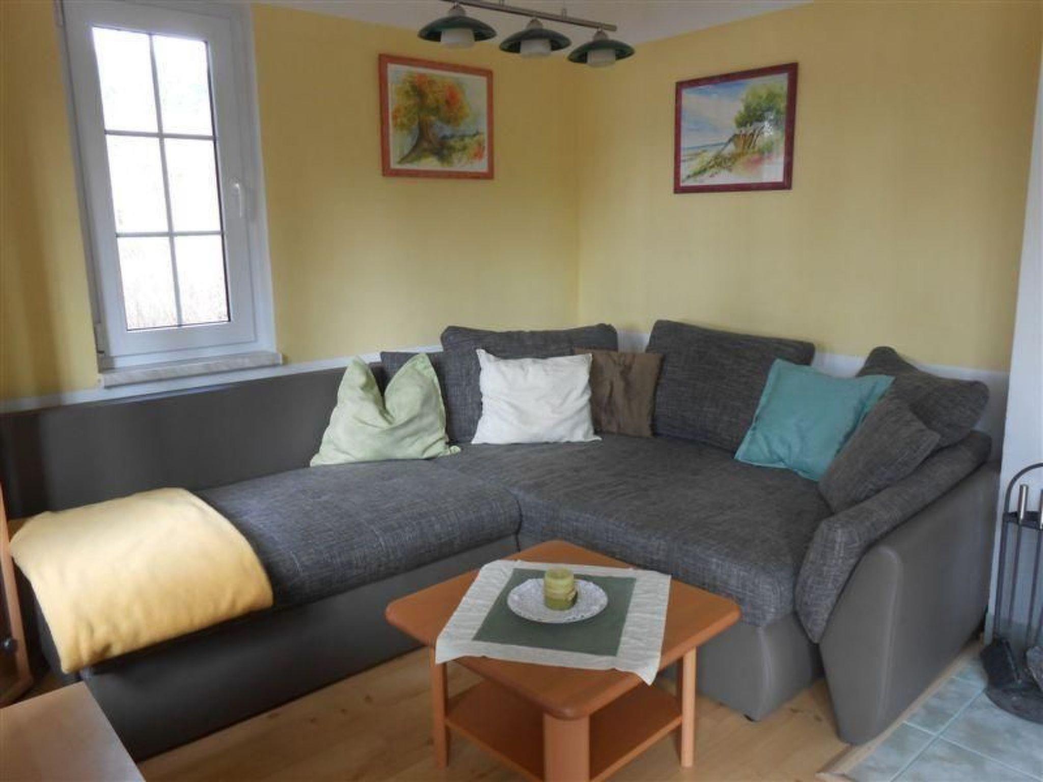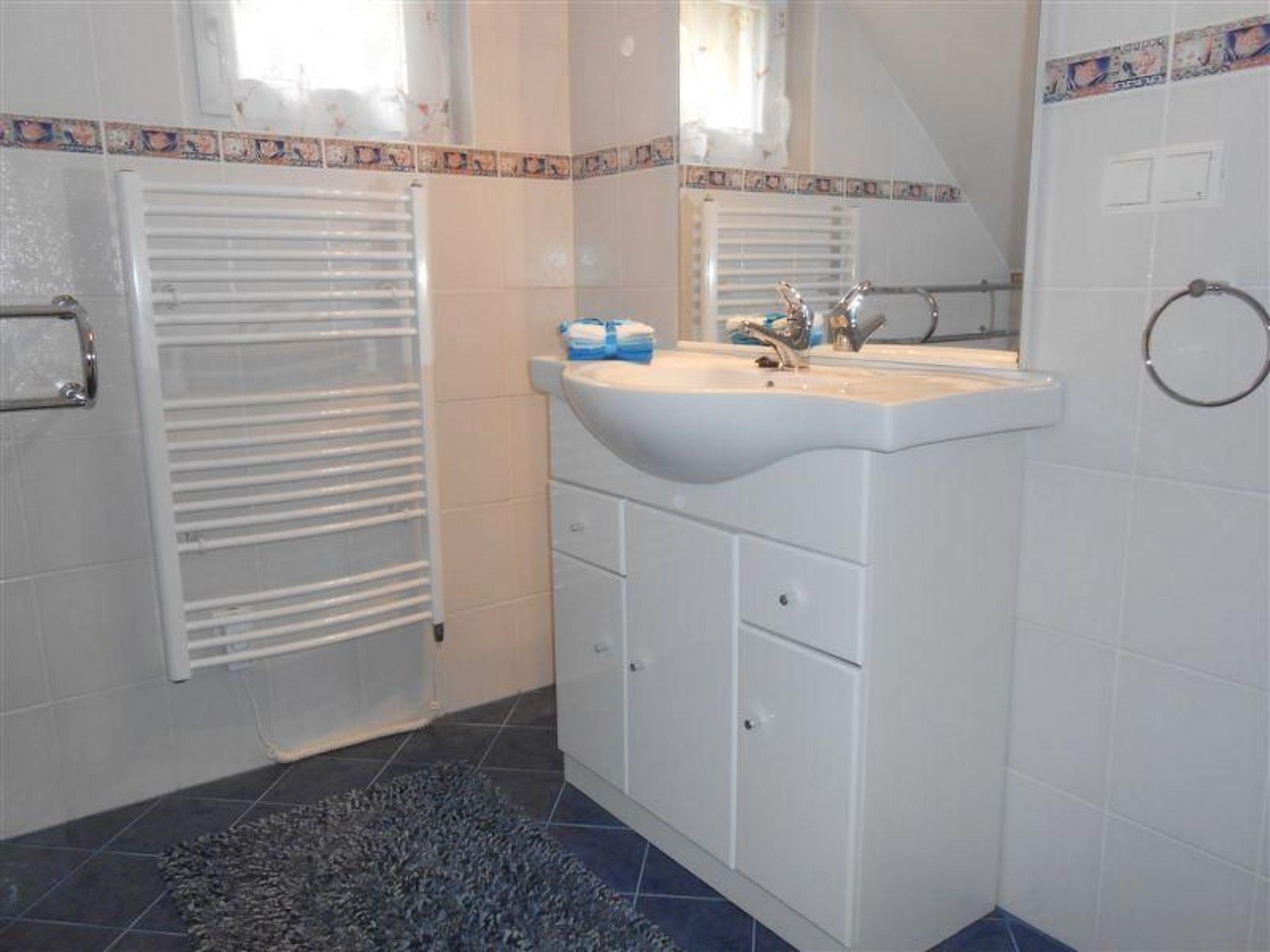 On the ground floor there is a large, bright room on the lake side with a very well-equipped kitchen in a nice design and the living room, which is furnished with a SAT TV and a cosy and spacious couch. The kitchen includes a ceramic hob (four plates), an oven, a dishwasher, a spacious fridge, a kettle, a mini oven, a filter coffee machine, a toaster and all crockery, pots and pans, etc... as well as many useful cooking utensils. There is also an easy-to-use wood-burning stove in this room, which - please note - is also the only source of heating. (Note: we provide you with wood for the first day, if you need more, the tenant is responsible for purchasing it - this is the general custom in this region; there are no radiators or central heating).