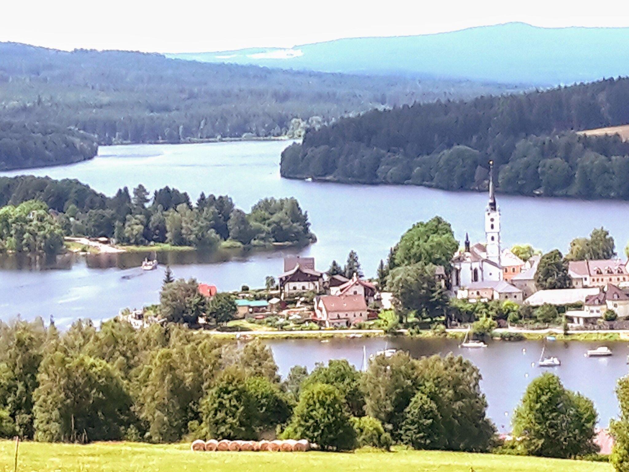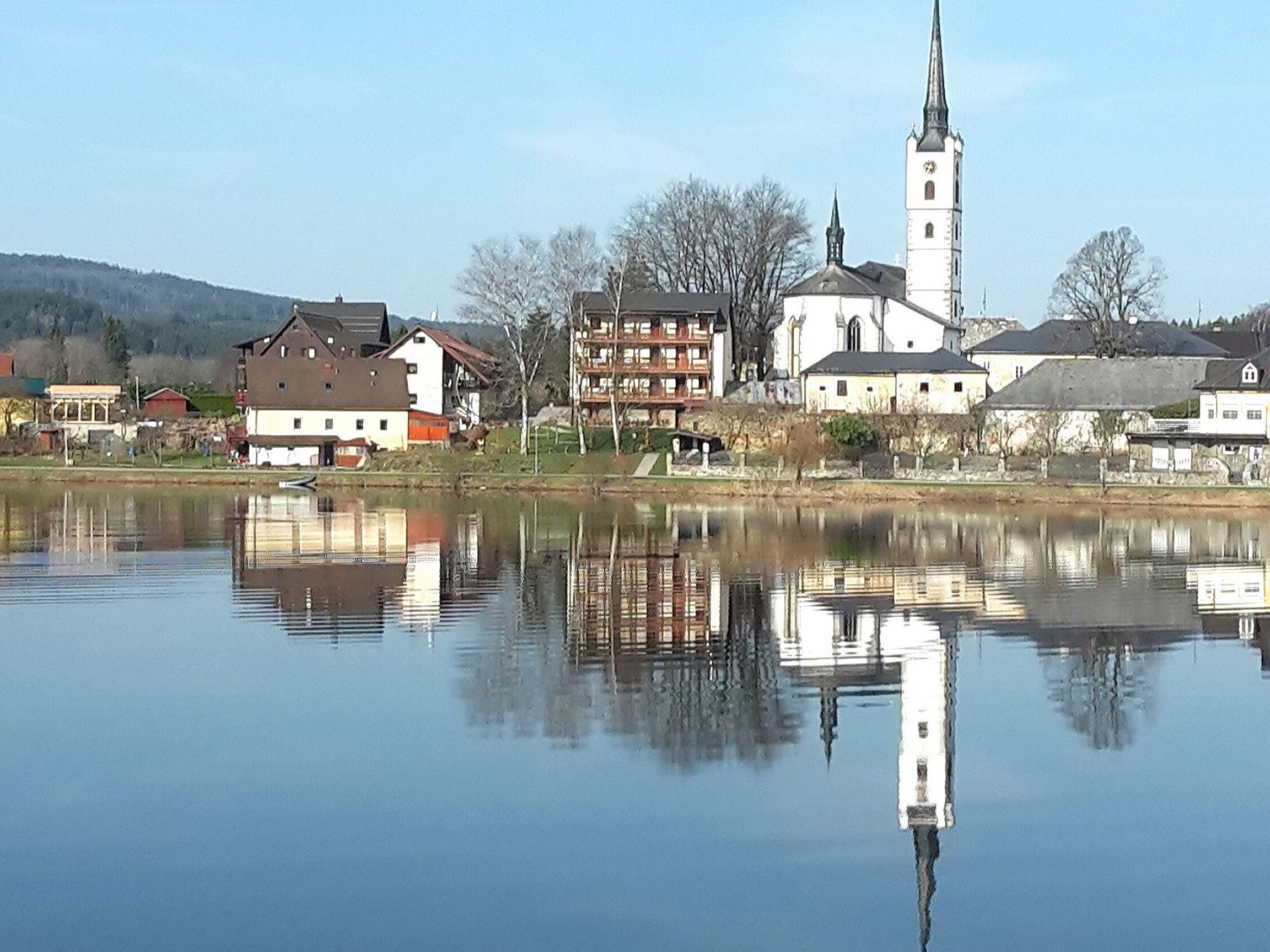The holiday home, built in 2006, is located on the edge of a small, idyllic holiday home settlement outside the lively village of Frymburk.