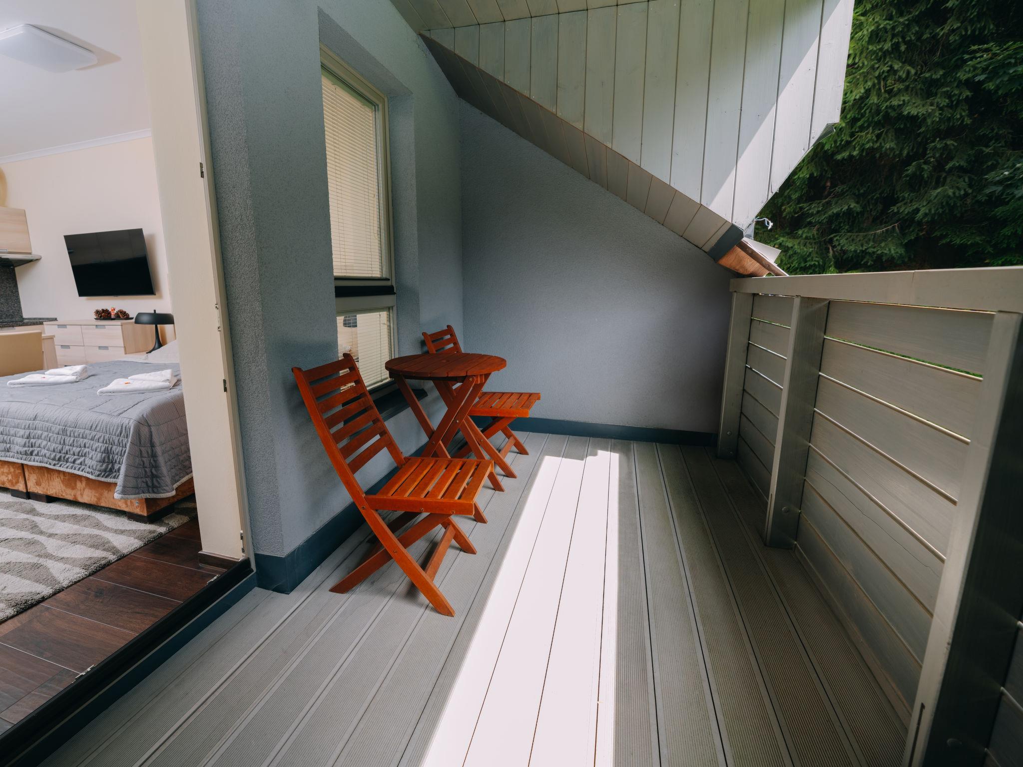 "Harrachov Resident", 1-room studio 38 m2 on 1st floor. Modern and cosy furnishings: living/sleeping room with 1 double sofabed, 1 double bed and TV. Kitchenette (2 ceramic glass hob hotplates, kettle, microwave, electric coffee machine, Capsules for coffee machine (Dolce Gusto)) with dining table. Shower/WC. Heating. Large balcony. Balcony furniture, box-room. View of the forest. Facilities: Internet (WiFi, free). Parking space n 206. Please note: suitable for families. Non-smokers only.