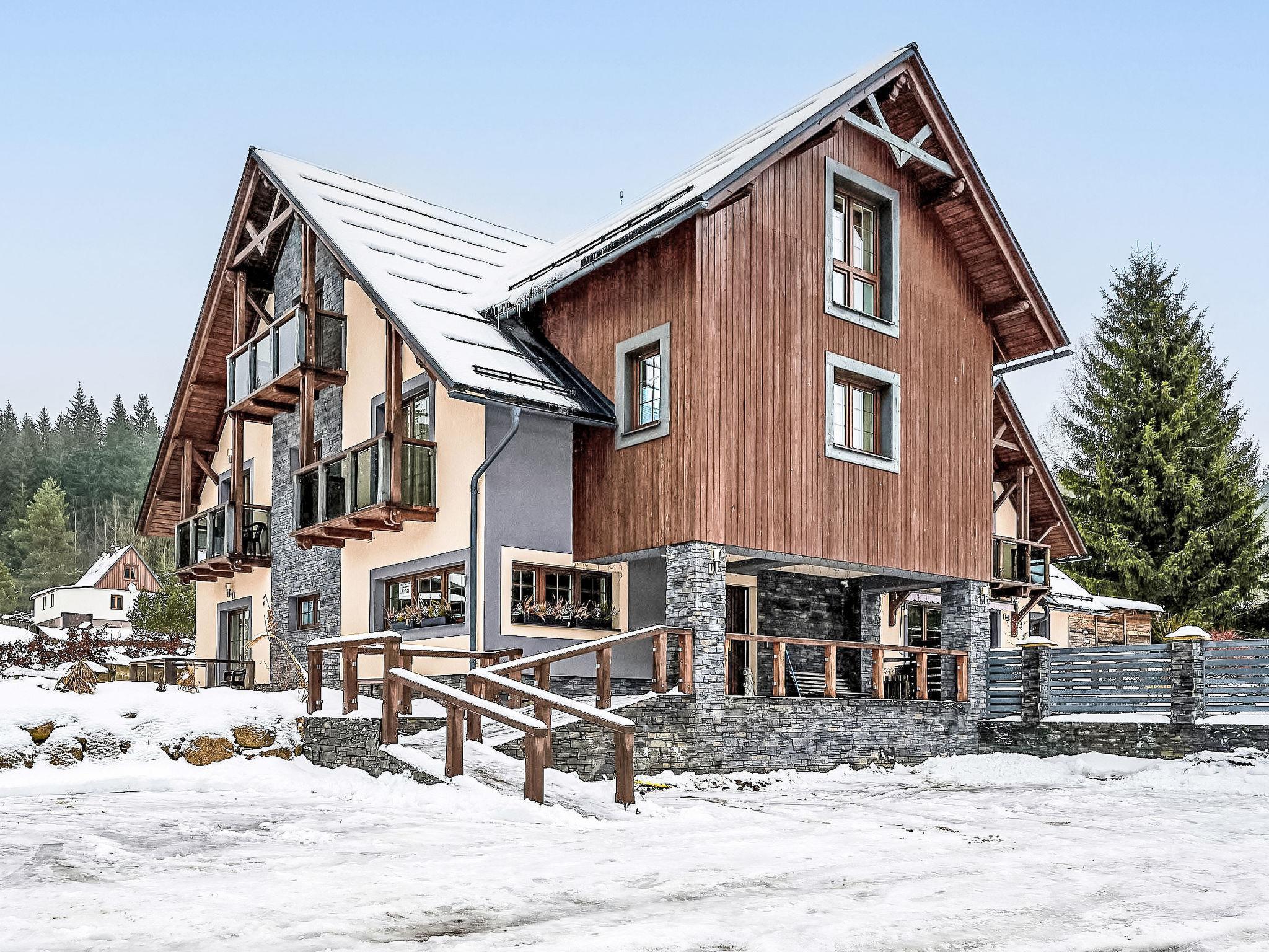 Very beautiful, cosy apartment house "Anenské údolí", 3 storeys, built in 2023. 6 apartments in the property. In a quiet, sunny position, 100 m from the edge of the forest, 800 m from the skiing area, 150 m from the stream, in a cul-de-sac. Private: terrace, garden furniture, barbecue, fireplace. In the house: lounge, WiFi, central heating system. Parking (for 6 cars) at the house. Supermarket 1 km, restaurant, café 700 m, bicycle rental 1 km, bus stop "Harrachov centrum" 1 km, railway station "Harrachov" 3 km, outdoor swimming pool 1.6 km, indoor swimming pool 1.7 km. Golf course (9 hole) 3 km, tennis 2 km, indoor tennis centre 2 km, minigolf 1.5 km, walking paths from the house 10 m, cycle lane 1 km, chair lift, slopes, ski rental, ski school, children's ski school 800 m, cross country ski track, children's playground 600 m. Nearby attractions: bobová dráha 500 m, Muzeum skla, Hornické muzeum, Šindelka 2 km, Mumlava vodopád 3 km, Skokanské mustky 1 km, Jilemnice, Jablonec nad Nisou 25 km, Liberec - zoo, aquapark, Ješted 40 km. Well-known ski regions can easily be reached: Harrachov 800 m, Príchovice 9 km, Paseky na Jizerou, Rokytnice nad Jizerou 15 km. Well-known lakes can easily be reached: Vodní nádrž Souš 12 km. Hiking paths: Anenské údolí, Harrachova cesta, Krakonošova cesta, Certova hora, Bežecký lyžarský areál Jakuszyce 5 km. The property consists of 6 apartments.