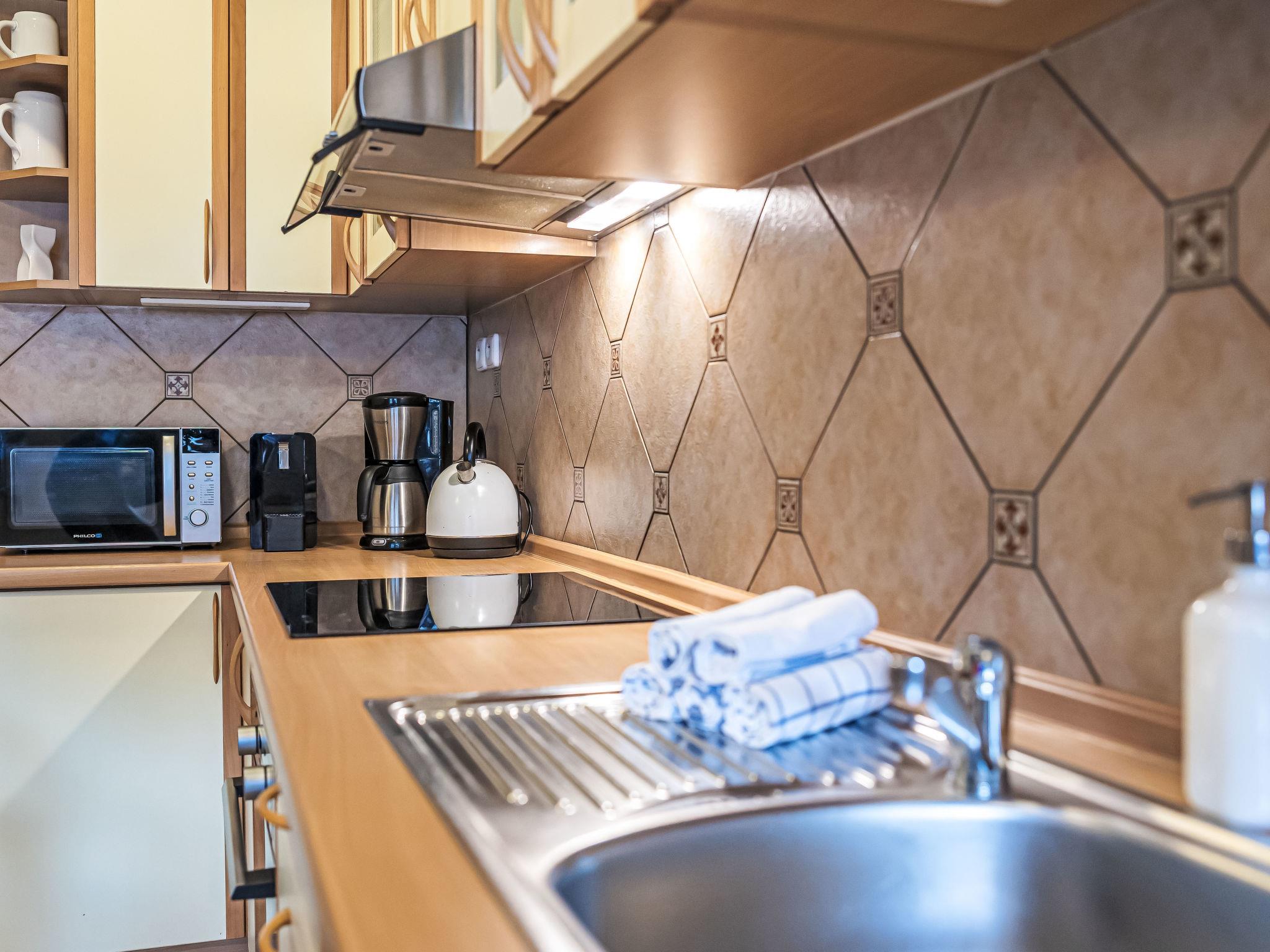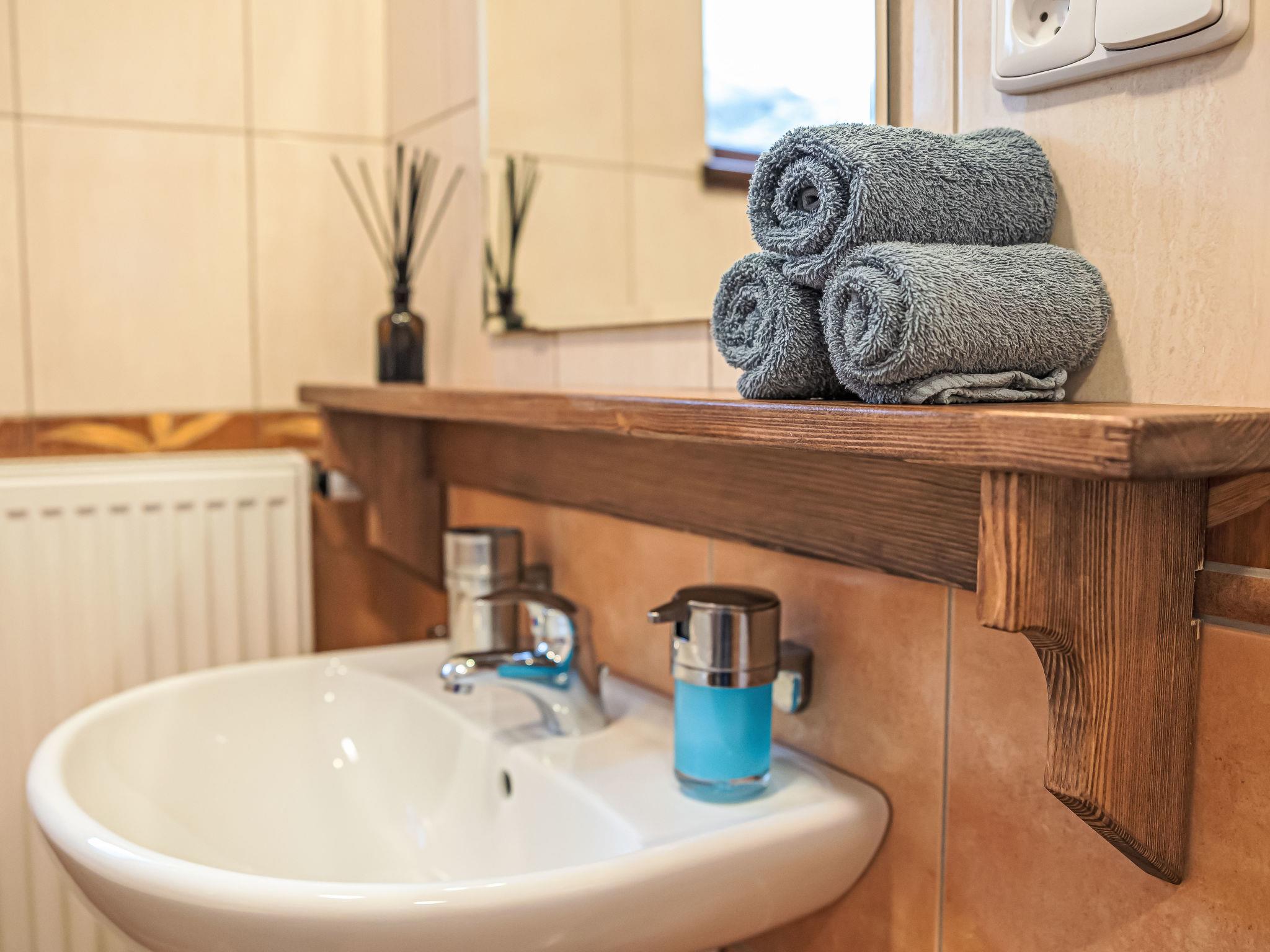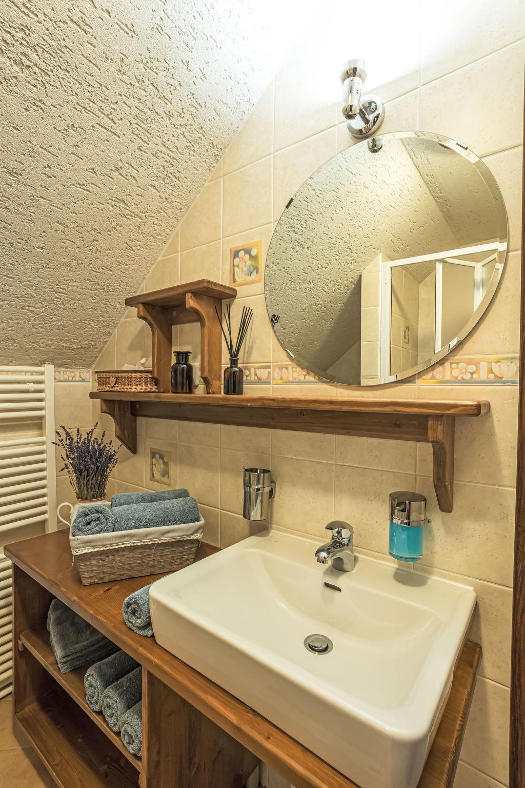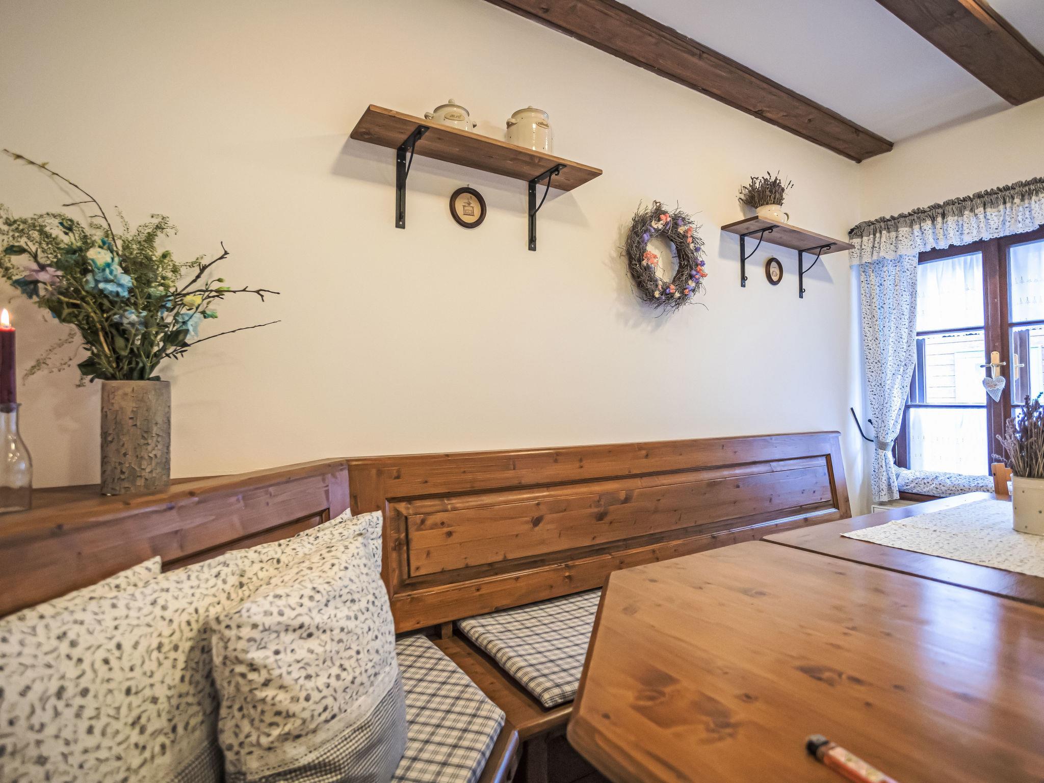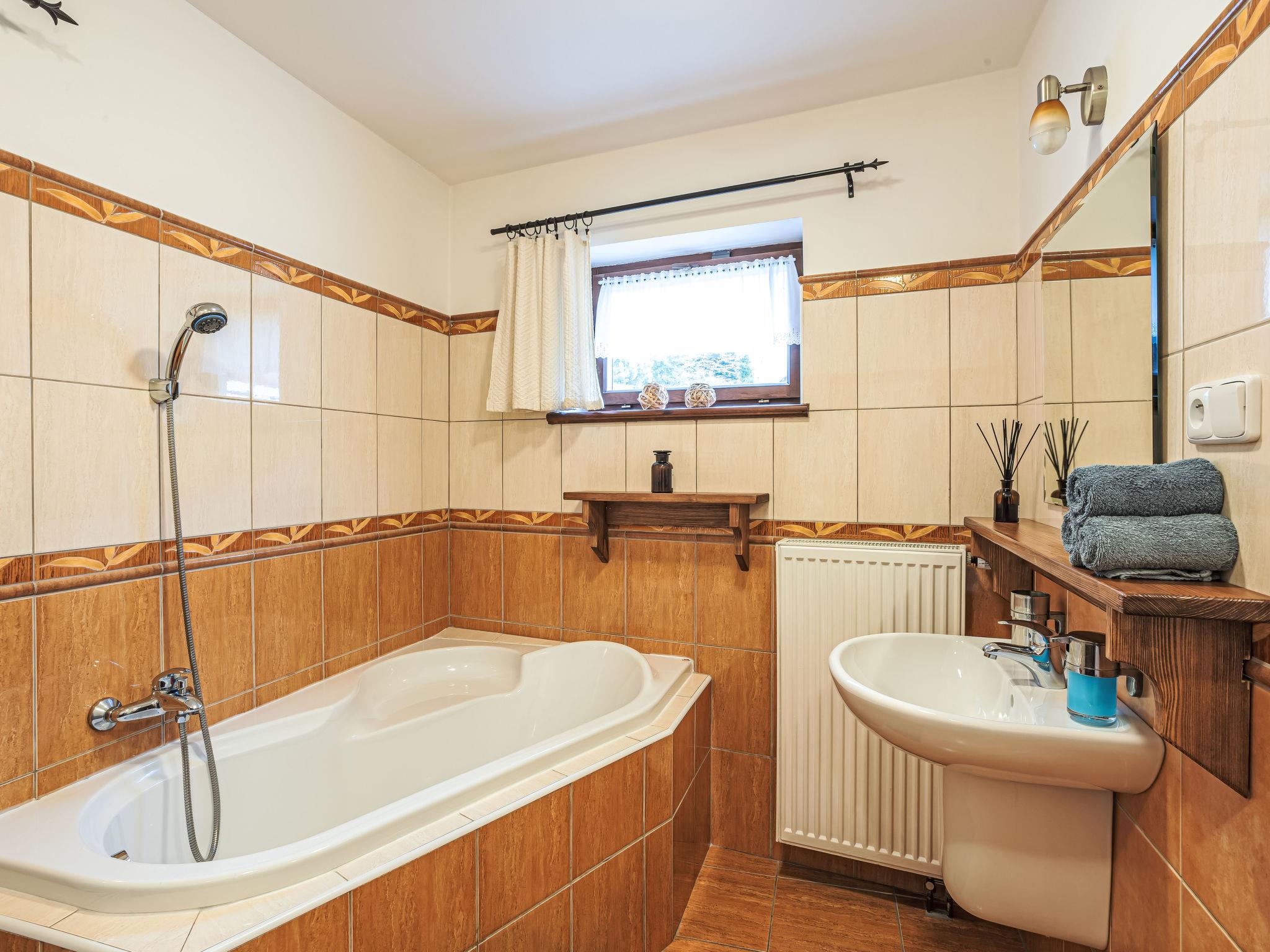 "Maršovka", 8-room house on 3 levels. Very stylish and cosy furnishings: large lounge. Kitchen (oven, dishwasher, 4 ceramic glass hob hotplates, kettle, microwave, electric coffee machine) with dining table. Bathroom, sep. WC. Electric heating. Upper floor: (steep stair), 1 room with sloping ceilings with 1 double bed. 1 room with sloping ceilings with 1 double bed. 1 room with sloping ceilings with 1 bed and 1 double bed. 1 room with sloping ceilings with 1 double sofabed (length 170 cm), 1 double bed. Shower/WC. 2nd upper floor: (steep stair), 1 room with sloping ceilings with 2 beds. 1 room with sloping ceilings with 2 beds and 1 sofabed. Wooden floors. Facilities: Internet (WiFi, free). Please note: suitable for families. Non-smoking house. 1 small pet/ dog allowed. Smoke alarm, fire extinguisher, no lift.