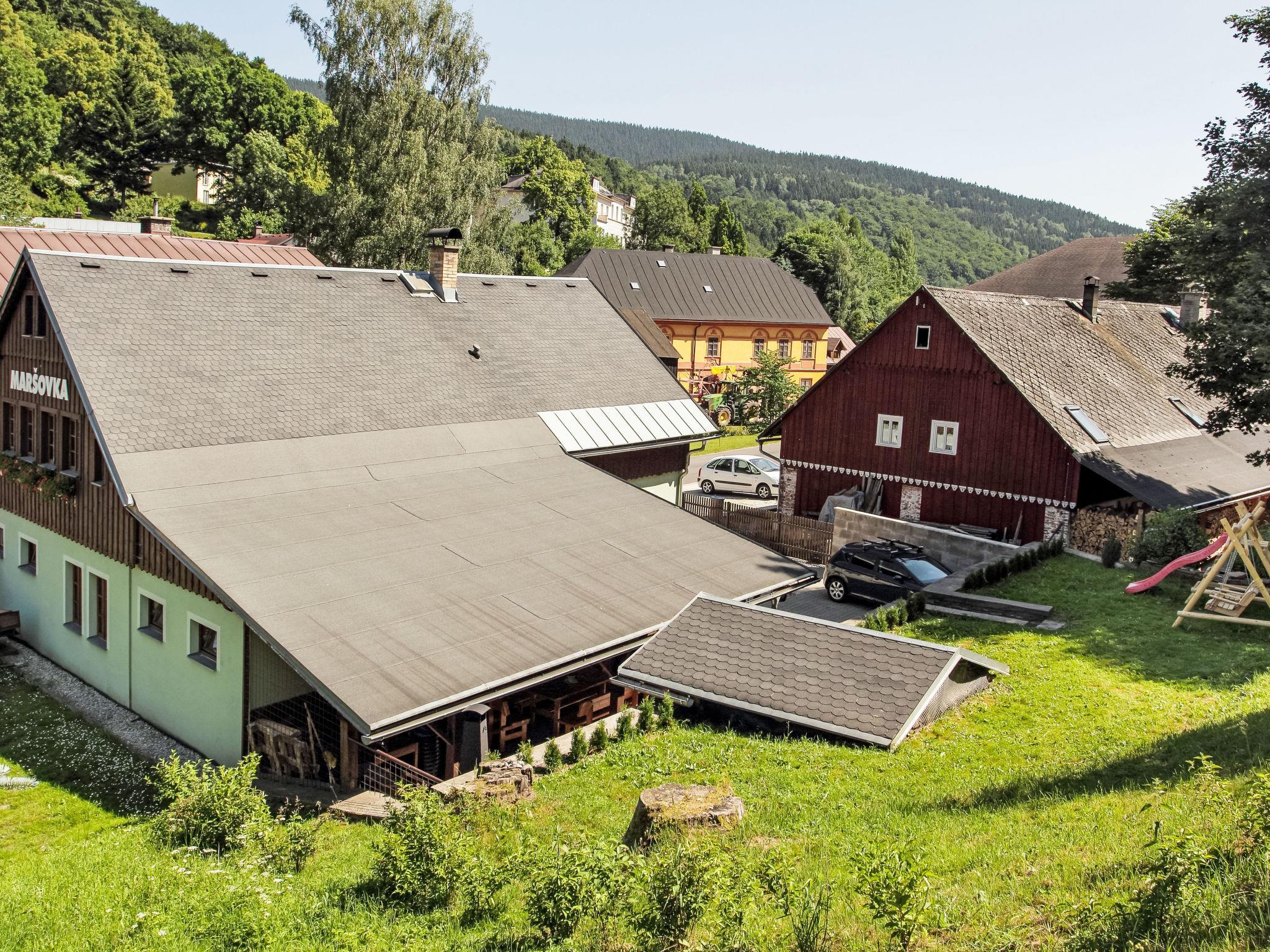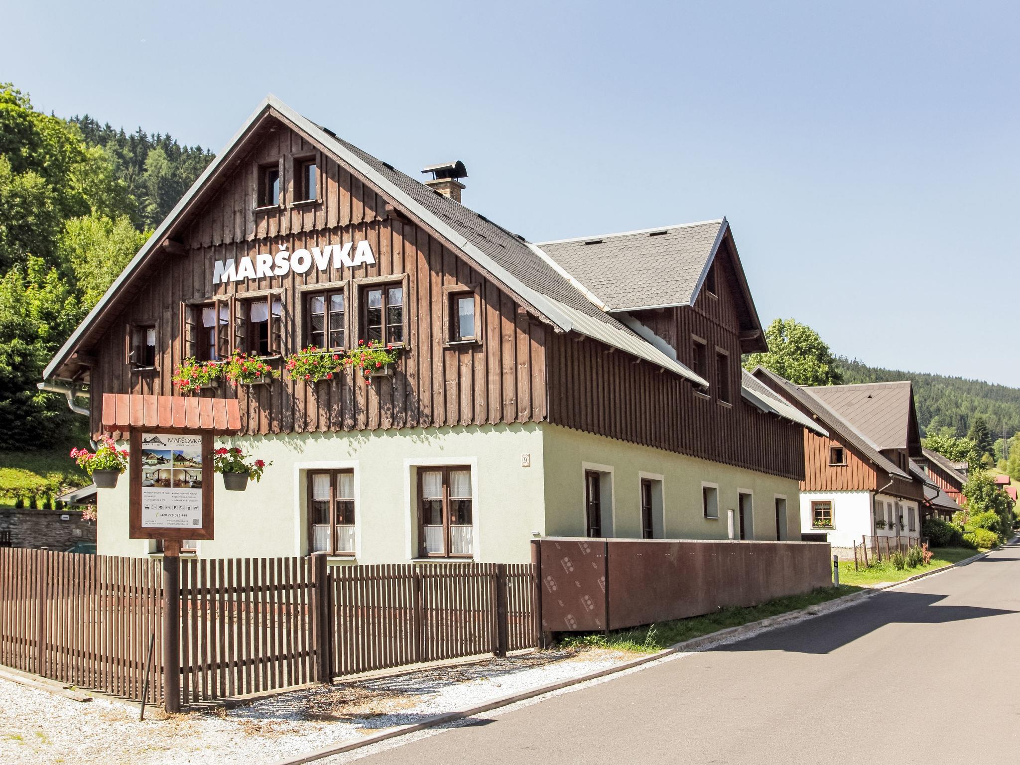 Beautiful, comfortable country house "Maršovka", built in 1880, renovated in 2018, surrounded by meadows. 200 m from the edge of the forest, 500 m from the skiing area. For shared use: property (fenced). Garden furniture, barbecue, fireplace, parking (for 6 cars) at the house. Shop, grocery 150 m, supermarket 15 km, shopping centre 15 km, restaurant 10 m, bus stop "Horní Maršov" 200 m, railway station "Svoboda nad Úpou" 4 km. Cable car 5 km, ski rental 5 km, ski bus stop 700 m, ski school 5 km, ski-kindergarten 5 km. Nearby attractions: Lysecinská bouda 2 km, Rýchorský prales - naucná stezka 3 km, Jánské Lázne 5 km, Stezka korunami stromu Krkonoše 6 km, Pec pod Snežkou 11 km. Well-known ski regions can easily be reached: Jánské Lázne/Pec pod Snežkou 5 km, Svoboda nad Úpou 4 km. Well-known lakes can easily be reached: Malý Staw - Polsko Krkonoše 35 km, Prehrada Les Království 35 km. Please note: no lift. Suitable for families, baby equipment.
