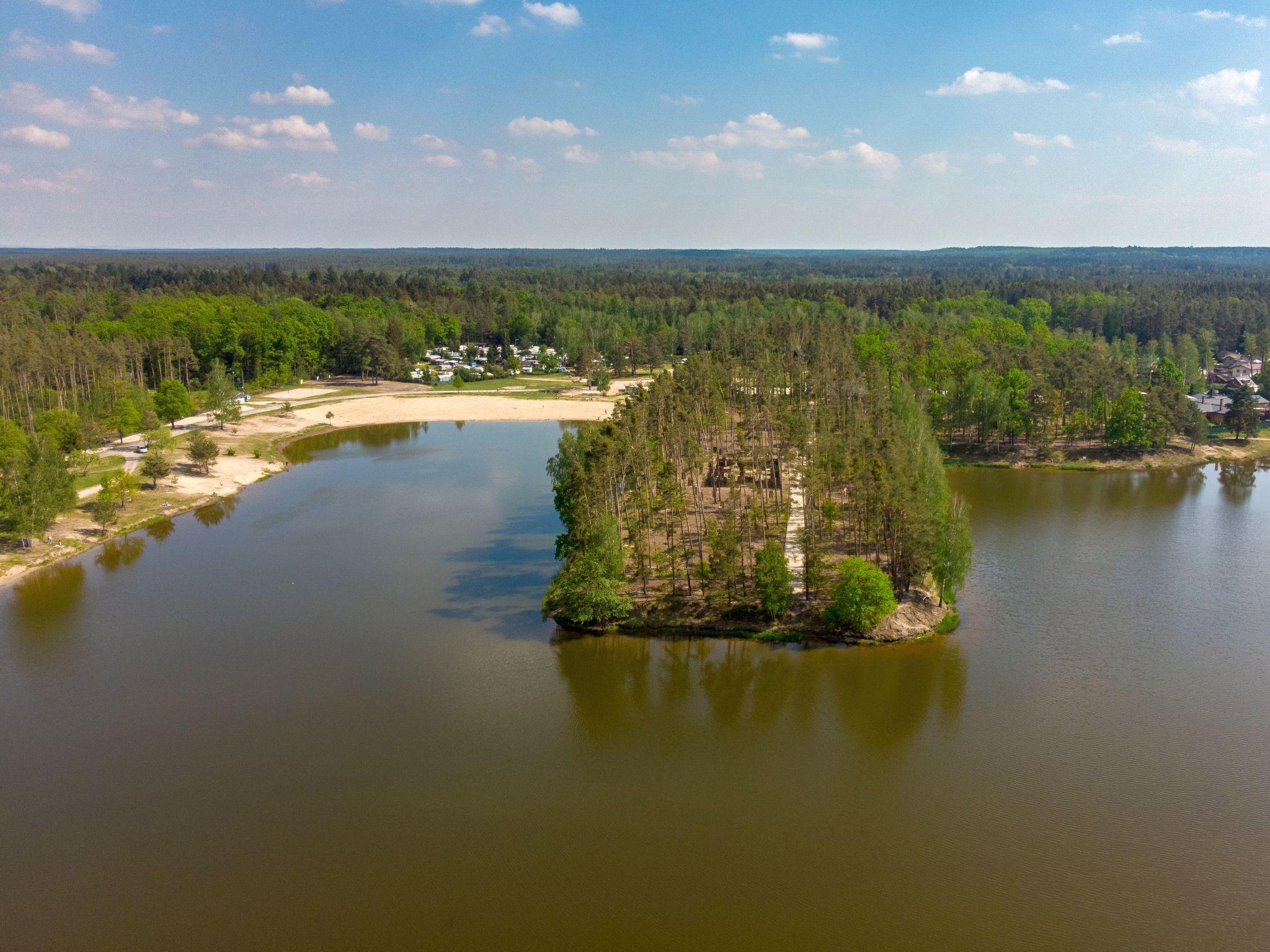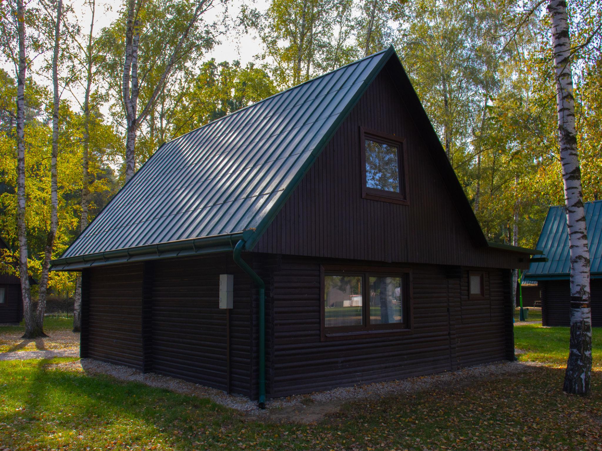 Child friendly holiday village "Kemp Stríbrný rybník". 25 houses in the resort. In the district of Malšova Lhota, 5 km from the centre of Hradec Králové, along the wooded area, on the lake. For shared use: property. Table tennis, boccia (extra), beach volleyball, arbour, barbecue, fireplace, children's playground, bathing jetty. In the complex: reception, restaurant, bar, bistro, playroom, washing machine (for shared use, extra), bicycle rental. Parking (extra) on the premises. Bus stop "Stríbrný rybník" 700 m, railway station "Blešno" 5 km, sandy beach, bathing lake 50 m. Sports harbour, minigolf, sports centre, walking paths from the house, cycle lane, fishing possibilities 50 m. Nearby attractions: Adventure park Firmsport, letní kino, tutistický vlácek do lesa, Stezka siluet, Rytírské hradište 3 km, Park Na Vetvi 3 km, Obory se zverí 4.2 km, Obrí akvárium, Botanická zahrada 4.7 km. Hiking paths: Pohádková, Vodnická stezka 6 km, Planetárium, planetární stezka 8.4 km, Zoopark Stežery, Rozhledna Milír 15 km. Please note: entertainment in the season. Suitable for families. Fishing [permit required]. The photograph shows a typical example.
