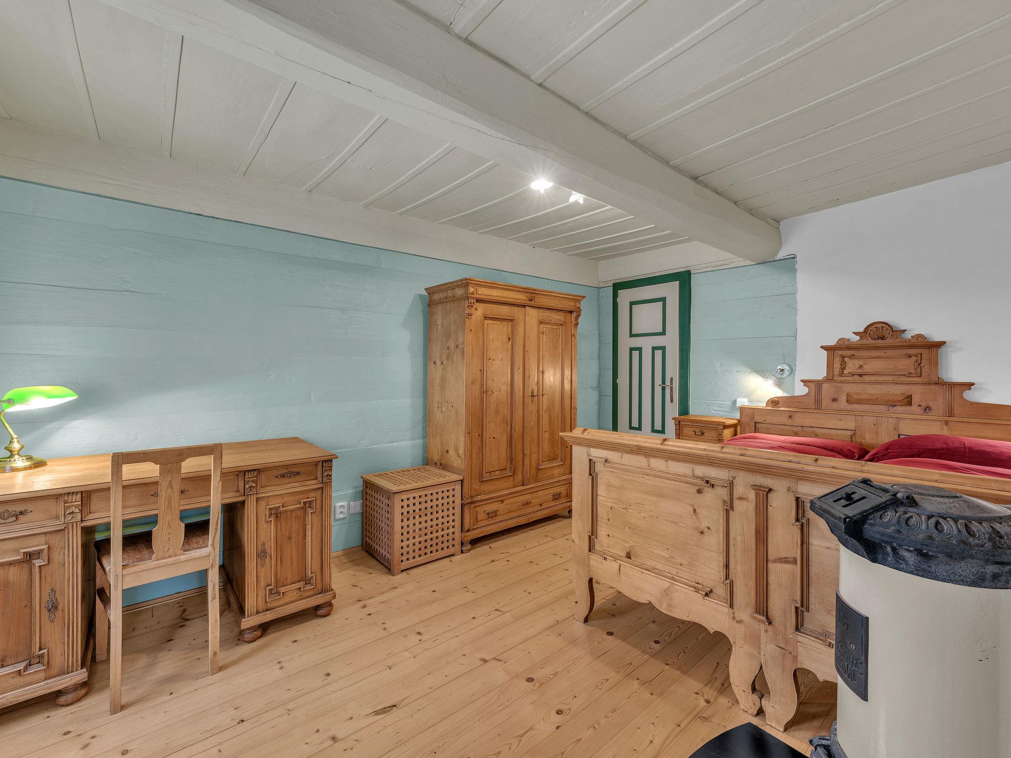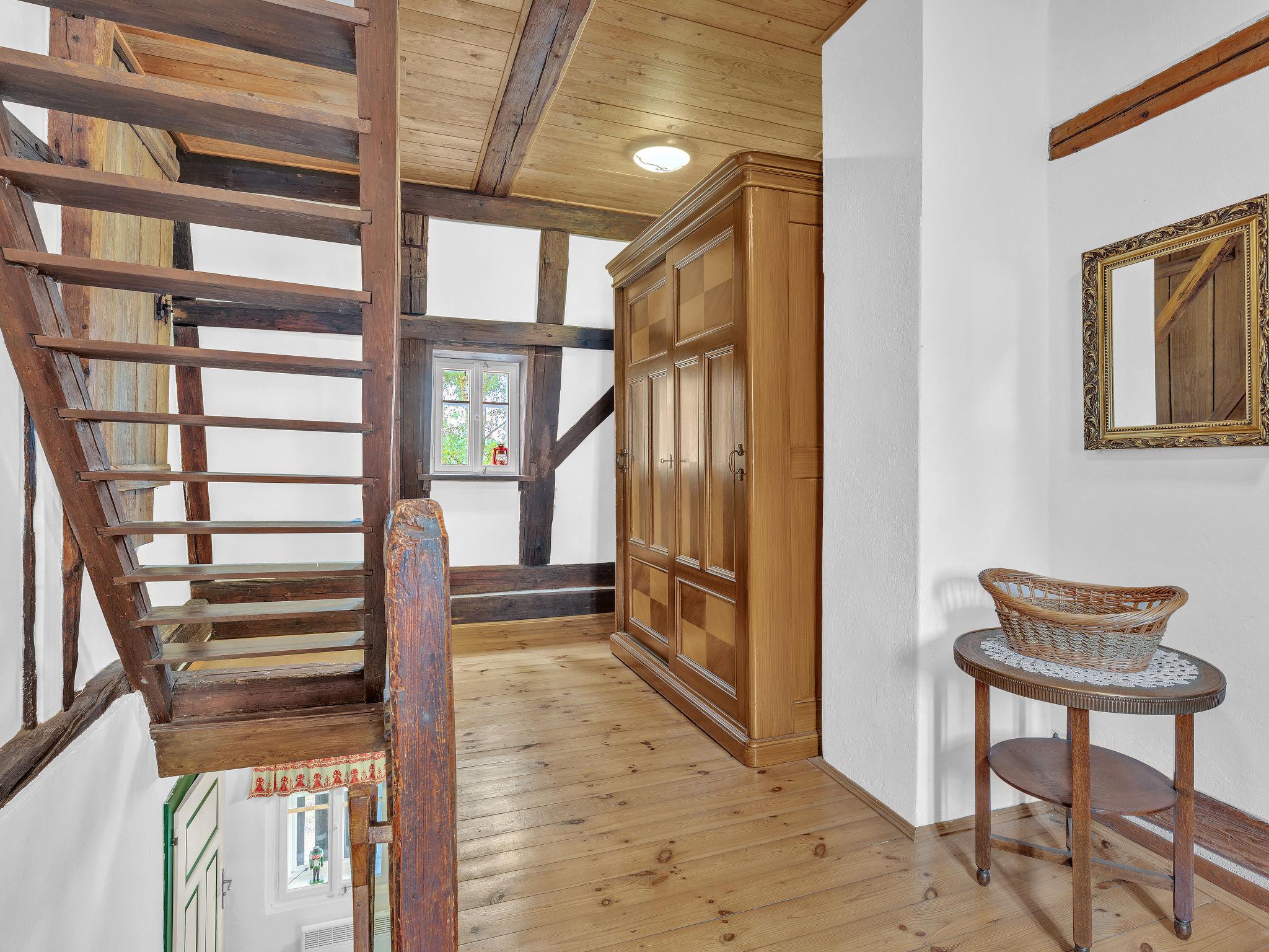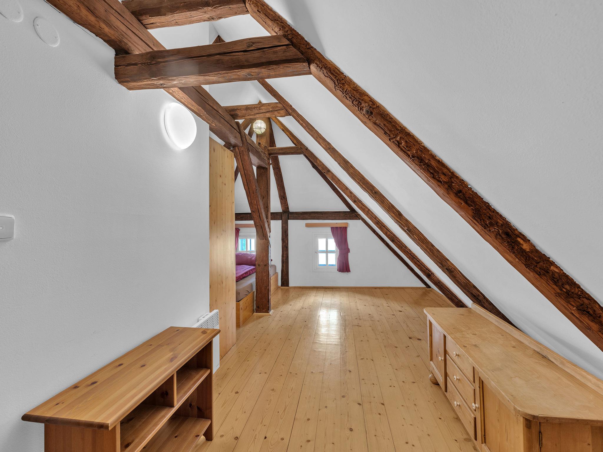 6-room house 140 m2 on 3 levels. Antique furnishings: living room with dining table, international TV channels and tiled stove. 1 room with 1 double bed and shower/WC. Kitchenette (oven, dishwasher, 4 ceramic glass hob hotplates, kettle, microwave). Sep. WC. On the lower ground floor: shower/WC, Sauna. Upper floor: 1 room with 1 double bed and shower/bidet/WC. 1 room with 1 double bed and shower/bidet/WC. Top floor: 1 room with sloping ceilings with 1 double bed and shower/WC. 1 room with sloping ceilings with 1 double bed and bath/WC. Heating. View of the garden and the countryside. Facilities: washing machine. Internet (WiFi, free). Please note: suitable for families. Non-smoking house. Smoke alarm. On the ground floor, there is a second separate kitchen unit with a microwave oven, refrigerator and stove.