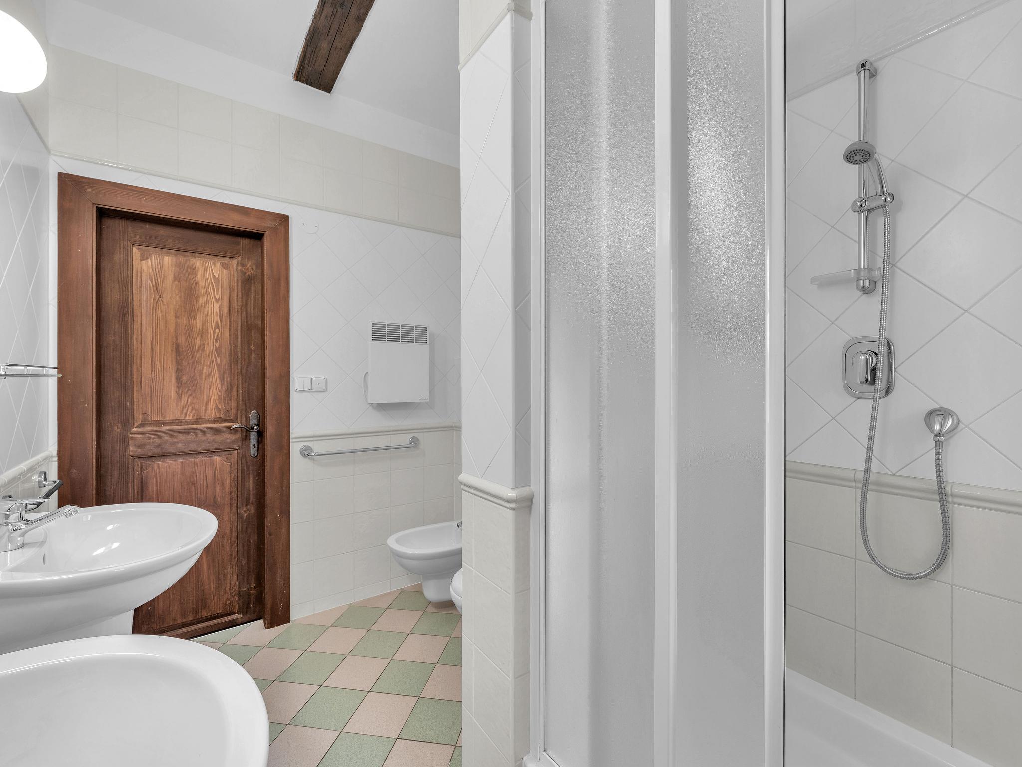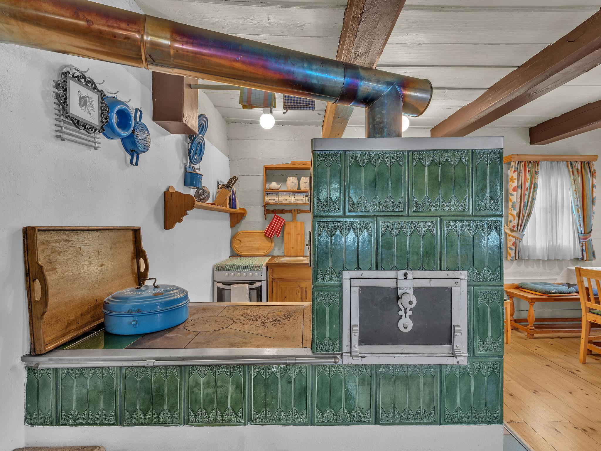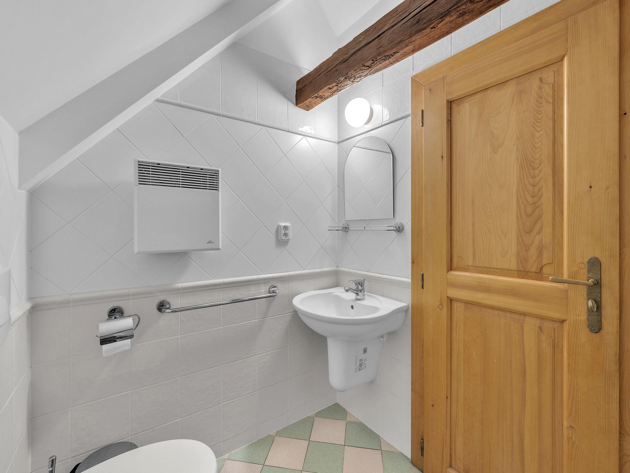 6-room house 140 m2 on 3 levels. Antique furnishings: living room with dining table, international TV channels and tiled stove. 1 room with 1 double bed and shower/WC. Kitchenette (oven, dishwasher, 4 ceramic glass hob hotplates, kettle, microwave). Sep. WC. On the lower ground floor: shower/WC, Sauna. Upper floor: 1 room with 1 double bed and shower/bidet/WC. 1 room with 1 double bed and shower/bidet/WC. Top floor: 1 room with sloping ceilings with 1 double bed and shower/WC. 1 room with sloping ceilings with 1 double bed and bath/WC. Heating. View of the garden and the countryside. Facilities: washing machine. Internet (WiFi, free). Please note: suitable for families. Non-smoking house. Smoke alarm. On the ground floor, there is a second separate kitchen unit with a microwave oven, refrigerator and stove.