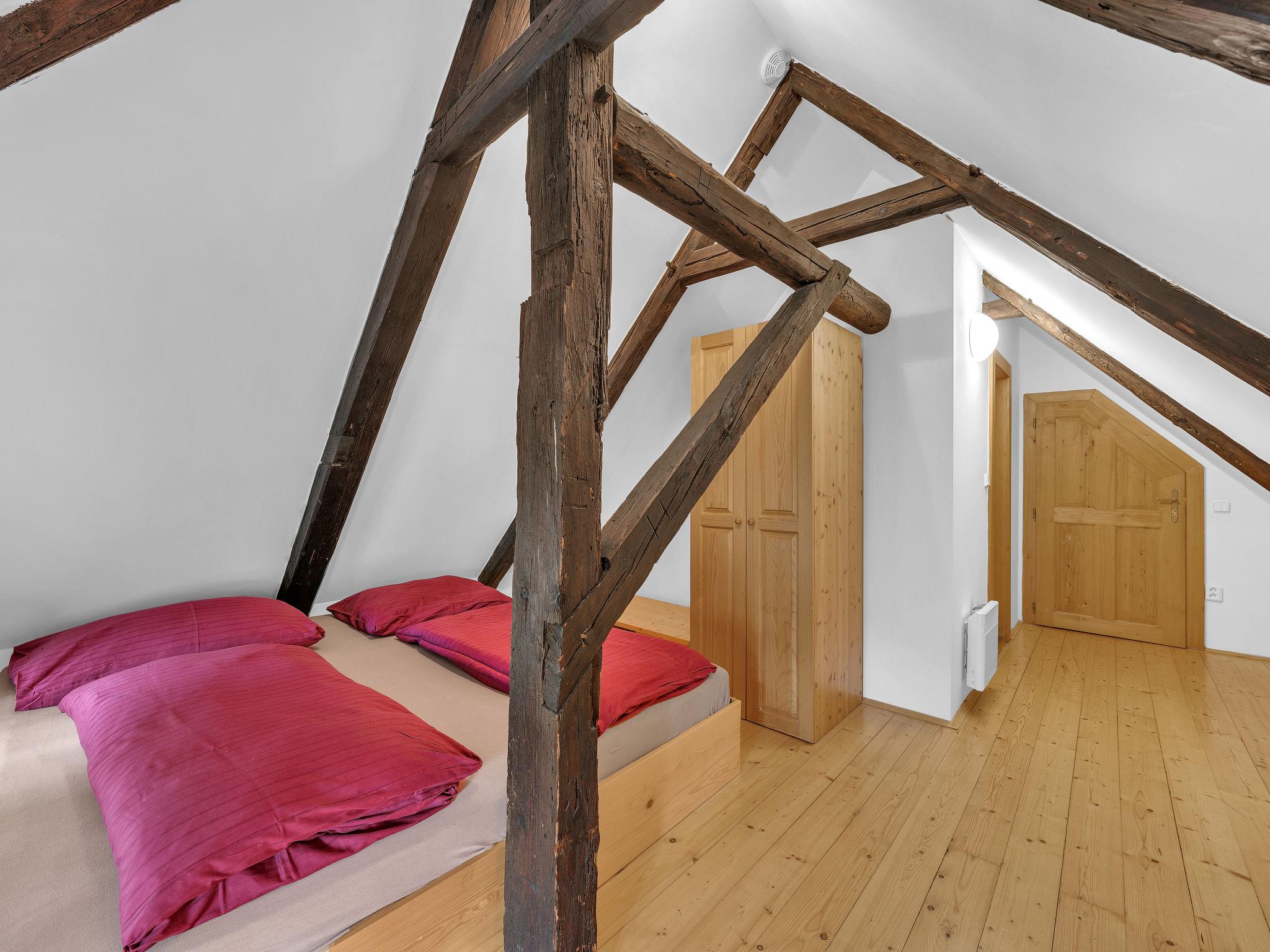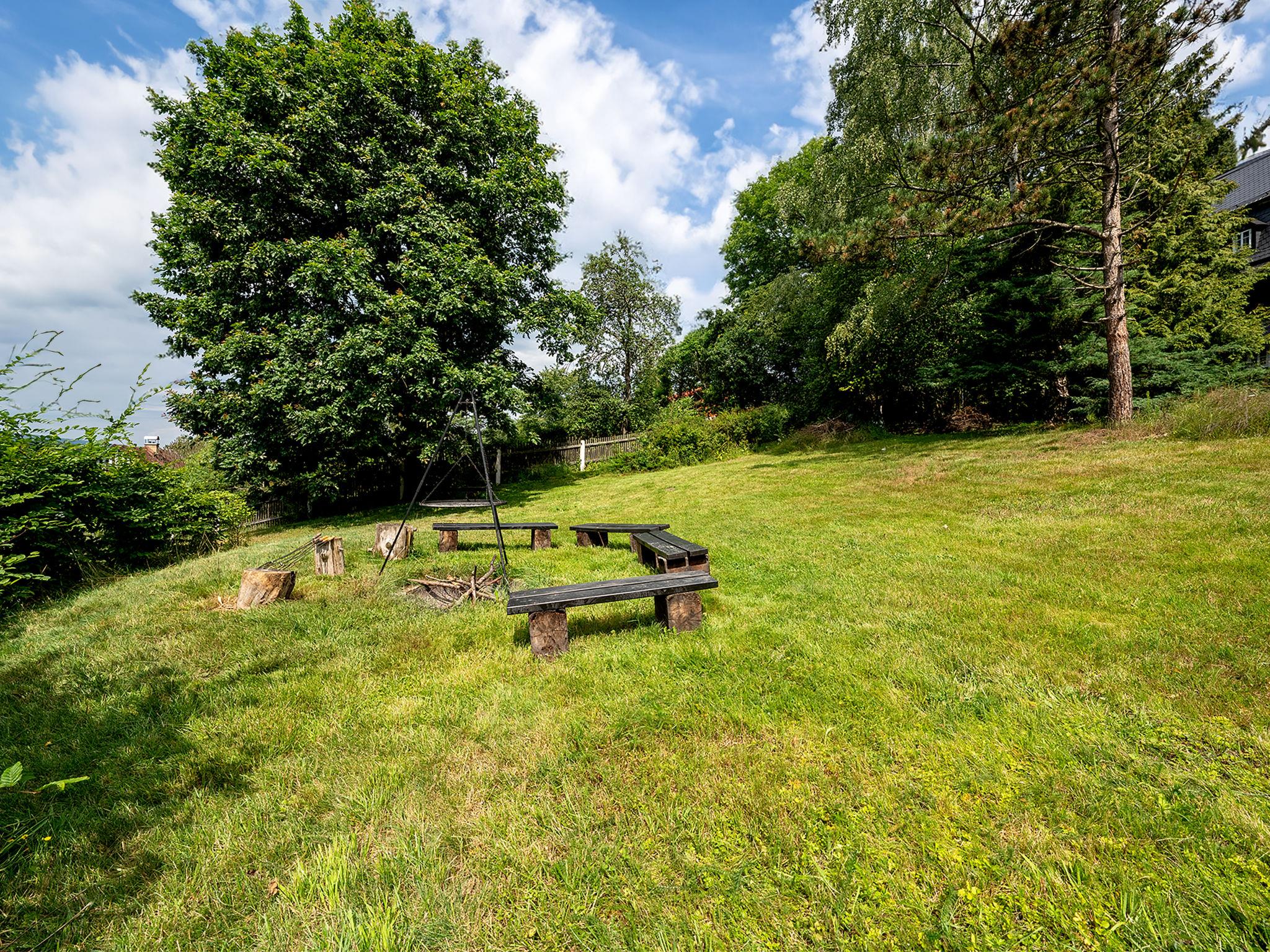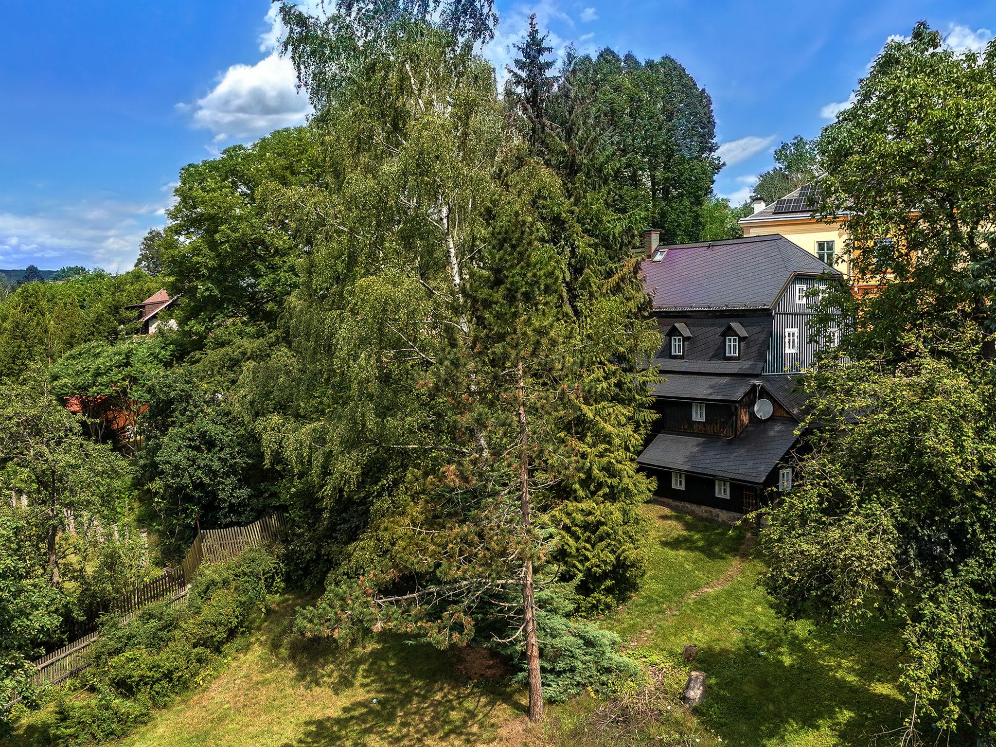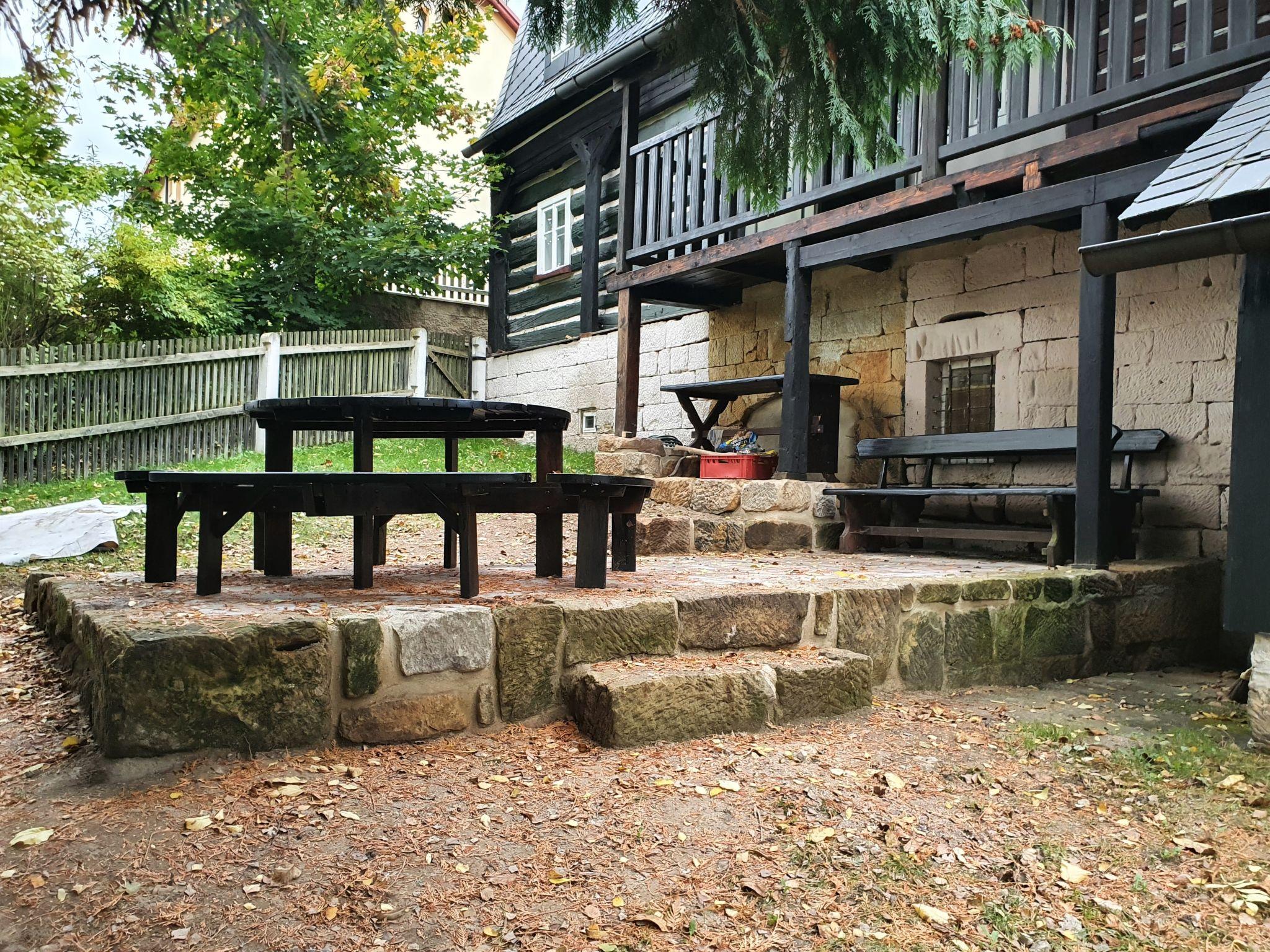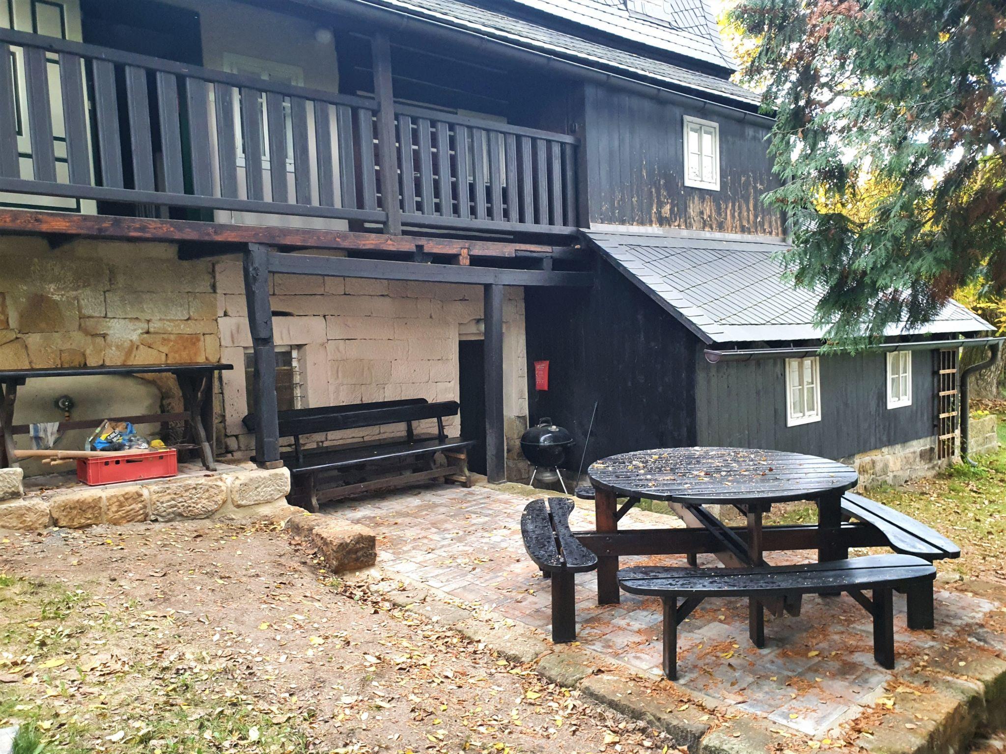 In the heart of the Bohemian Switzerland National Park, registered as a cultural monument, "rustico" cottage "Mezná u Hrenska", 3 storeys, detached, built in 1804, renovated in 2004. In the resort, in a quiet, sunny position, 100 m from the edge of the forest. Private: property 1'100 m2 (fenced), garden. Terrace, garden furniture, barbecue, fireplace. Storeroom available. Parking (for 5 cars) at the house. Shop 5 km, shopping centre 17 km, restaurant 50 m, bus stop "Mezná" 300 m, outdoor swimming pool 10 km. Nearby attractions: Soutesky Hrensko 1.8 km, Pravcická brána, Skalní hrad Šaunštejn 5 km, Dolský Mlýn 7 km, Jetrichovické vyhlídky (Pohovka, Rudolfuv kámen, Vilemínina stena, Mariina skála) 10 km, Skalní hrad Falkenštejn 10 km. Heating: radiators with heat pump.