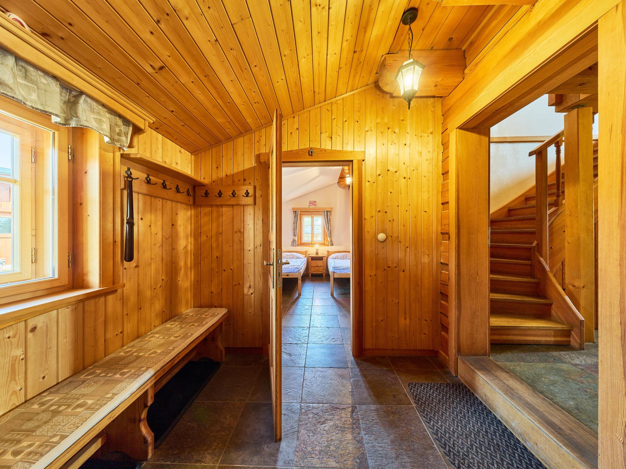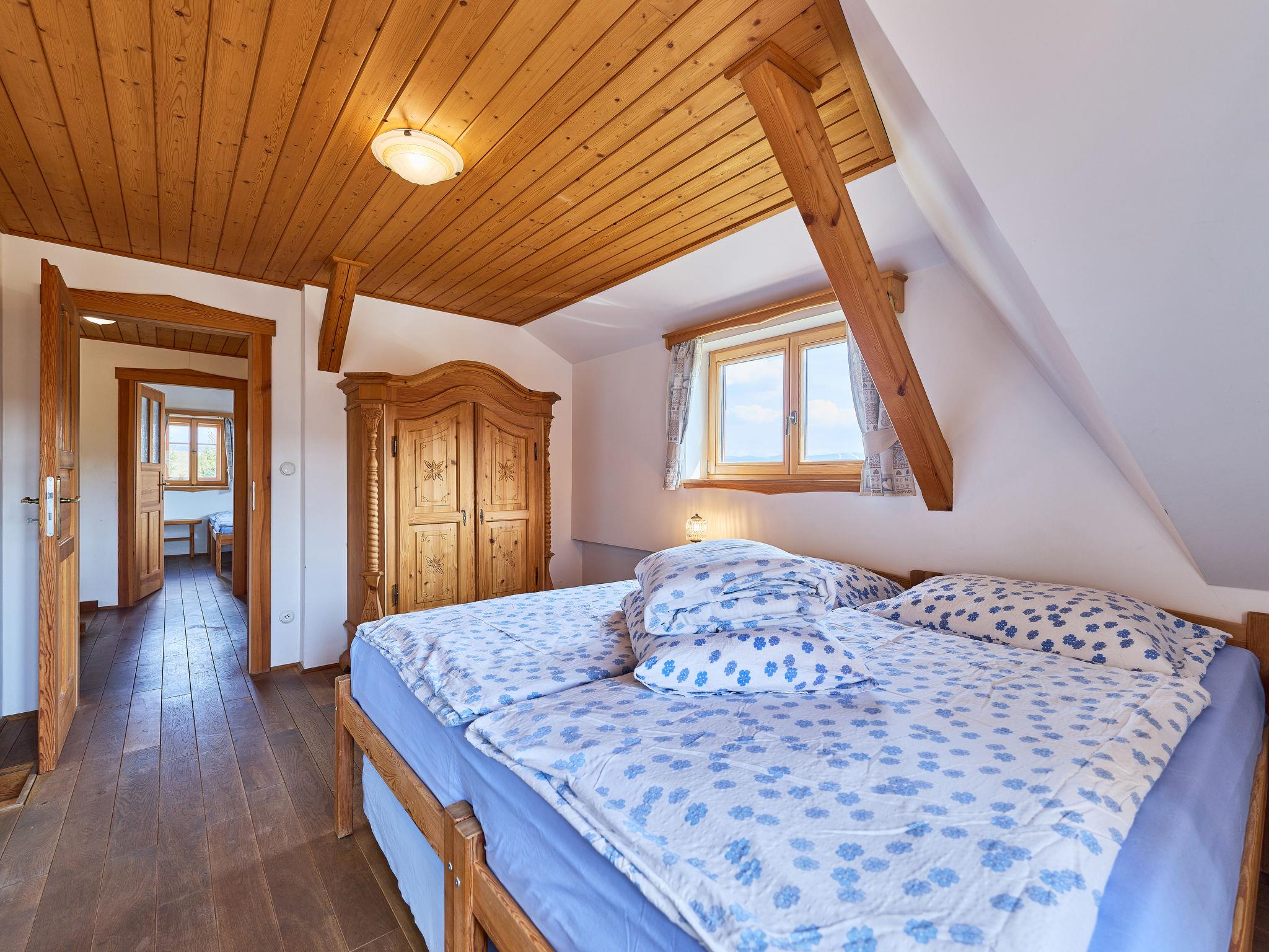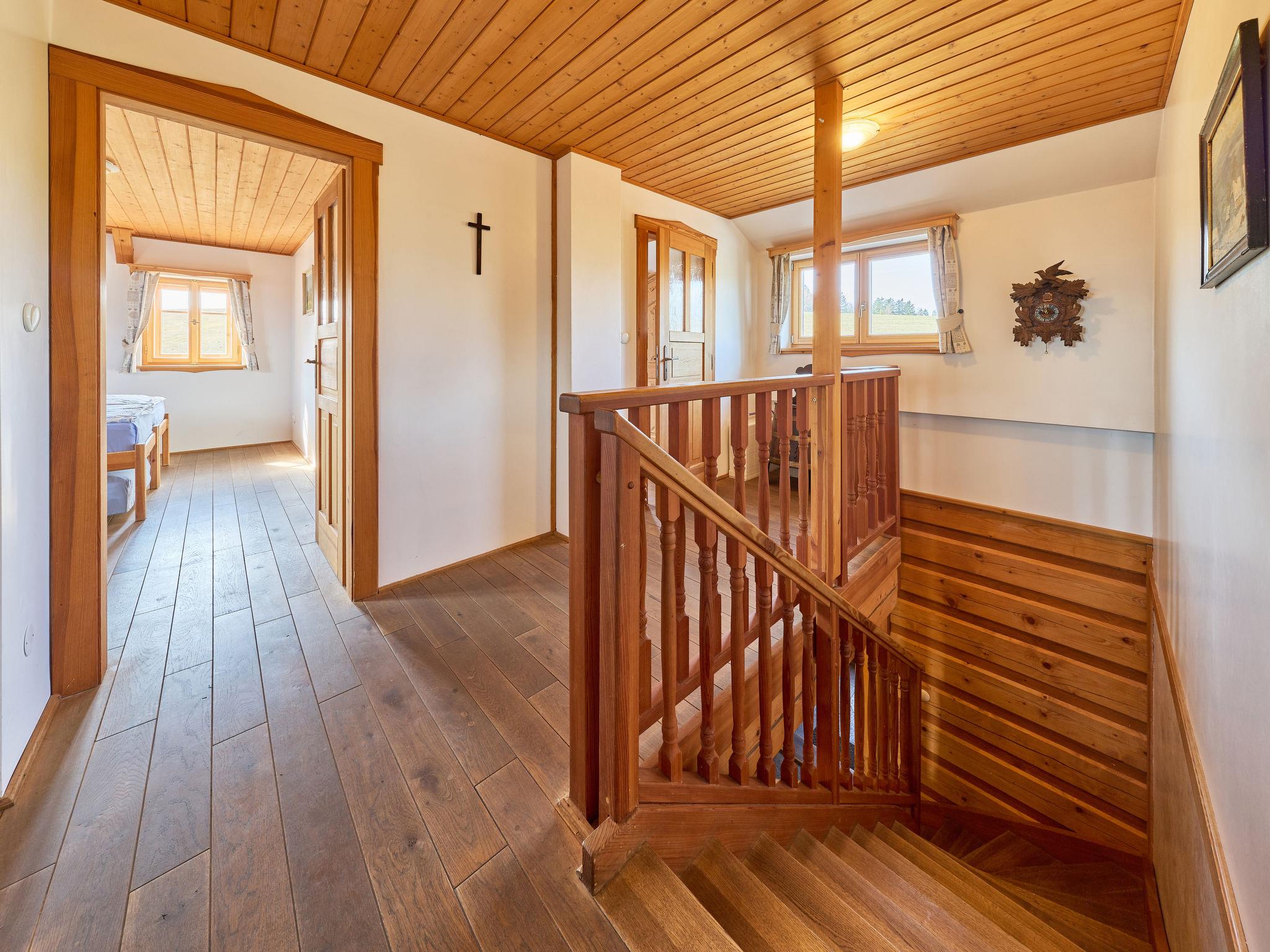 5-room cottage 170 m2 on 2 levels. Very comfortable furnishings: large living room with 1 sofabed, digital TV, radio and tiled stove. Exit to the terrace. 1 room 15 m2 with 2 beds. Large kitchen 25 m2 (oven, dishwasher, 4 ceramic glass hob hotplates, toaster, kettle, microwave, freezer, electric coffee machine, Capsules for coffee machine (Dolce Gusto)) with dining table. Shower/WC, hydro massage shower. Underfloor heating. Upper floor: 1 room 15 m2 with 3 beds. 1 room 28 m2 with 4 beds and 1 pull-out bed. (steep stair) open gallery with sloping ceilings with 2 sleeping facilities. 1 room 15 m2 with 3 sofabeds and 1 double bed. Bath/WC, hydro massage bath. Heating. Panoramic view of the mountains, the garden, the forest and the town. Facilities: washing machine, baby cot, hair dryer. Internet (WiFi, free). Please note: suitable for families. Non-smokers only. Maximum 2 pets/ dogs allowed. Fire extinguisher. Coffee machines: capsule, espresso (lever), drip. Shower box (steam with radio). Outdoor hot tub for 6 people with a mountain view. Instead of an enclosed bedroom, some sleeping areas are located in an open-plan area (gallery, alcove, etc.).
