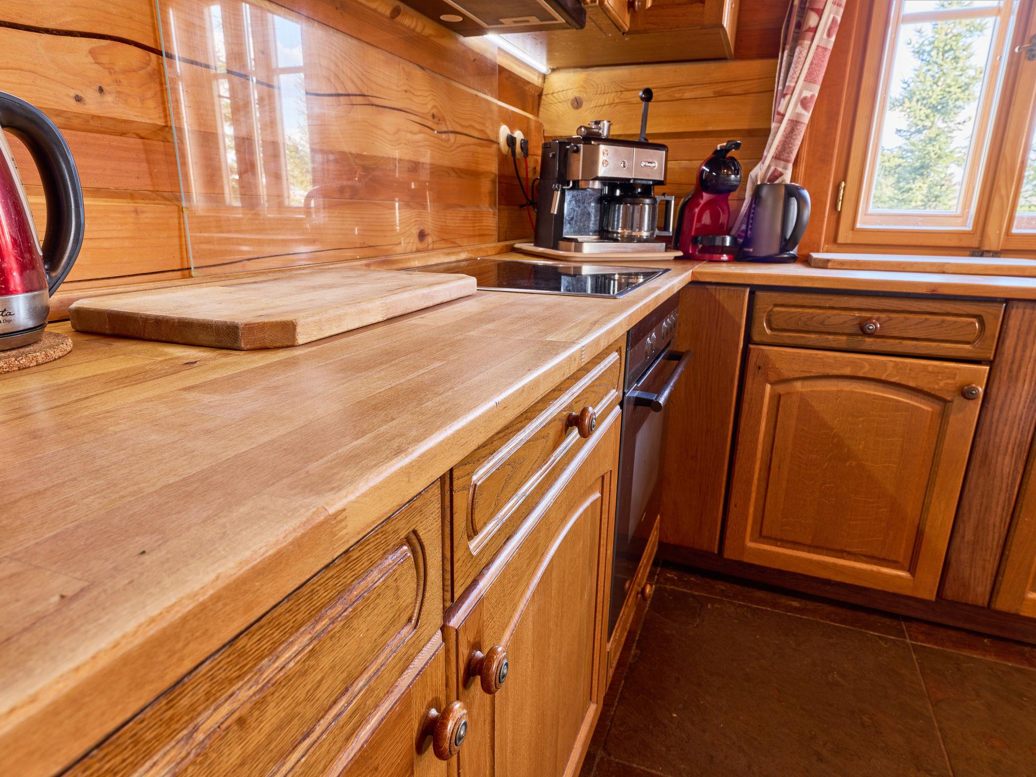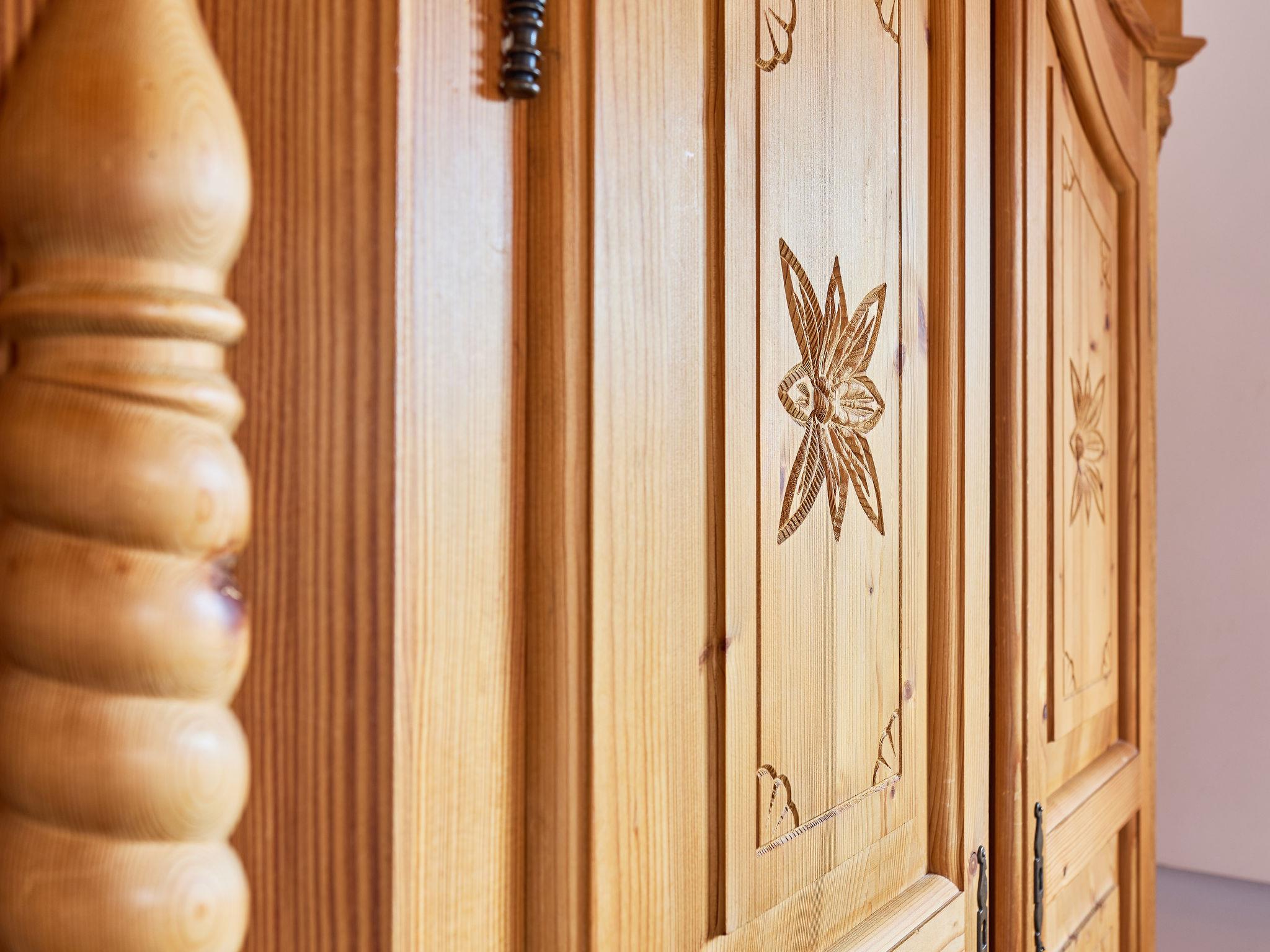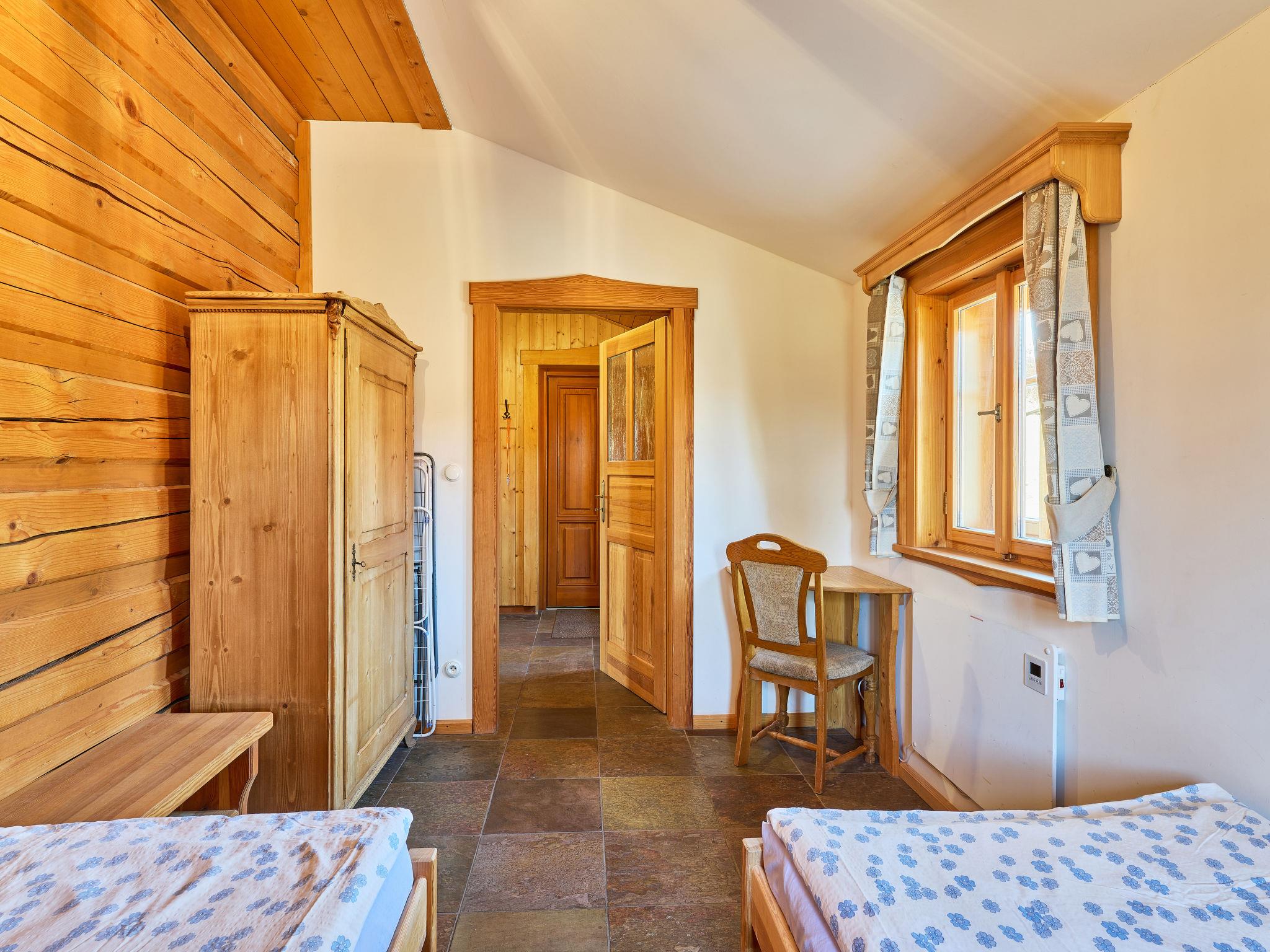 5-room cottage 170 m2 on 2 levels. Very comfortable furnishings: large living room with 1 sofabed, digital TV, radio and tiled stove. Exit to the terrace. 1 room 15 m2 with 2 beds. Large kitchen 25 m2 (oven, dishwasher, 4 ceramic glass hob hotplates, toaster, kettle, microwave, freezer, electric coffee machine, Capsules for coffee machine (Dolce Gusto)) with dining table. Shower/WC, hydro massage shower. Underfloor heating. Upper floor: 1 room 15 m2 with 3 beds. 1 room 28 m2 with 4 beds and 1 pull-out bed. (steep stair) open gallery with sloping ceilings with 2 sleeping facilities. 1 room 15 m2 with 3 sofabeds and 1 double bed. Bath/WC, hydro massage bath. Heating. Panoramic view of the mountains, the garden, the forest and the town. Facilities: washing machine, baby cot, hair dryer. Internet (WiFi, free). Please note: suitable for families. Non-smokers only. Maximum 2 pets/ dogs allowed. Fire extinguisher. Coffee machines: capsule, espresso (lever), drip. Shower box (steam with radio). Outdoor hot tub for 6 people with a mountain view. Instead of an enclosed bedroom, some sleeping areas are located in an open-plan area (gallery, alcove, etc.).