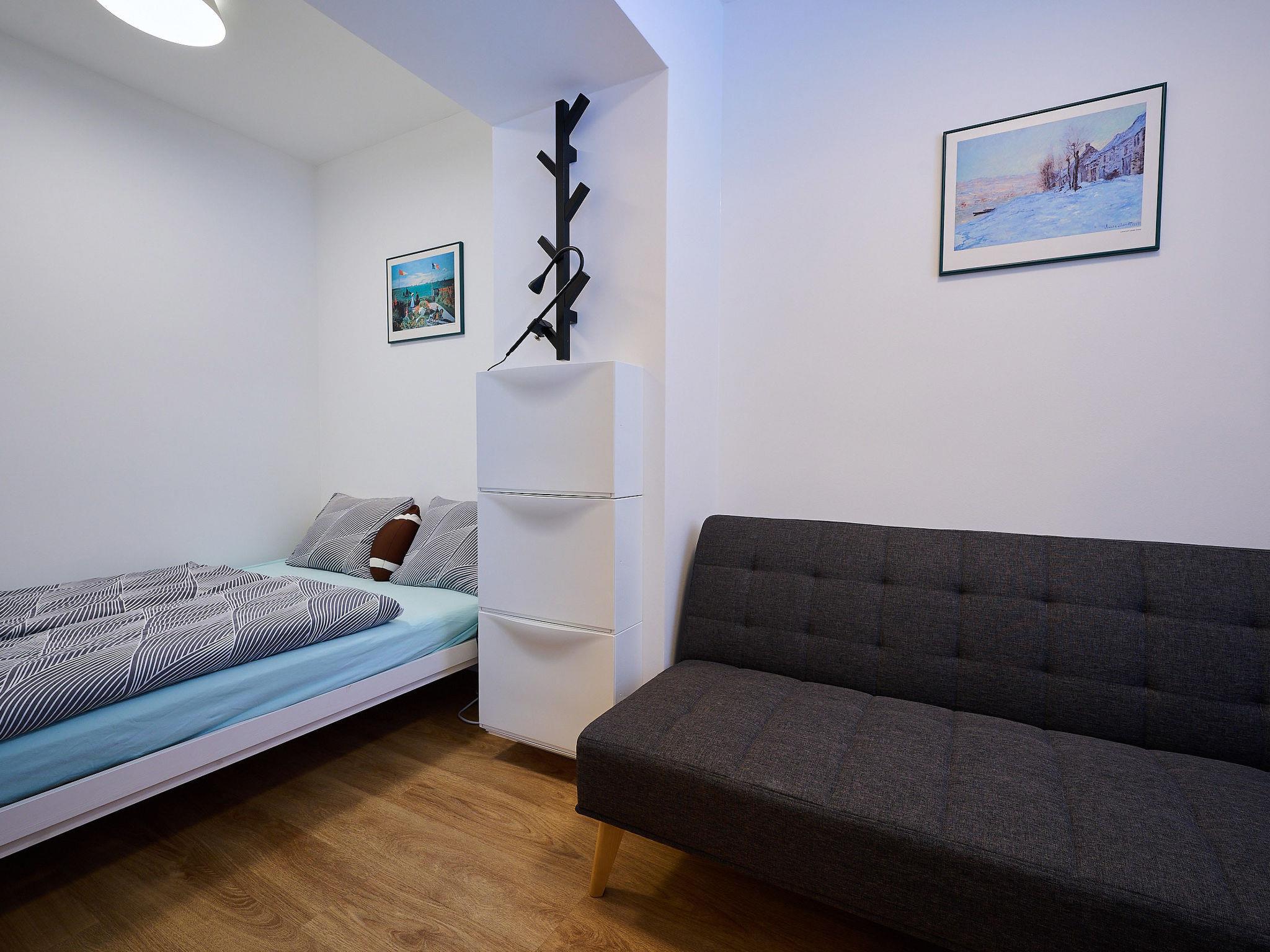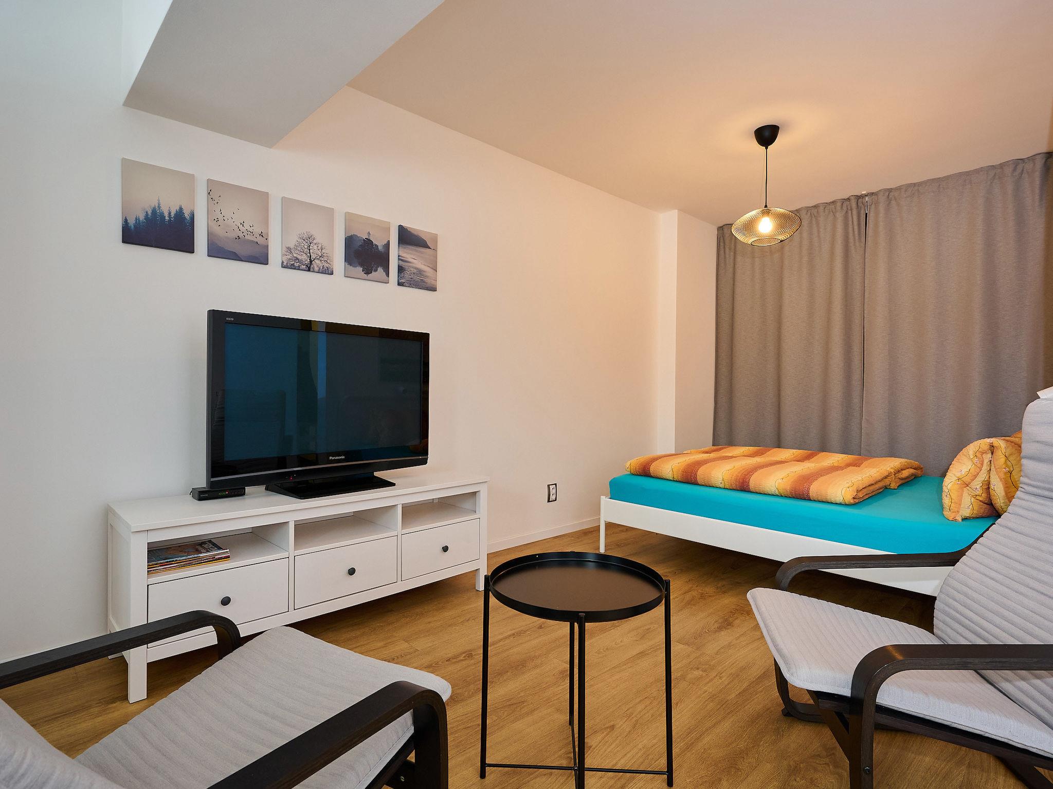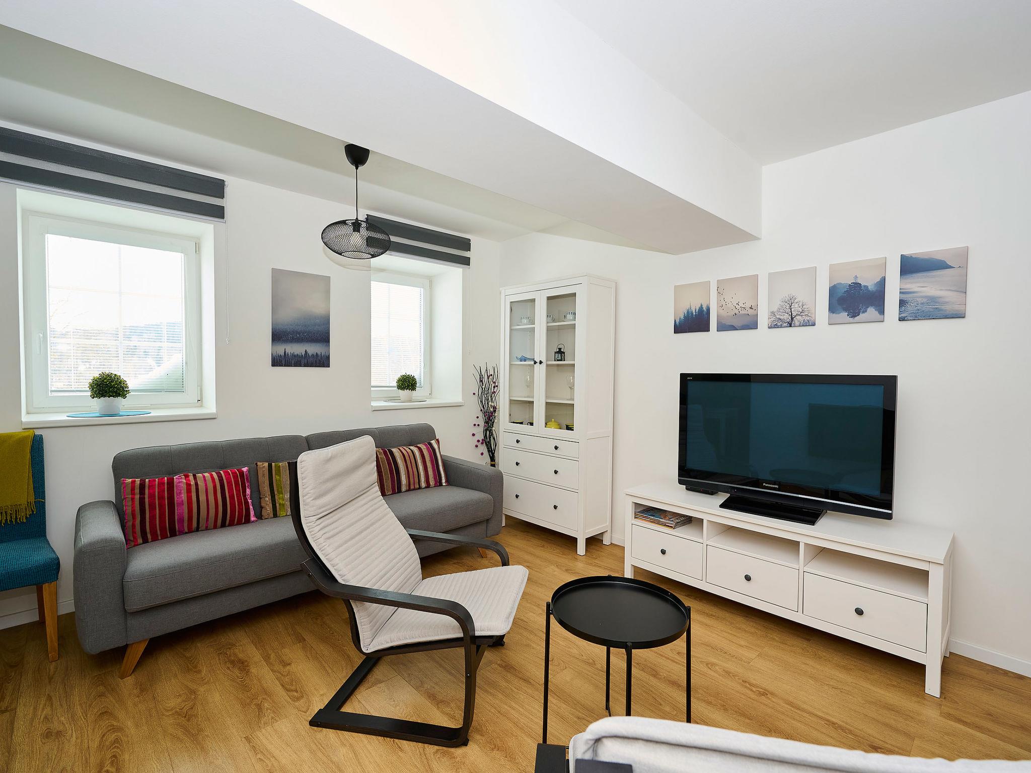 "Hašlerka", 2-room apartment 55 m2, on the ground floor. Bright, very beautiful and modern furnishings: living/dining room with 1 sofabed, 1 double bed and Scandinavian wood stove (only for decoration), dining table, TV and electric heater. 1 room with 1 sofabed, 1 french bed and electric heater. Kitchenette (oven, 4 ceramic glass hob hotplates, freezer). Shower/WC. Electric heating, underfloor heating. Box-room. View of the valley. Facilities: Internet (WiFi, free). Parking (2 cars) at the house. Please note: suitable for families. Non-smokers only.