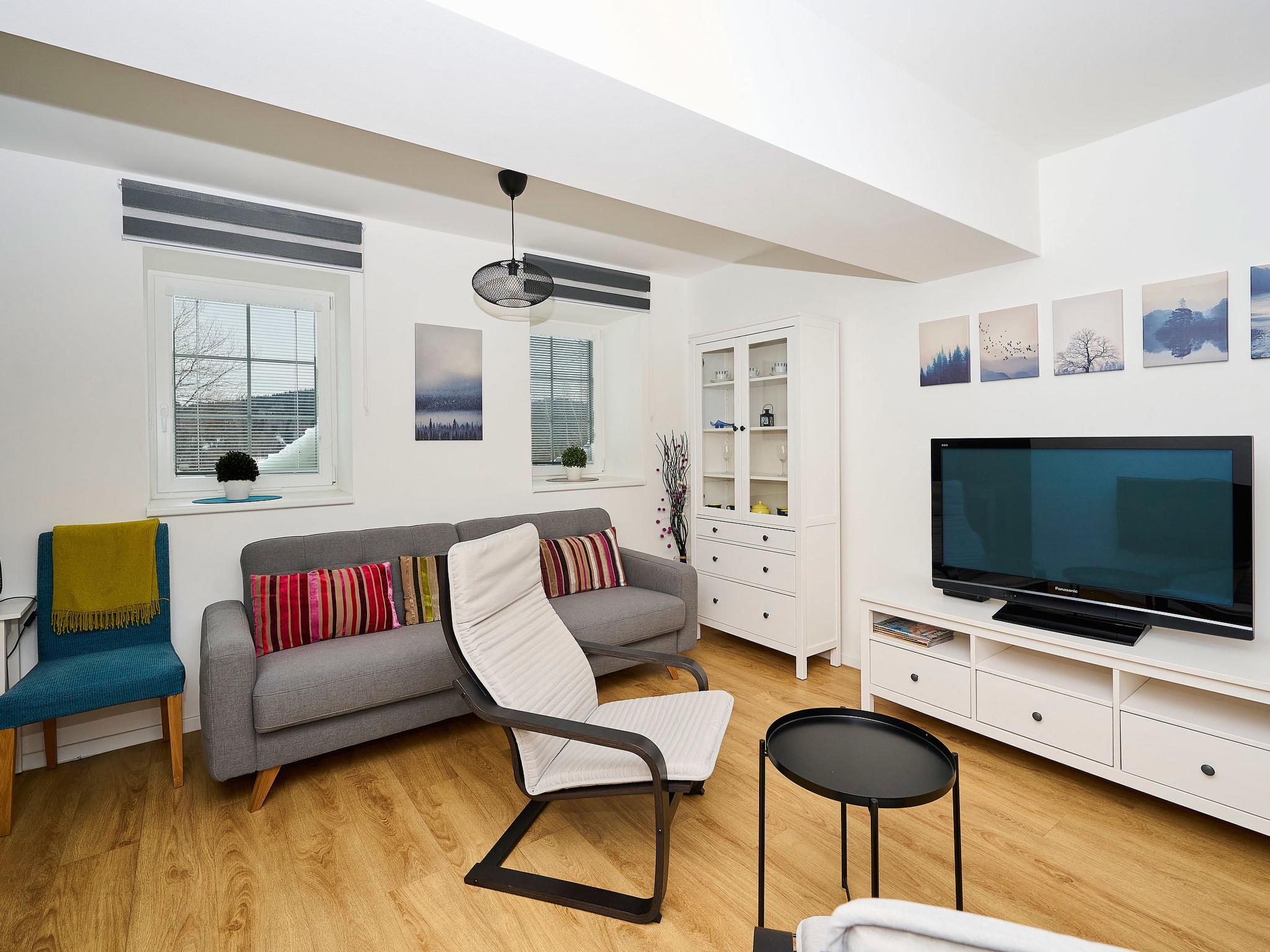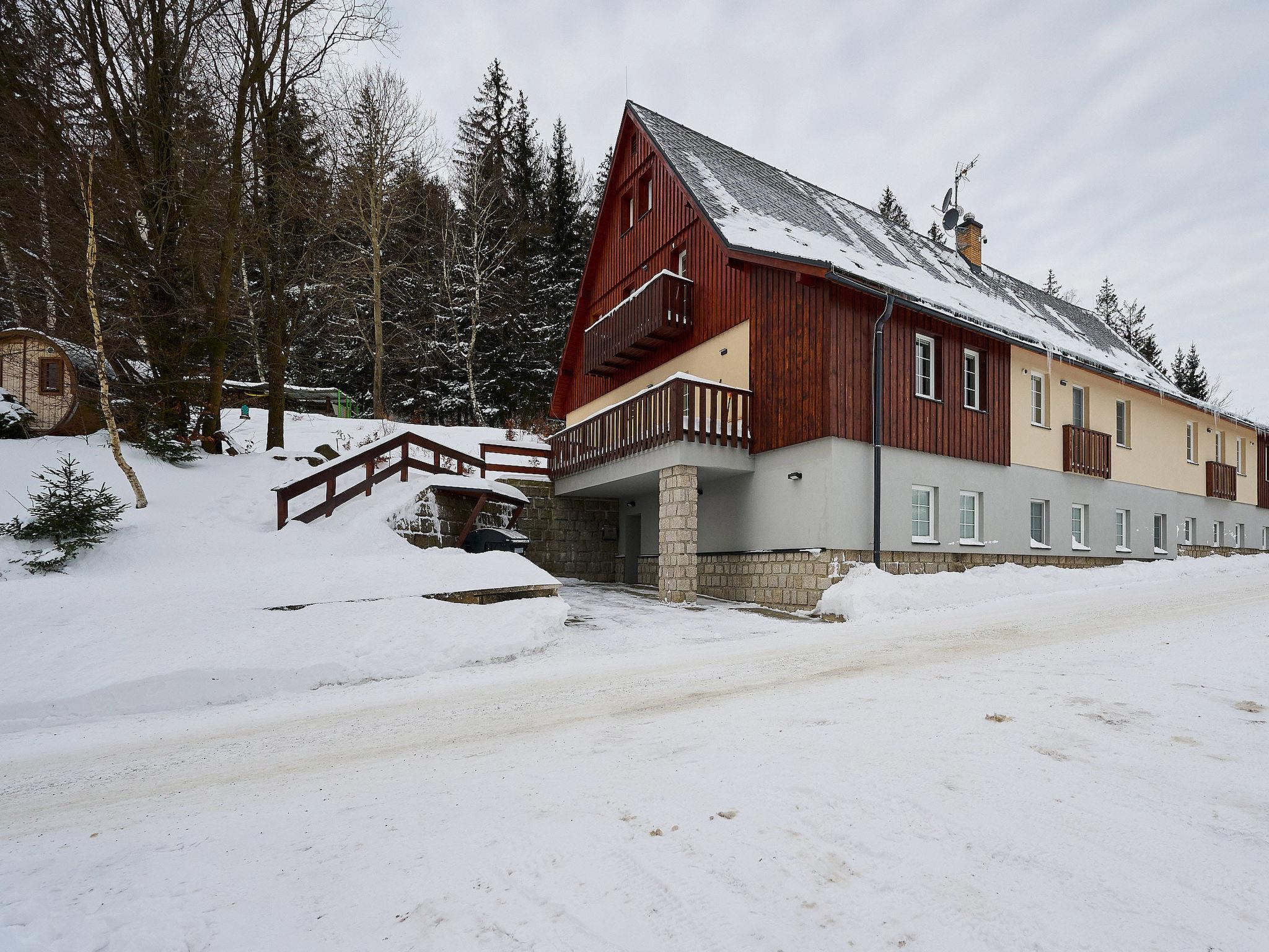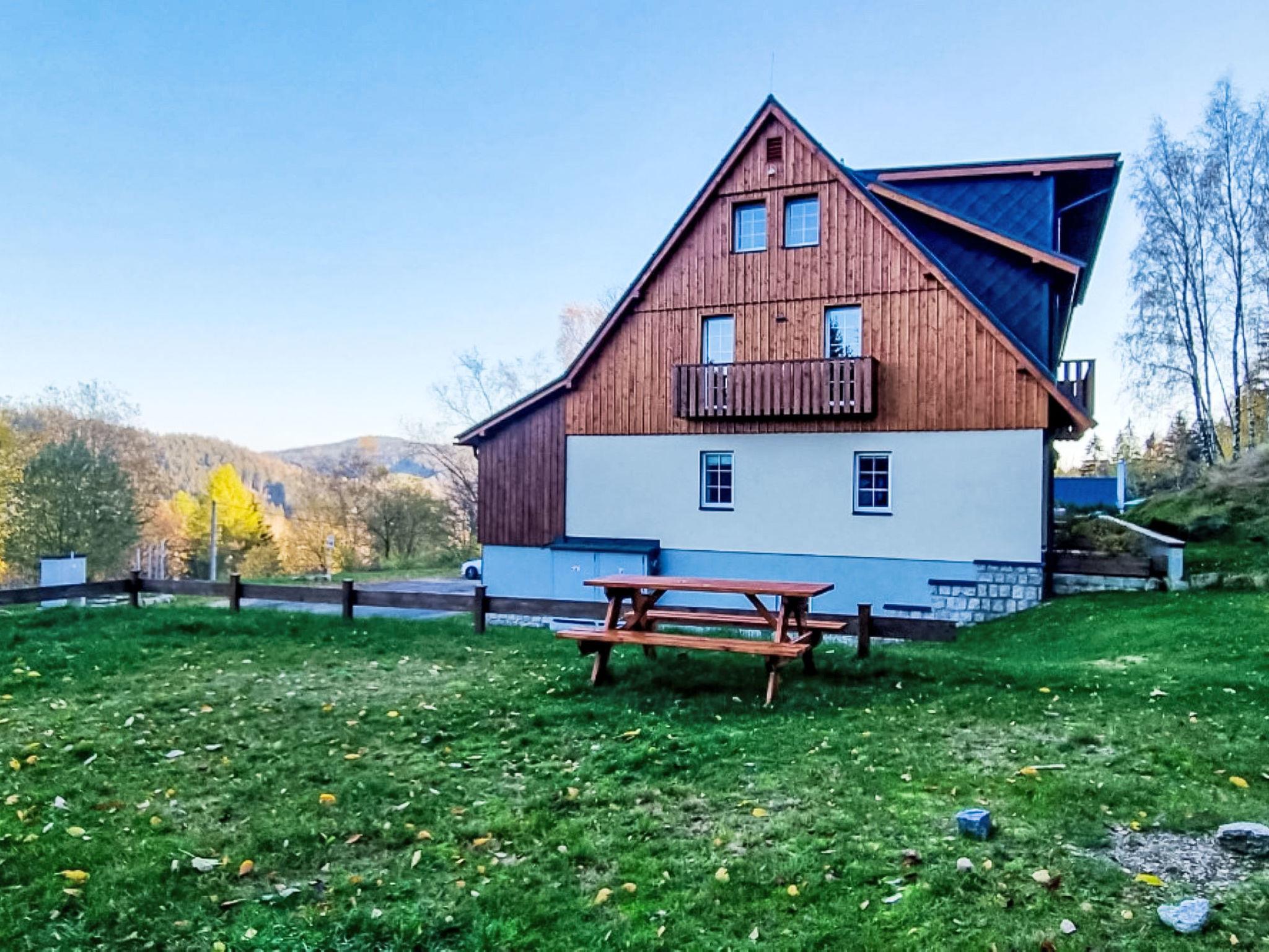 5 km from Bedrichov: Beautiful cottage, 3 storeys, detached, built in 2020. 10 apartments in the property. In the resort Hranicná, 1 km from the centre of Janov nad Nisou, in a quiet position, 800 m from the skiing area. For shared use: property with lawn. Garden furniture. Storeroom available. Parking (for 2 cars) at the house. Grocery 1 km, restaurant 3 km, pub garden 1.5 km, bus stop "Janov nad Nisou, samoobsluha" 900 m, railway station "Lucany nad Nisou" 8 km, outdoor swimming pool 3 km. Indoor tennis centre 1.5 km, walking paths from the house, cycle lane 300 m, ski lift 800 m, chair lift 2 km, slopes 800 m, ski rental 2 km, ski school 2 km, cross country ski track 300 m, children's playground 1 km. Nearby attractions: Pumptrack Janov nad Nisou 1 km, Královka 3.5 km, Bobová dráha 1,7 km, Slovanka, Albert 3.5 km, Bedrichovská vodní nádrž, Bramberk, Josefuv Dul vodní nádrž 6 km, Liberec: Zoo, Aquapark, iQLANDIA 12 km, Szklarska Poreba 42 km. Well-known ski regions can easily be reached: Bedrichov 2 km, Severák Hrabetice 6 km, U vodárny 1.5 km. Hiking paths: Jizerská magistrála 300 m, Lanový park Arthur 6 km.
