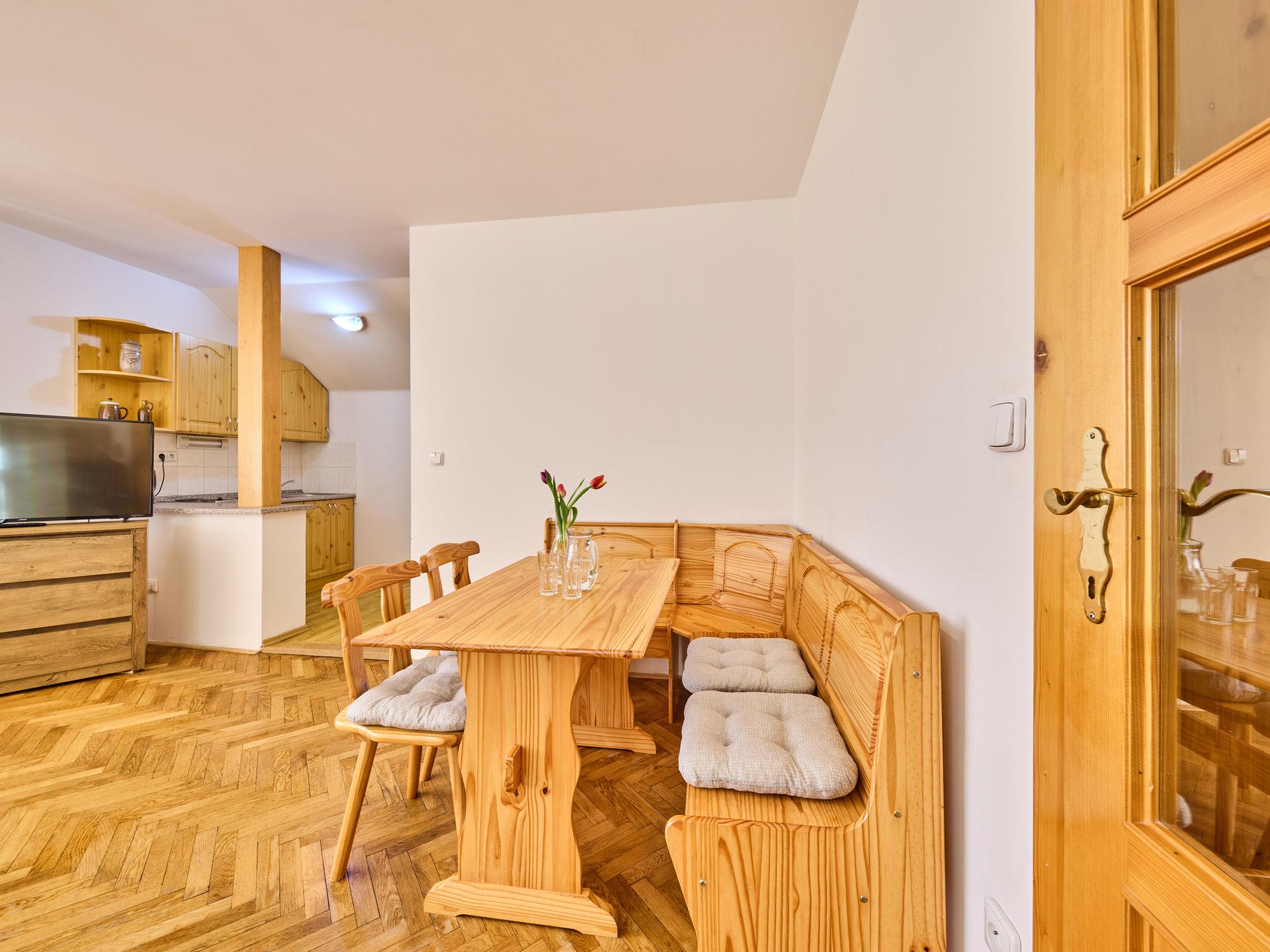 2-room apartment on 2nd floor. Bright, beautiful furnishings: living/dining room with 1 double bed, dining nook and TV. 1 room with 3 beds. Kitchenette (2 hot plates, microwave, electric coffee machine). Shower/WC. Facilities: Internet (WiFi, free). Please note: suitable for families. TV only CS.