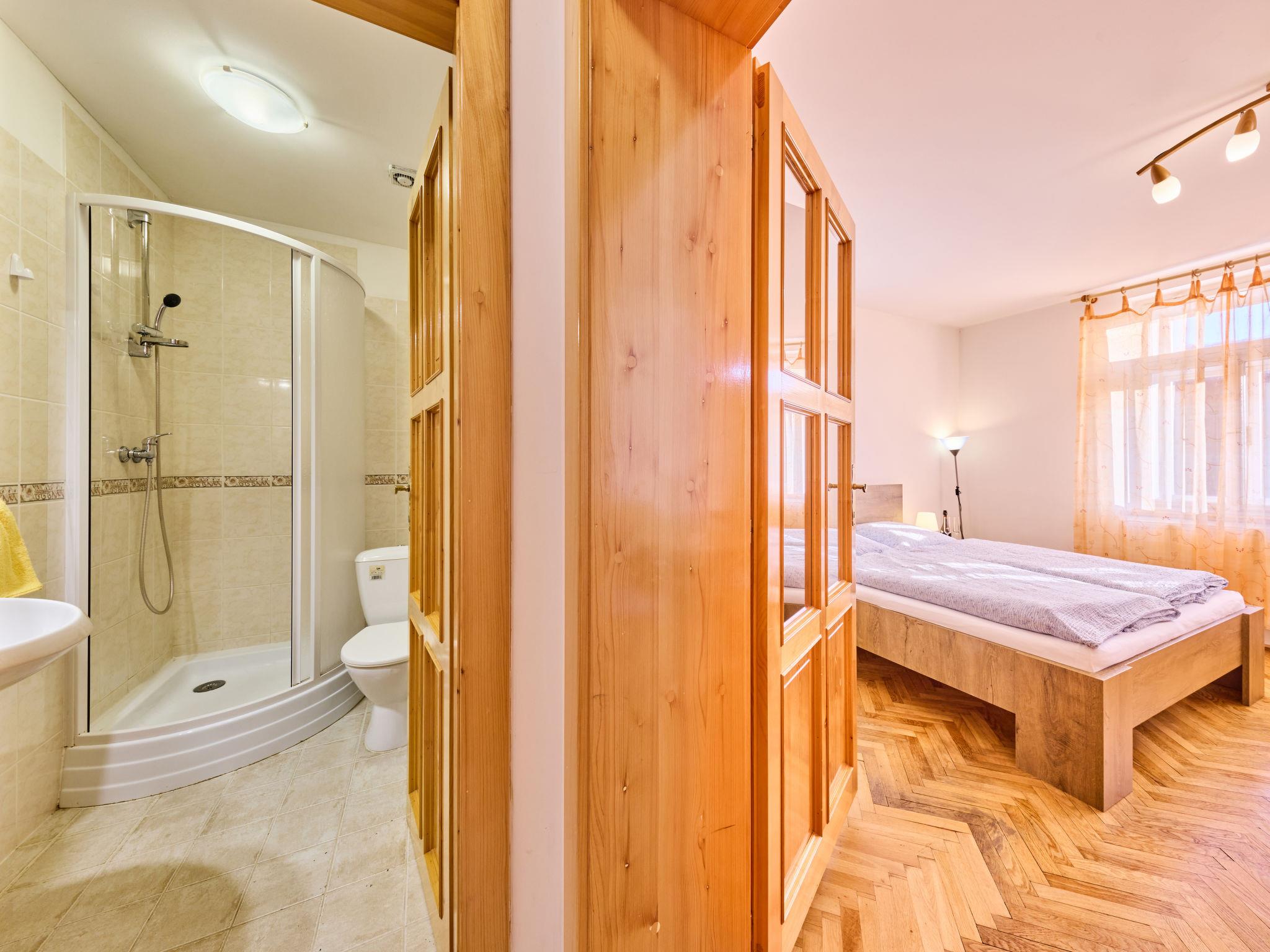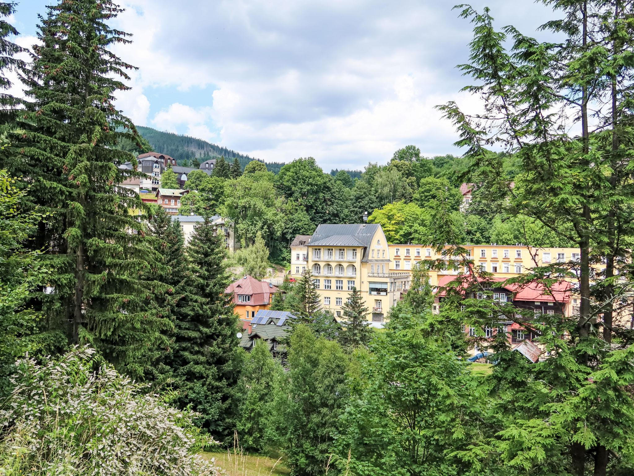 Cosy, rustic residence "Villa Belvedere", detached. 10 apartments in the residence. In the resort, 200 m from the centre, in a sunny position, 500 m from the skiing area. In the house: central heating system. Linen change (suppl. charge extra). Towel change (suppl. charge extra). Room cleaning on request (extra). Parking at the house, public parking extra. Grocery 300 m, restaurant 50 m, bus stop "Janské Lázne - Lesní dum" 300 m, railway station "Svoboda nad Úpou" 3.3 km, park "Farmapark Muchomurka" 1 km, outdoor swimming pool 7 km, indoor swimming pool 400 m. Tennis 1 km, minigolf 400 m, cycle lane 100 m, cable car 600 m, ski lift 300 m, chair lift 500 m, gondola lift 600 m, slopes 300 m, ski rental 300 m, ski school 400 m, children's ski school 300 m, sled run 700 m, cross country ski track. Nearby attractions: Lanovka na Cernou horu 600 m, Janské Lázne Spa, Stezka korunami stromu 1 km, bobová dráha 5 km, Pec pod Snežkou, Relaxpark, bobová dráha 11 km, Vrchlabí 10 km, Trutnov 12 km, Malá Úpa 15 km, Zoo Dvur Králové, Adršpach 35, Karpacz 40 km. Well-known ski regions can easily be reached: SkiResort CERNÁ HORA - PEC, Mladé Buky 5 km, Horní Malá Úpa 16 km, Špindleruv Mlýn 30 km. Hiking paths: krkonošské naucné stezky. Please note: no lift.