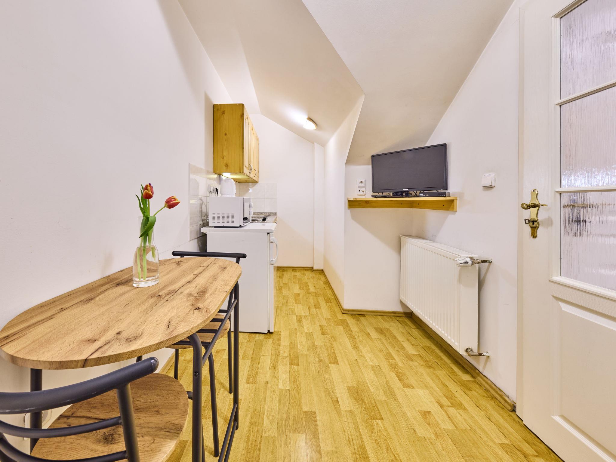 2-room apartment on 2nd floor. Bright, beautiful furnishings: 1 room with 2 beds. Kitchen (2 hot plates, microwave, electric coffee machine) with TV. Shower/WC. Facilities: Internet (WiFi, free). Please note: suitable for families. TV only CS.