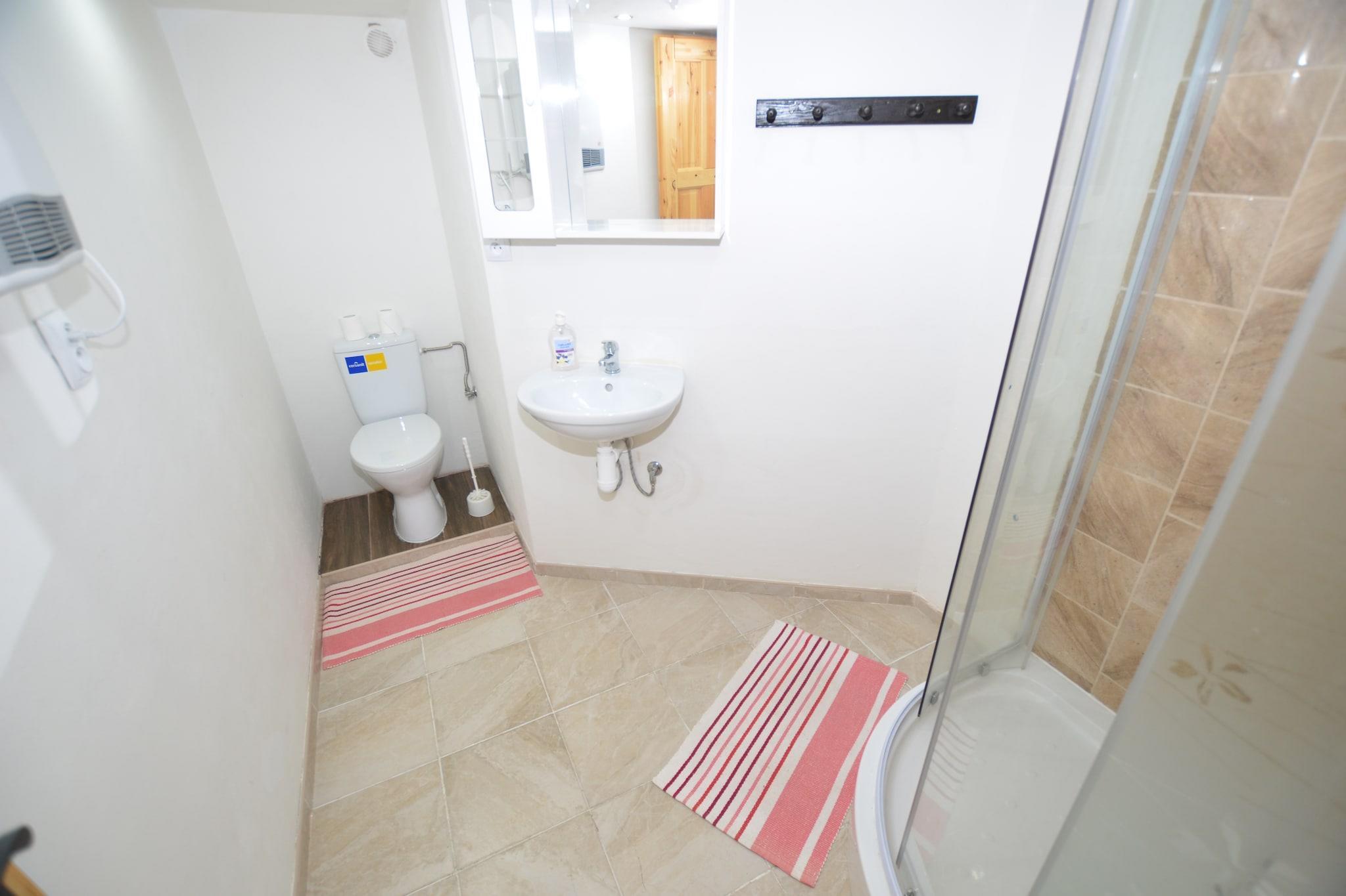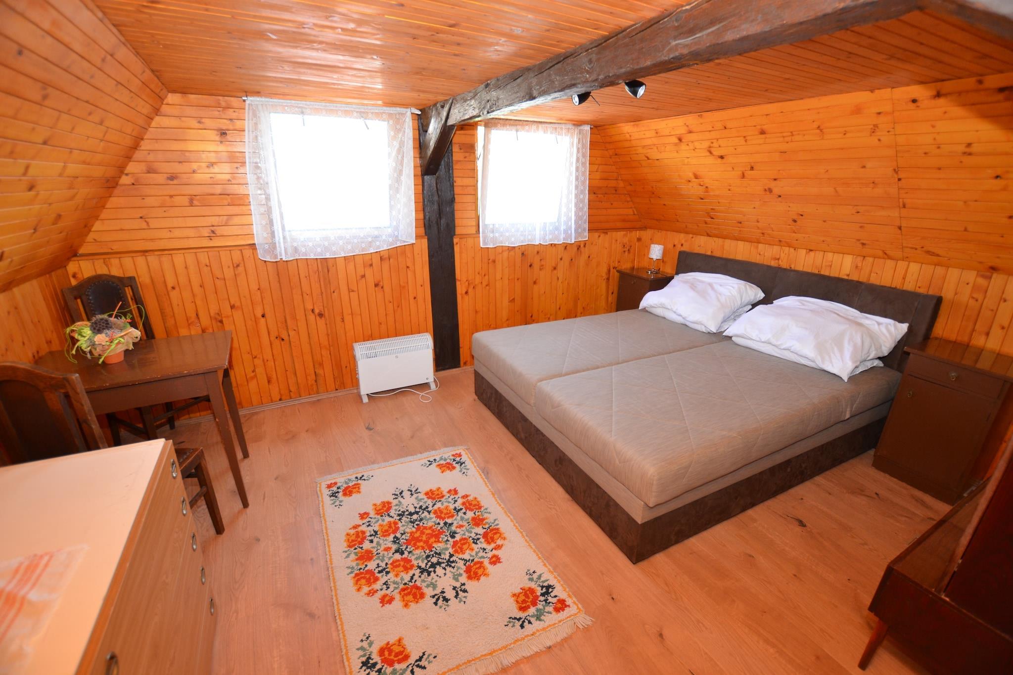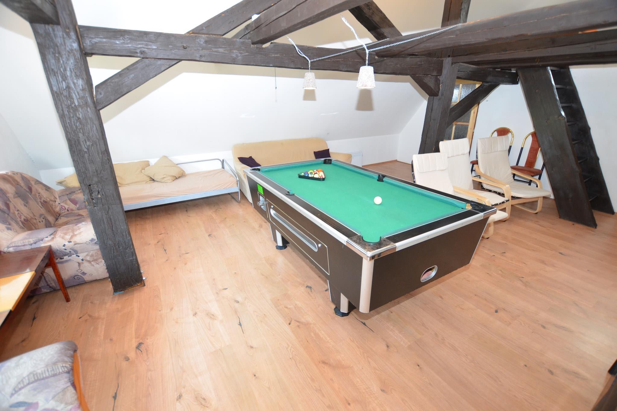 Rummeligt familieretræte Beliggende i Jiretín pod Jedlovou, kan dette ekspansive feriehus rumme op til 21 gæster fordelt på 8 soveværelser, hvilket gør det ideelt til store familiesammenkomster eller grupperejser. Kæledyr er velkomne, og den smukt anlagte have byder på masser af plads til at lege, mens gæsterne kan slappe af på den overdækkede terrasse eller slappe af på liggestolene. En privat sauna og flere siddeområder sikrer afslapning efter en dag med udforskning. Eventyr og spisning i nærheden Supermarkeder ligger kun 200 m væk, og den nærmeste swimmingpool ligger kun 500 m fra boligen. Skientusiaster kan nå pisterne ved en skilift, der ligger 1 km derfra. Området byder også på naturskønne vandrestier og cykelstier, der egner sig til gæster og deres kæledyr. Restauranter og caféer i gåafstand giver en smag af det lokale køkken, perfekt til et afslappet måltid efter udendørs eventyr. Underholdning derhjemme Huset har et veludstyret køkken med moderne apparater, herunder ovn, mikroovn og opvaskemaskine til familiens måltider. Gæsterne kan spille billard, bordtennis eller dart i legeområderne, mens kæledyr udforsker den rummelige 800 m² store have. Parkering på stedet sikrer bekvemmelighed for grupper, der ankommer i bil, og offentlig transport er kun 40 m væk. Kombinationen af ??komfort, rekreation og en kæledyrsvenlig atmosfære gør dette hjem til en ideel base for at udforske det nordlige Bøhmen.