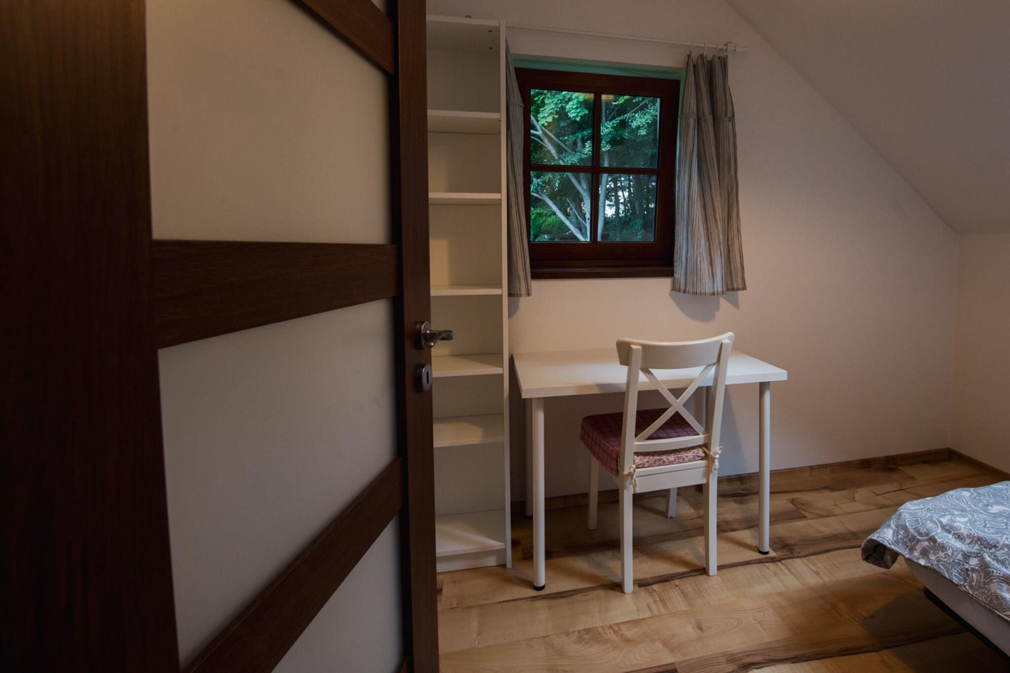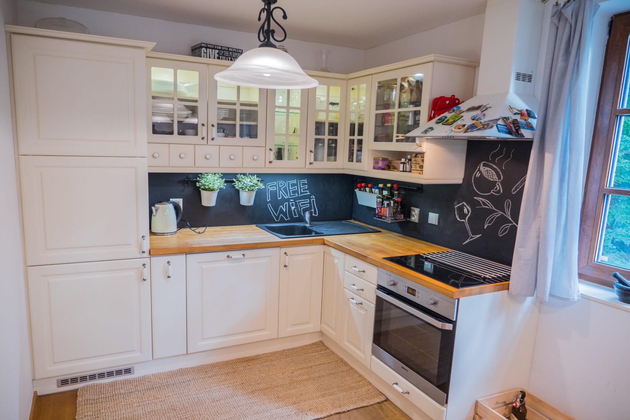Denne moderne villa, beliggende i de naturskønne Ertsbjerge i det vestlige Tjekkiet, er et ideelt tilflugtssted for mindre grupper og familier med børn. Villaen spænder over 112 m² og kan rumme op til 7 gæster fordelt på 3 hyggelige soveværelser. Det tilbyder alle moderne bekvemmeligheder, herunder WiFi, elvarme og en opvaskemaskine. Det åbne køkken, udstyret med en keramisk komfur, giver dig mulighed for nemt at tilberede lækre måltider. Efter en dag med udforskning eller skiløb kan du slappe af ved den charmerende brændeovn i det rummelige opholdsområde, eller slappe af i et af de to badeværelser med et forfriskende badekar eller bruser. Villaen ligger i et fredeligt skovområde og byder på en smuk udsigt over haven og en indbydende overdækket terrasse på 16 m². Nyd en afslappet morgenmad her om morgenen, eller vær vært for en sommer- eller vintergrill, når dagen slutter. For en mere overbærende oplevelse, er to restauranter placeret mindre end en kilometer væk, perfekt til et luksuriøst måltid efter en dag med udendørs aktiviteter. Villaen ligger perfekt til både sommer- og vinterferie. Om sommeren kan du besøge den nærliggende "Jezero Barbora"-sø, kun 21 km væk, med sandstrande perfekt til en afslappende dag ved vandet. For vintersportsentusiaster er villaen ideelt beliggende nær flere skiområder, herunder "Ski Areal Kliny" kun få skridt væk, og "Ski Resort Meziborí" og "Ski Areál Ceský Jiretín" inden for en kort køretur. Uanset om du nyder udendørs eventyr, udforske historiske landsbyer eller besøger nærliggende forlystelsesparker og vandlande, tilbyder denne villa en fantastisk base for din tjekkiske ferie.