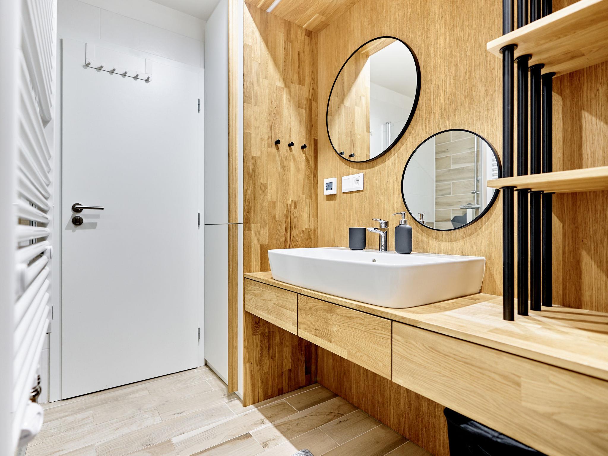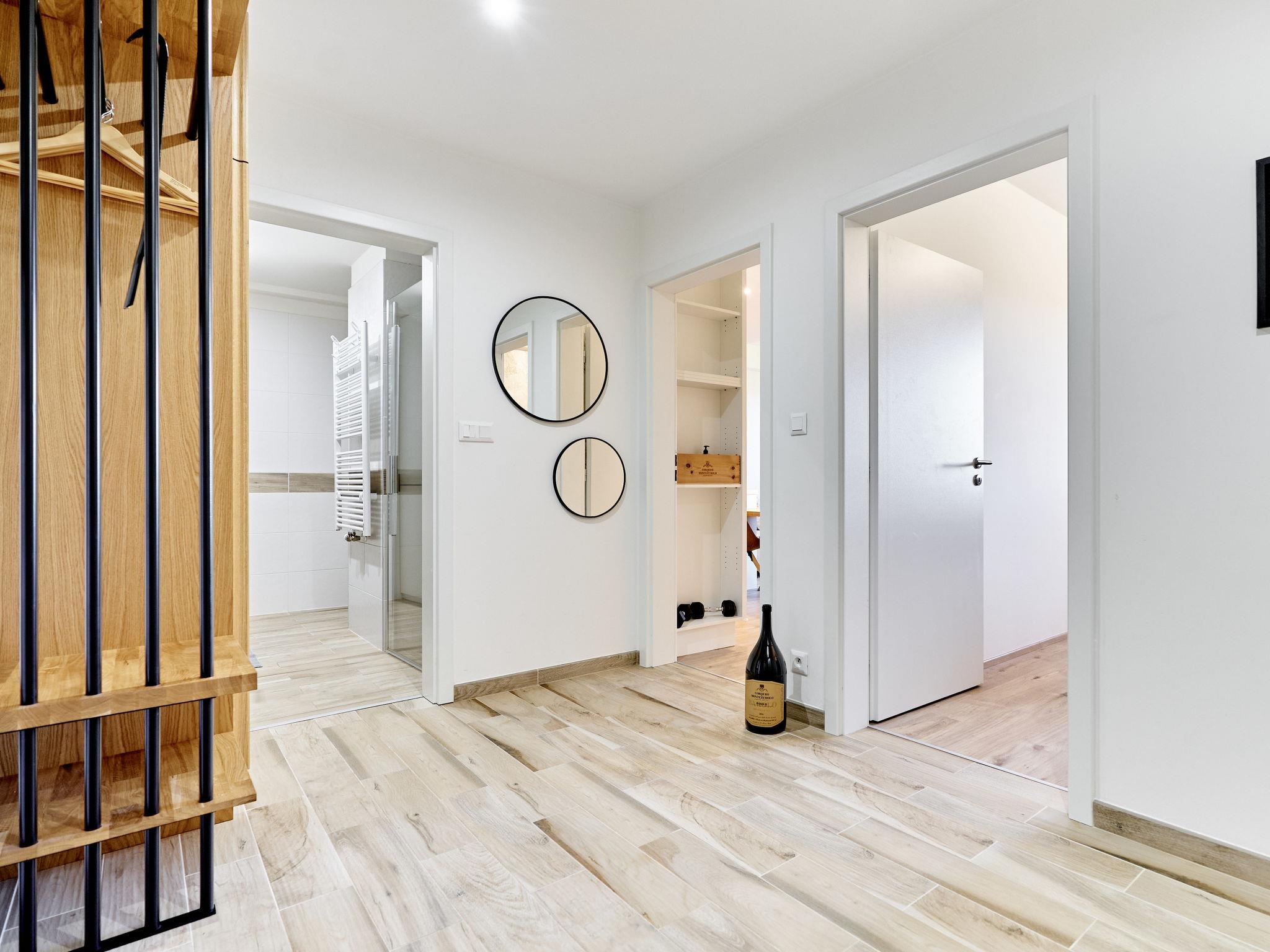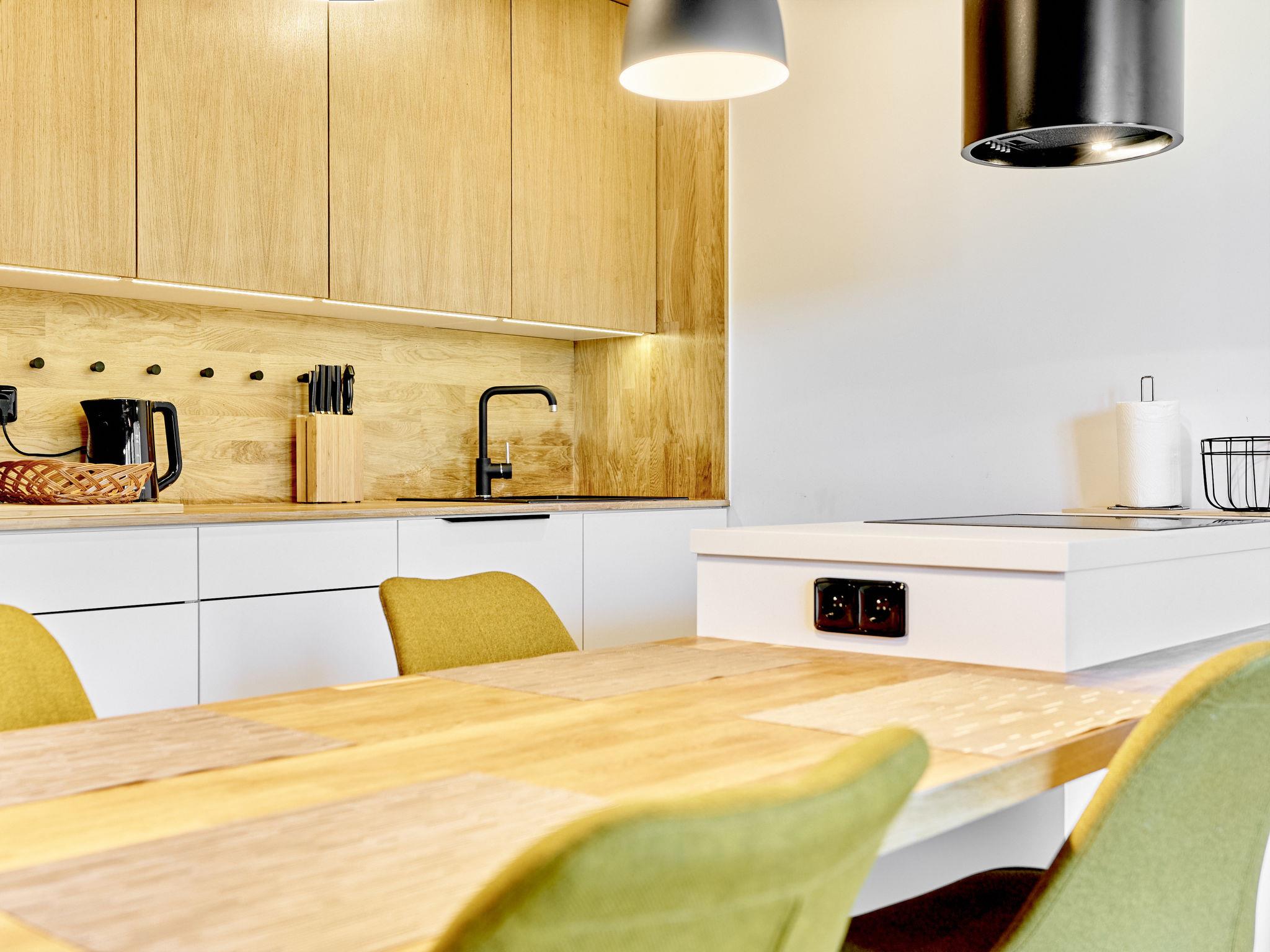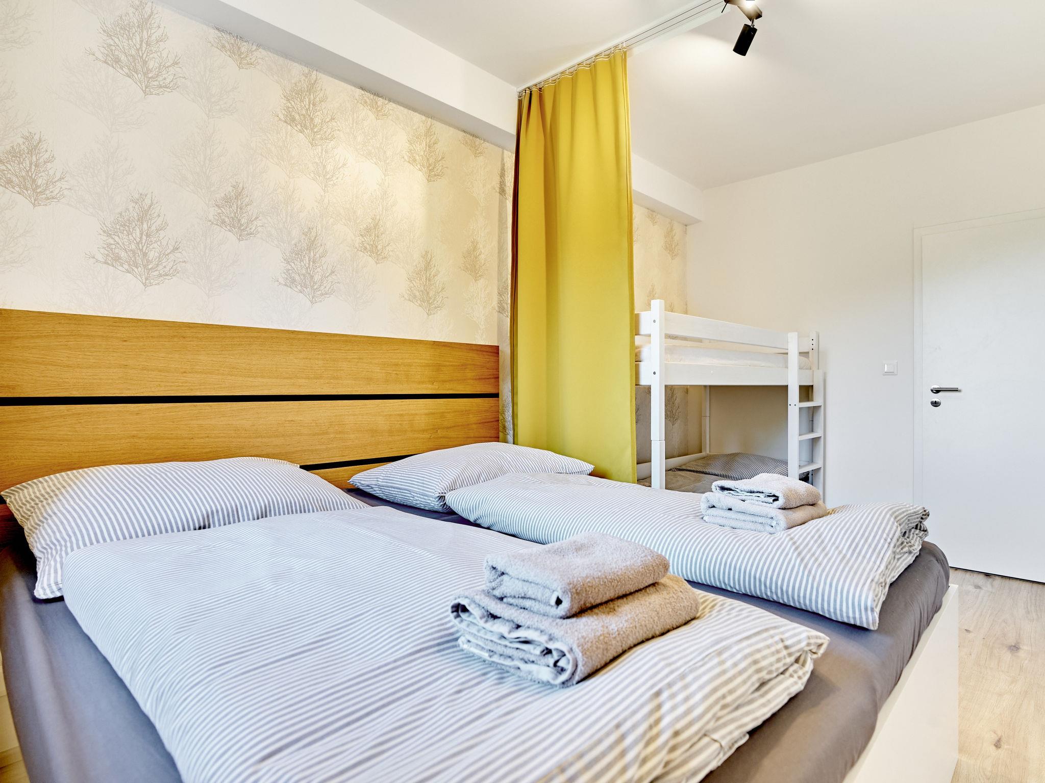 "Klínovec Suite", 2-room apartment 48 m2. Beautiful and modern furnishings: living room with 1 double sofabed and TV. 1 room with 1 x 2 bunk beds, 1 double bed. Kitchenette (oven, dishwasher, microwave, electric coffee machine) with dining table, TV. Exit to the balcony. Shower/WC. Heating. Small balcony. Beautiful view of the mountains and the forest. Facilities: Internet (WiFi, free). Garage at the house. Please note: non-smokers only. 1 pet/ dog allowed.