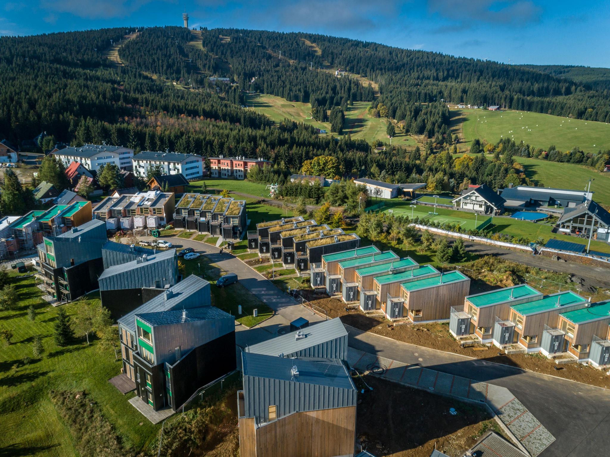 Modern terraced house "Klinovec Meadows Residence". 2 km from the centre, in a quiet, sunny position, 200 m from the edge of the forest, 300 m from the skiing area. For shared use: property, garden. Fireplace. Private: terrace, garden furniture, parking on the premises. Shop 2 km, supermarket 6 km, shopping centre 9 km, restaurant 350 m, bus stop "Loucná Háj" 450 m, indoor swimming pool 600 m. Walking paths from the house 50 m, cycle lane, ski lift, ski rental 300 m, ski bus stop 500 m, ski school 300 m, children's ski school, cross country ski track 200 m, children's playground 500 m. Nearby attractions: Trail Park Klínovec 4 km, Ježíškova cesta 6 m, Kurort Oberwiesenthal - bobová dráha, morské akvárium, parní úzkokolejka 8 km, lázne Jáchymov 13 km, Karlovy Vary 30 km, Annaberg-Buchholz 20 km. Well-known ski regions can easily be reached: Skiareál Klínovec 300 m, Loucná 2 km, Neklid 4 km, Hranice 6 km, Plešivec 15 km, Fichtelberg/Oberwiesenthal (DE) 8 km. Hiking paths: Klínovec (1244m), Boží Dar 8 km, Horní Hrad (Hauenštejn) 15 km.