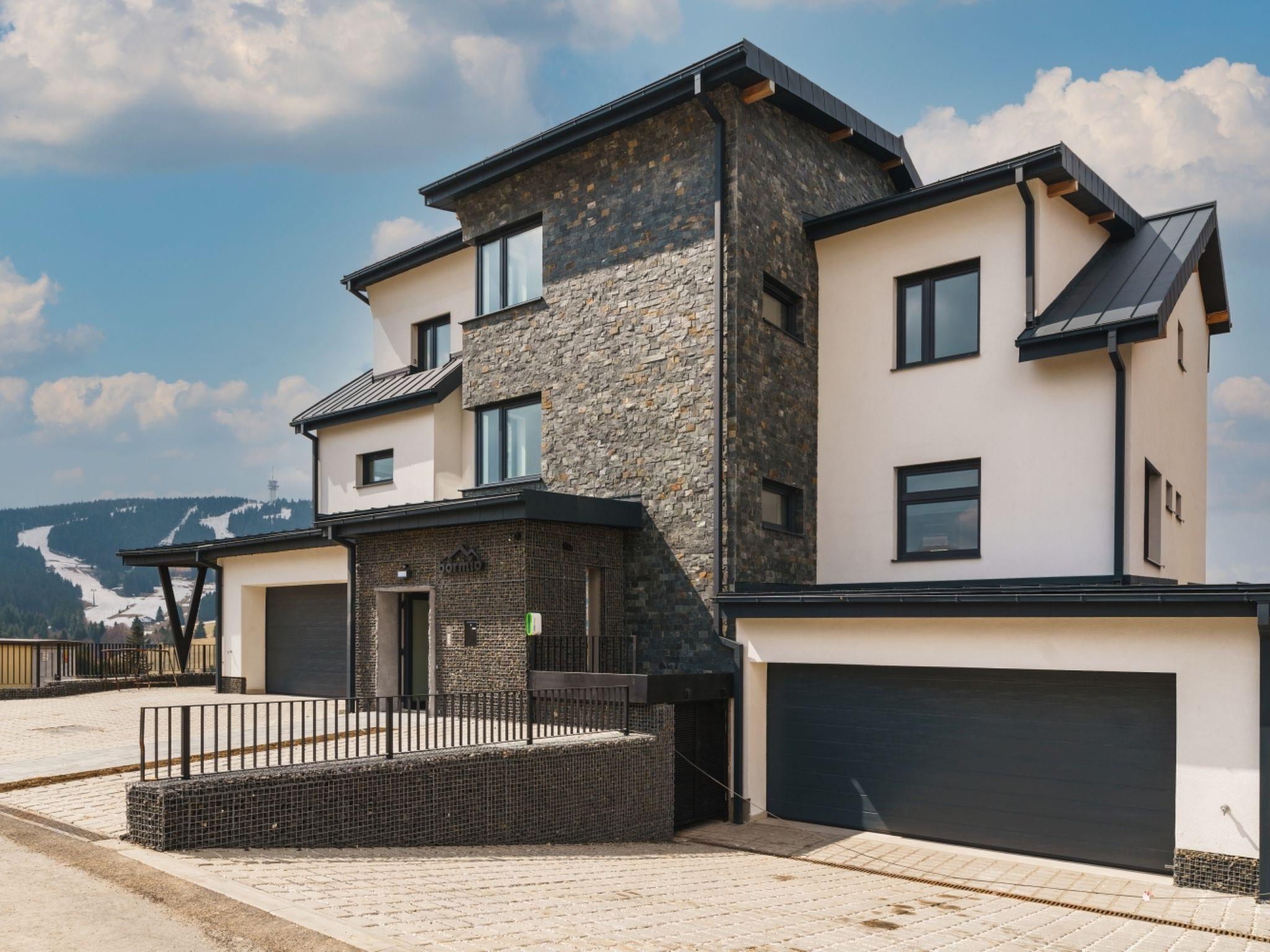 Modern, beautiful apartment block "Bormio", 3 storeys, built in 2024. 1.2 km from the skiing area. For shared use: property. In the house: lift, central heating system. Storeroom available. Parking at the house. Supermarket 750 m, restaurant 1 km, bar 800 m, bus stop "Loucná, háj. Park" 1.2 km. Nearby attractions: Boží dar 6 km, Fichtelberg 8 km, Jáchymov 14 m. Well-known ski regions can easily be reached: Klínovec 1 km, Boží dar 6 km. Hiking paths: Krušnohorská magistrála, Ježíškova cesta, Naucná stezka Božídarské rašelinište.