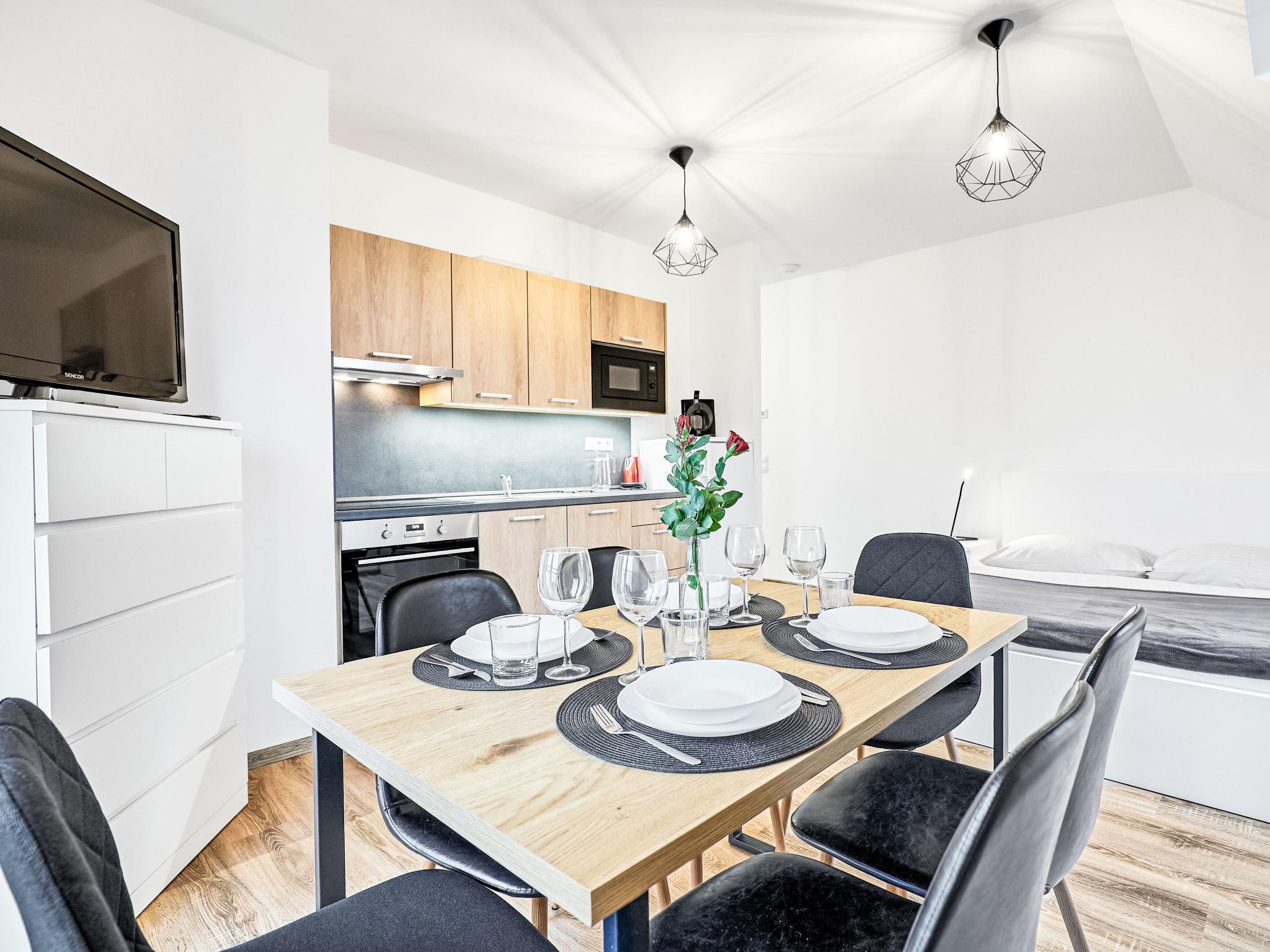 "Ski Trek", 2-room apartment on 1st floor. Beautiful and modern furnishings: 1 room with 1 double bed. Living/sleeping room with 1 double bed, dining table and satellite TV. Kitchenette (oven, microwave, electric coffee machine). Bath/shower. Heating. Facilities: Internet (WiFi, free). Please note: non-smokers only.