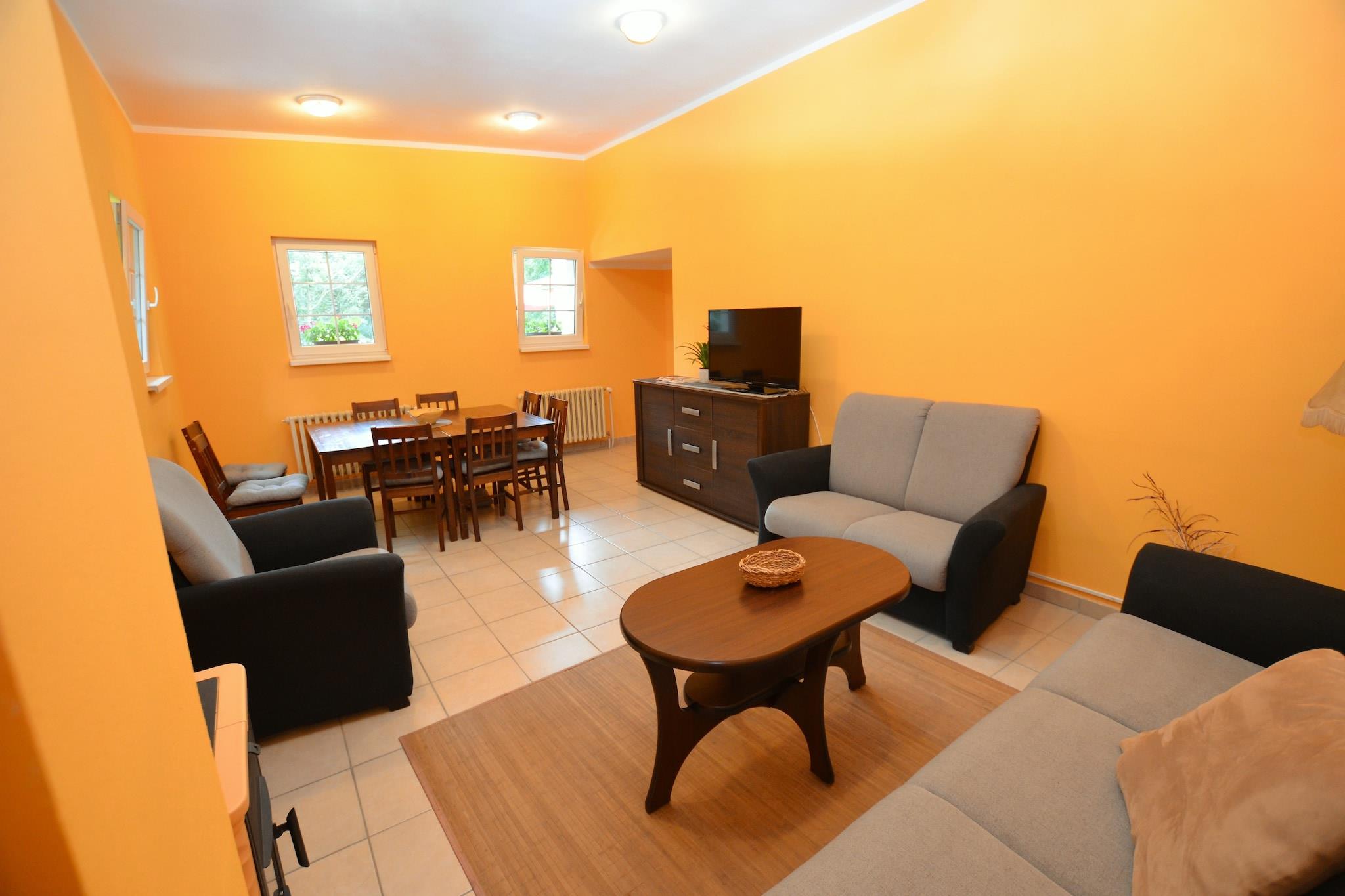 Denne rummelige bondegård, beliggende nær skoven, kan komfortabelt rumme op til 9 gæster fordelt på tre soveværelser. Dens varme, indbydende stue har en dekorativ pejs og rigelig plads til afslappende aftener sammen. Det åbne køkken og spiseplads gør det til en fornøjelse at tilberede og nyde måltider, mens den private terrasse, havemøbler, grill og swimmingpool skaber de perfekte rammer for udendørs sammenkomster eller rolige eftermiddage i naturen. Denne ejendom ligger blot 100 meter fra skoven og tilbyder øjeblikkelig adgang til naturskønne vandreture og frisk luft. Udforsk det nærliggende Malecov, hvor der ligger butikker og restauranter inden for 7 km, og Rýdec og Hlinná byder på lokale spisesteder kun 4 km væk. Udendørsentusiaster kan nyde både indendørs og udendørs offentlige swimmingpools 10 km fra huset, eller bare slappe af i de rolige omgivelser i haven og terrassen. For praktiske behov betjenes huset af offentlig transport 1 km væk, og Litomerice, 10 km fra ejendommen, tilbyder banker, læger og yderligere indkøb. Parkering er tilgængelig på stedet for at lette ankomst og afgang. Uanset om du leder efter en familieferie eller en fredelig flugt på landet, kombinerer dette bondehus komfort, plads og adgang til skønheden i Centralbøhmens skove.