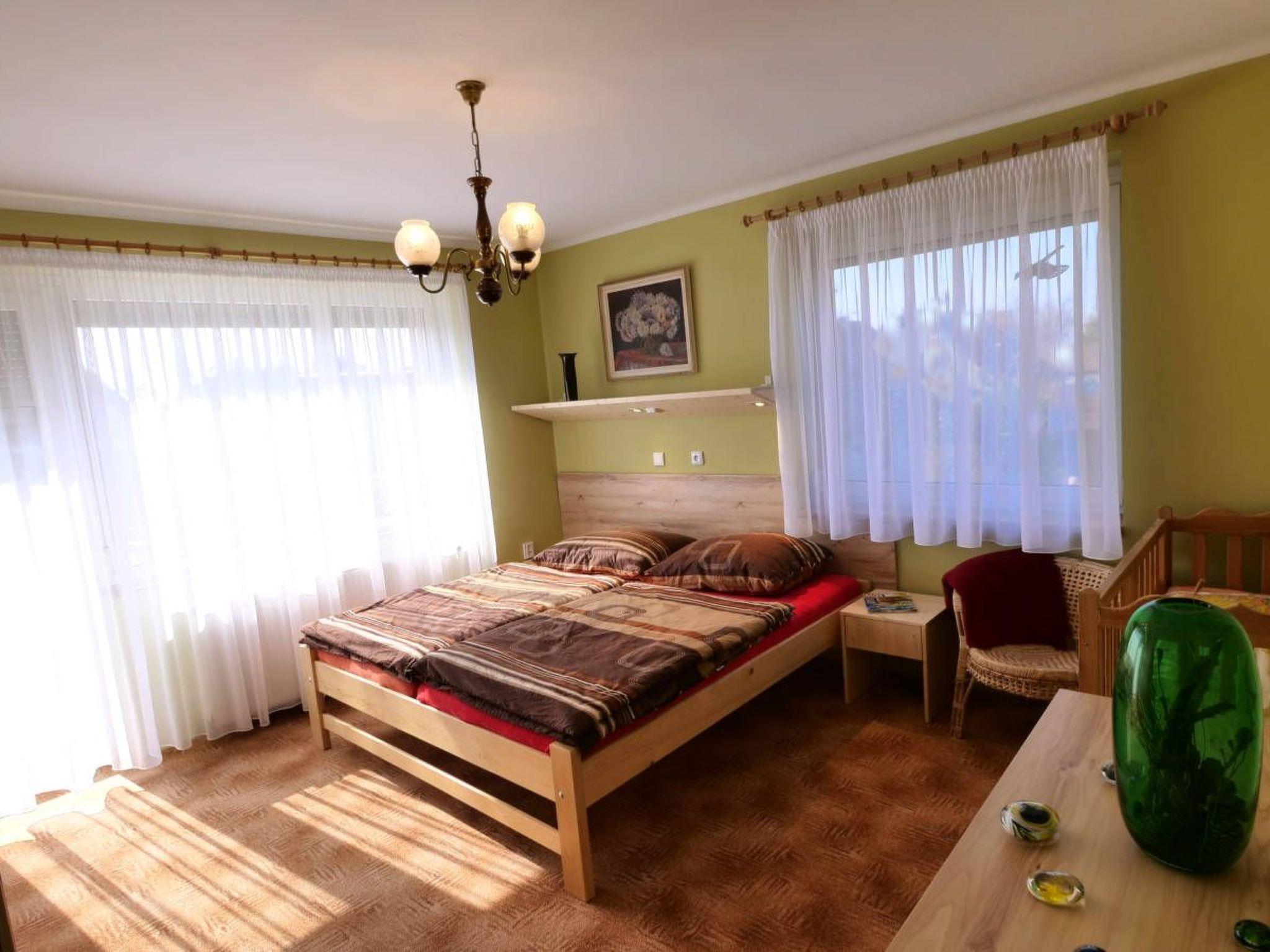 4 bedrooms / beds in the bedrooms see the picture gallery / - good for max. 8 adults and 2 children. If required, you can also book the fully equipped flat Miki, then a total of 5 bedrooms and good for max. 10 adults and 2 children. The flat Miki can not be booked separately, so only bookable from the group in the main house Joska !!! In the house : living room with fireplace, 1 x winter garden with sitting area, 2xDUWC, including a bathtub, 1x separate toilet, 1x separate shower in sauna room, equipped kitchen, dishwasher, washing machine, satellite TV, central heating, heated indoor pool approx 4.6x2.8 m, sauna, steam bath, roof terrace 100 m2, pergola with barbecue, garden, fenced, good for max. 10 persons. INTERNET ACCESS via WLAN, 2 dogs allowed..., car park on the property max. 4 cars, WALLBOX up to 11 kW available, please register in advance