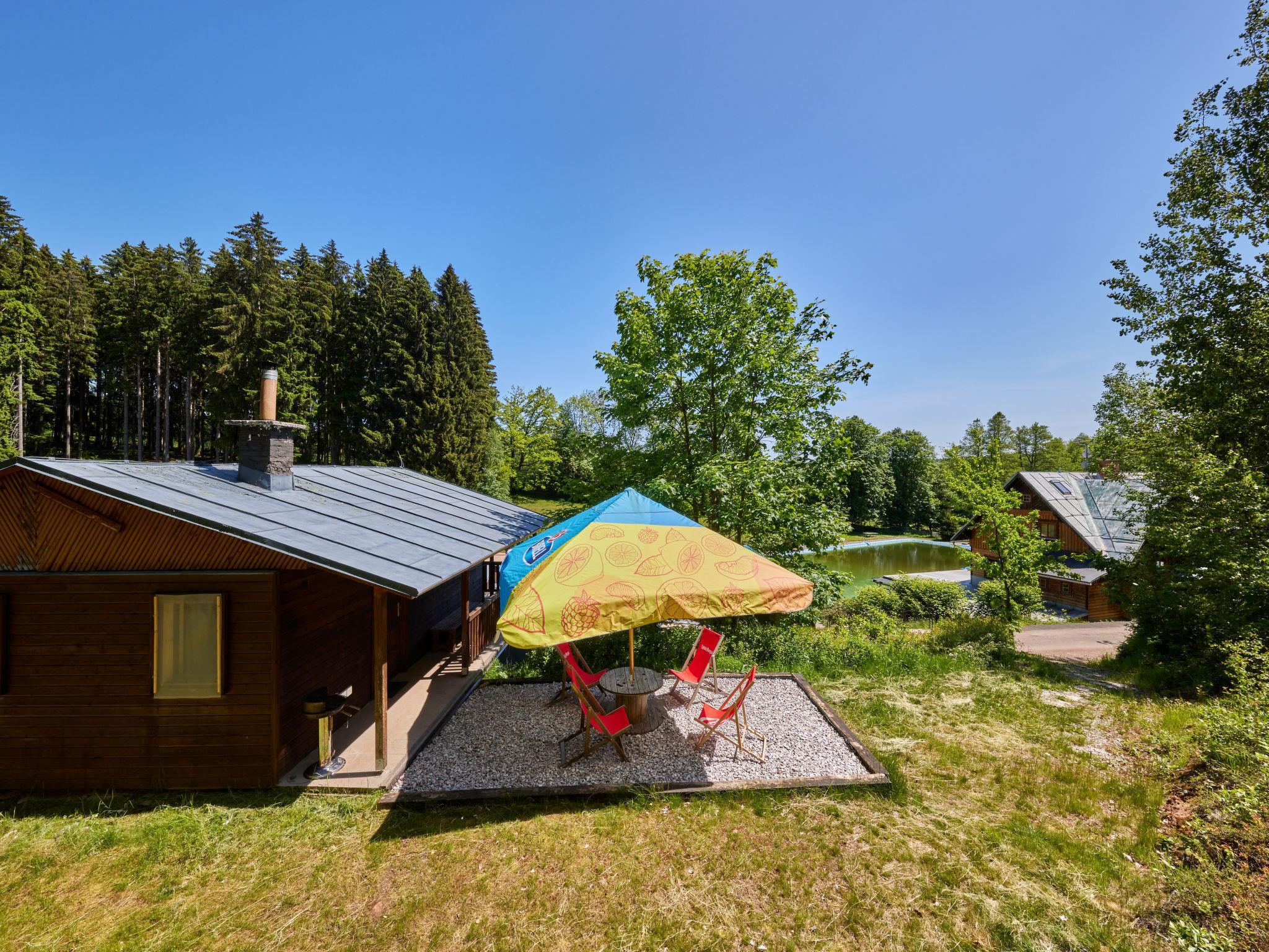 "Lesní plovárna B1", 1-room bungalow. Comfortable furnishings: living/sleeping room with 1 x 2 bunk beds, 1 double bed, Scandinavian wood stove, dining table and TV (flat screen). Kitchenette (2 hot plates, toaster, kettle, microwave, electric coffee machine, Capsules for coffee machine (Tchibo)). Shower/WC. Electric heating, wood heating. Terrace. Terrace furniture, barbecue (portable), deck chairs. Facilities: Internet (WiFi, free). Please note: suitable for families. Non-smoking house. 1 small pet/ dog allowed.