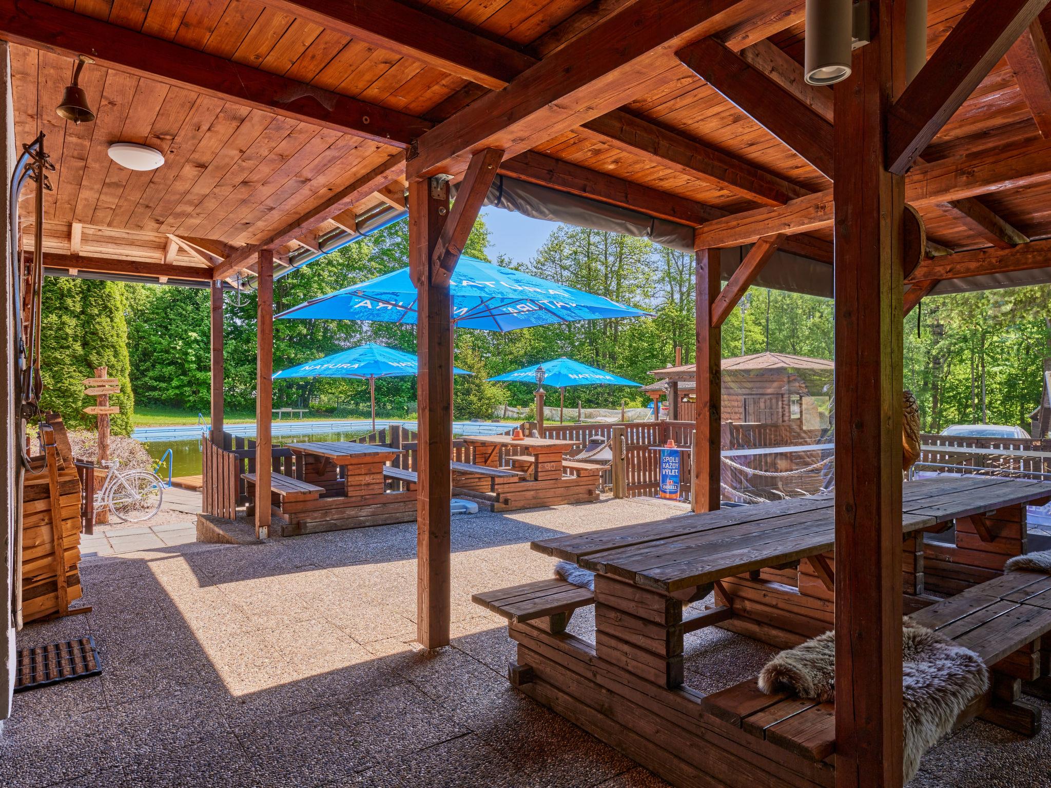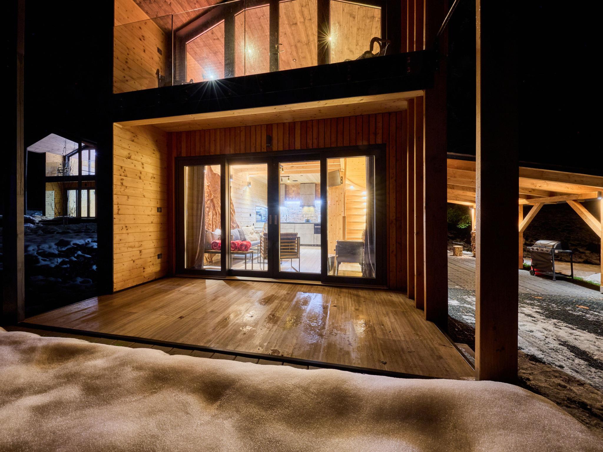 Very beautiful chalet "Luxe Timber Lodge & Pet Retreat", 2 storeys, detached, built in 2023. 7 houses in the resort. Outside the resort, in a quiet, sunny position, 5 m from the edge of the forest, 2 km from the skiing area. For shared use: natural state property, lawn for sunbathing, swimming pool (seasonal availability: 26.Jun. - 03.Sep.). Shower/WC in the pool area, table tennis, boccia, badminton, beach volleyball, barbecue, fireplace. Private: patio, fireplace. In the complex: WiFi, billiard table, storage room for bicycles, sun terrace, storage room for skis. Roofed, parking at the house. E-charging station. Grocery 1.5 km, shopping centre 6 km, restaurant 5.5 km, bus stop "Mladé Buky" 1.5 km, railway station "Mladé Buky" 1.5 km, indoor swimming pool 10 km. Golf course (18 hole) 4 km, riding stable 3.5 km, walking paths from the house, cycle lane 50 m, ski rental 2.5 km, ski bus stop 50 m, ski school 2.5 km, children's ski school 2.5 km, sled run 2 km, cross country ski track 500 m, children's playground 50 m. Nearby attractions: zábavní park Balduv svet, 2.5 km, Rozhledna Eliška, tvrz Stachelberg 9 km, Stezka Korunami stromu Janské Lázne 10 km, Lanovka na Snežku, Pec pod Snežkou 18 km, Zoo Dvur Králové, Adršpach 28 km, Vyhlídkové lety Vrchlabí, Kuks 30 km. Well-known ski regions can easily be reached: Mladé Buky 2 km, Janské Lázne 9 km, Cerný Dul, Pec-Cerná hora 15 km. Hiking paths: Krkonošský národní park.