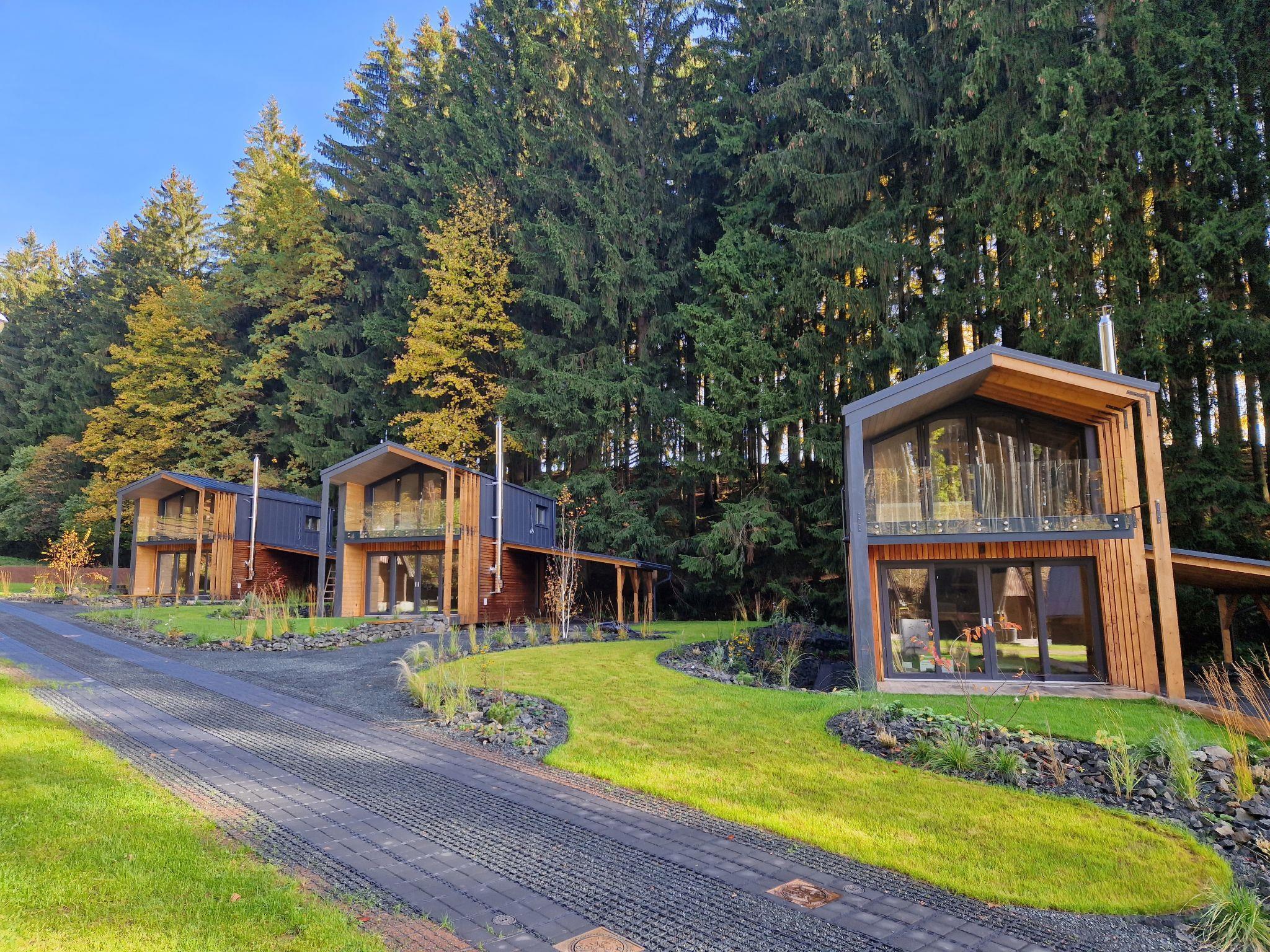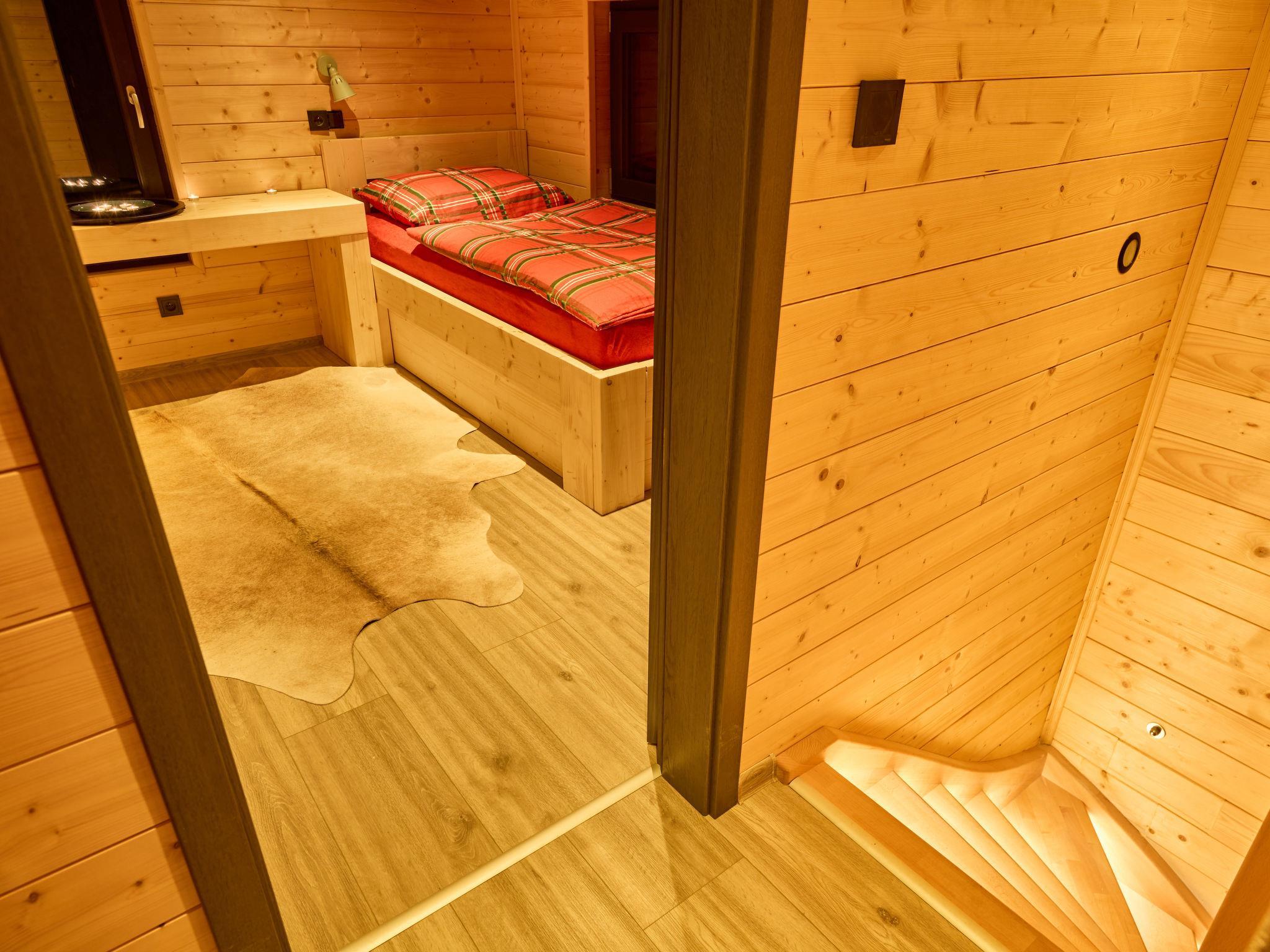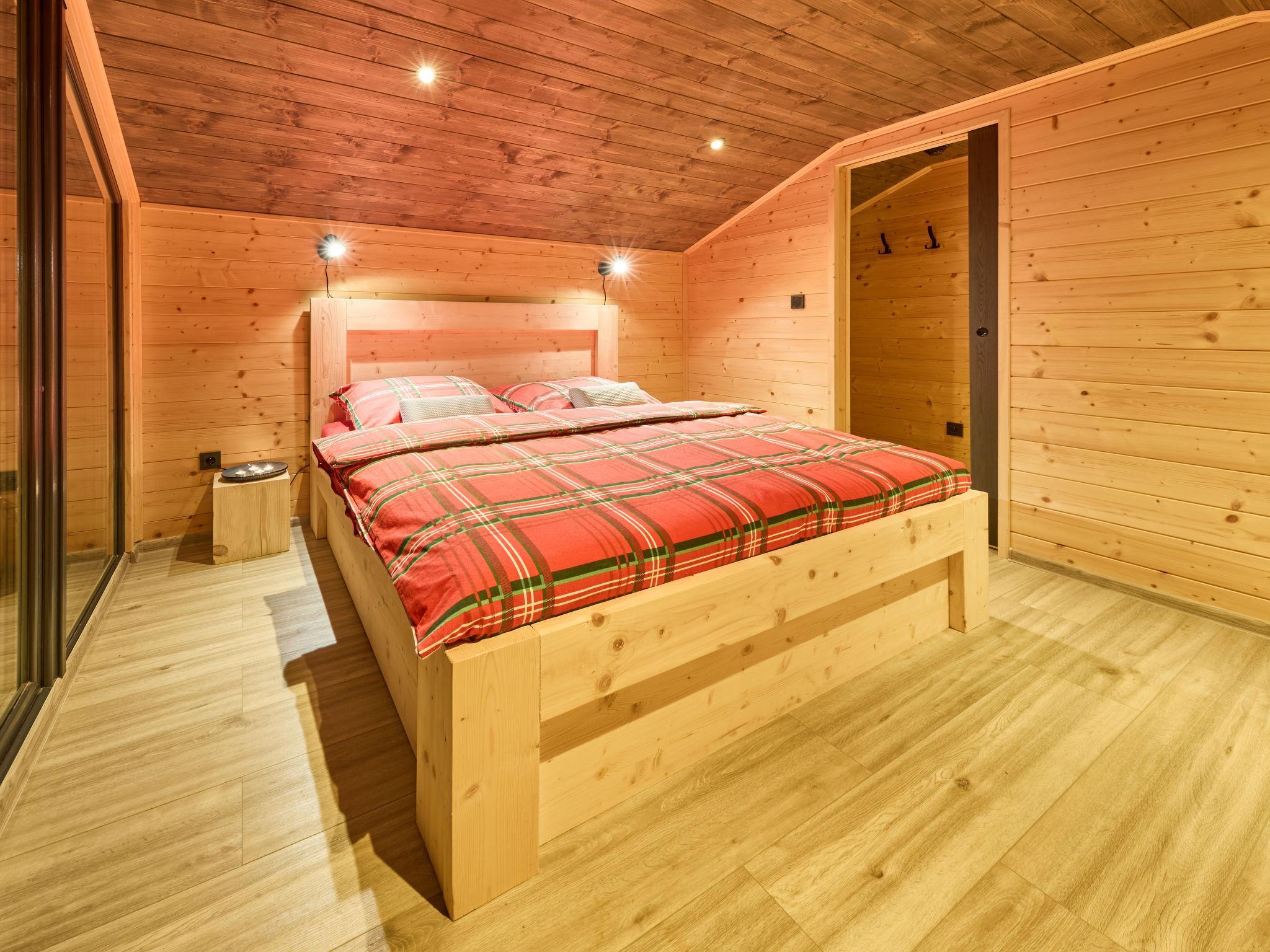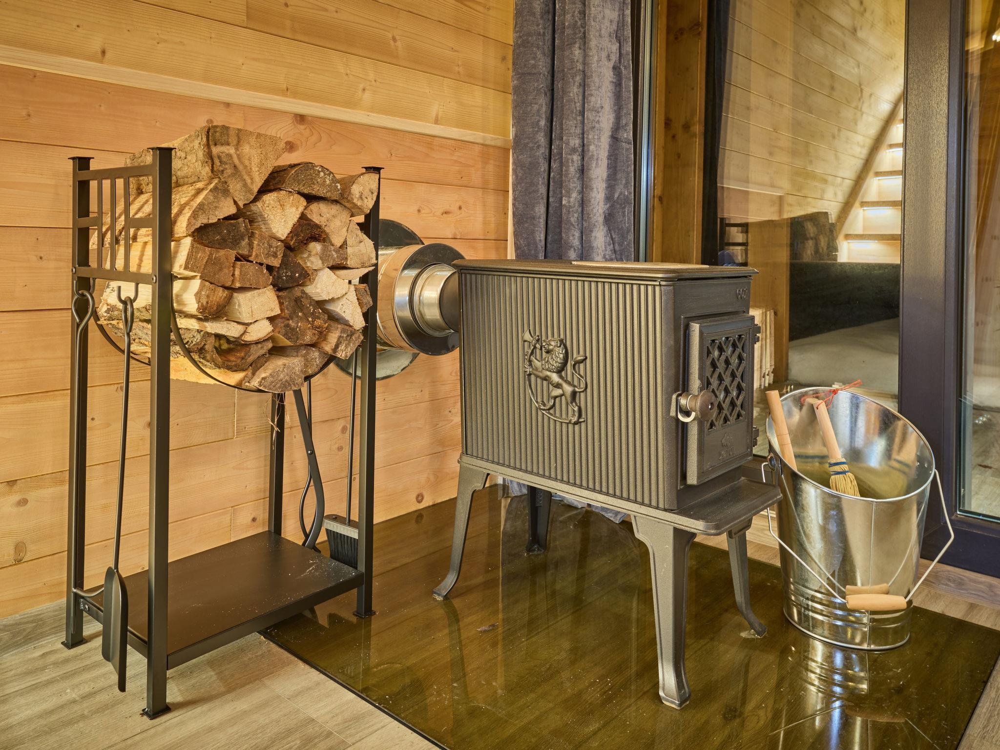 "Luxe Timber Lodge & Pet Retreat", 3-room chalet. Very beautiful and tasteful furnishings: living/dining room with 1 sofabed, Scandinavian wood stove, dining table and TV. Kitchenette (2 hot plates, oven, toaster, kettle, microwave, electric coffee machine, Capsules for coffee machine (Tchibo)). Shower/WC. Electric heating, wood heating, floor heating. Upper floor: 1 room with 1 double bed. 1 room with 2 beds. Exit to the balcony. Balcony. Balcony furniture, barbecue. Facilities: Internet (WiFi, free). Please note: suitable for families. Non-smoking house. 1 small pet/ dog allowed. Built-in bluetooth audio system and central touch control of lighting and temperature conveniently from the living room.