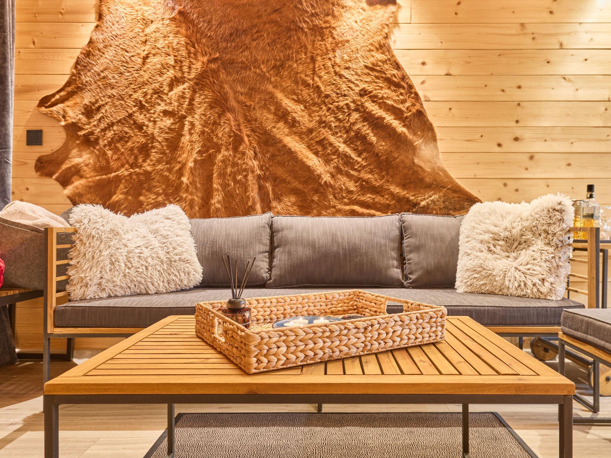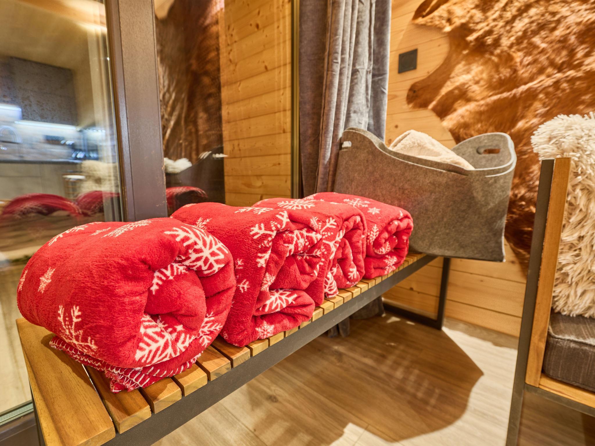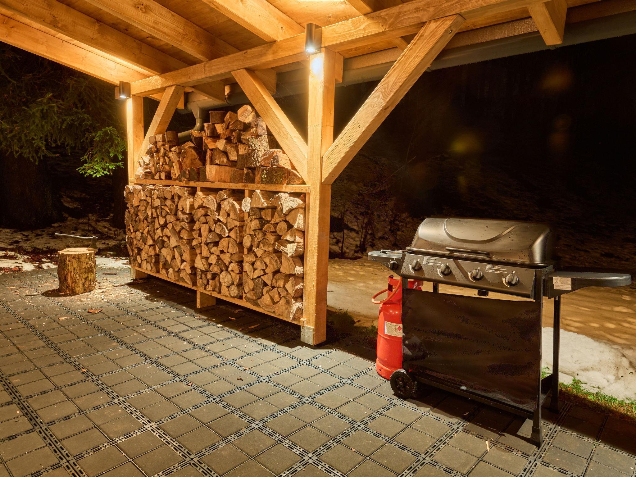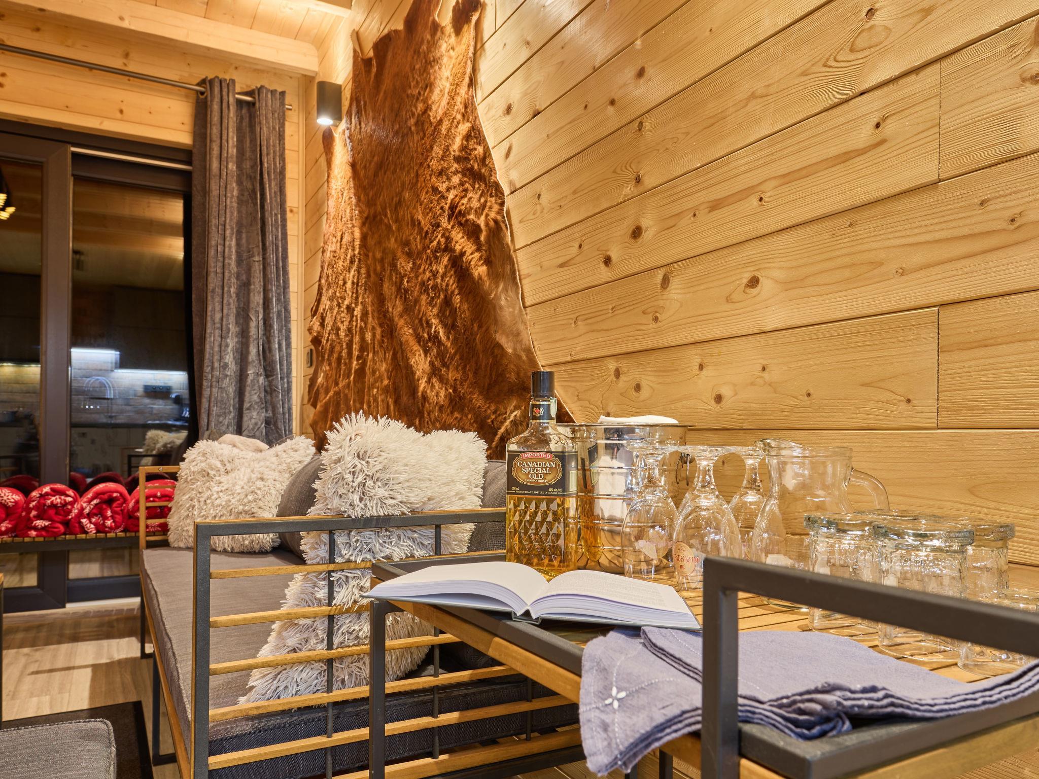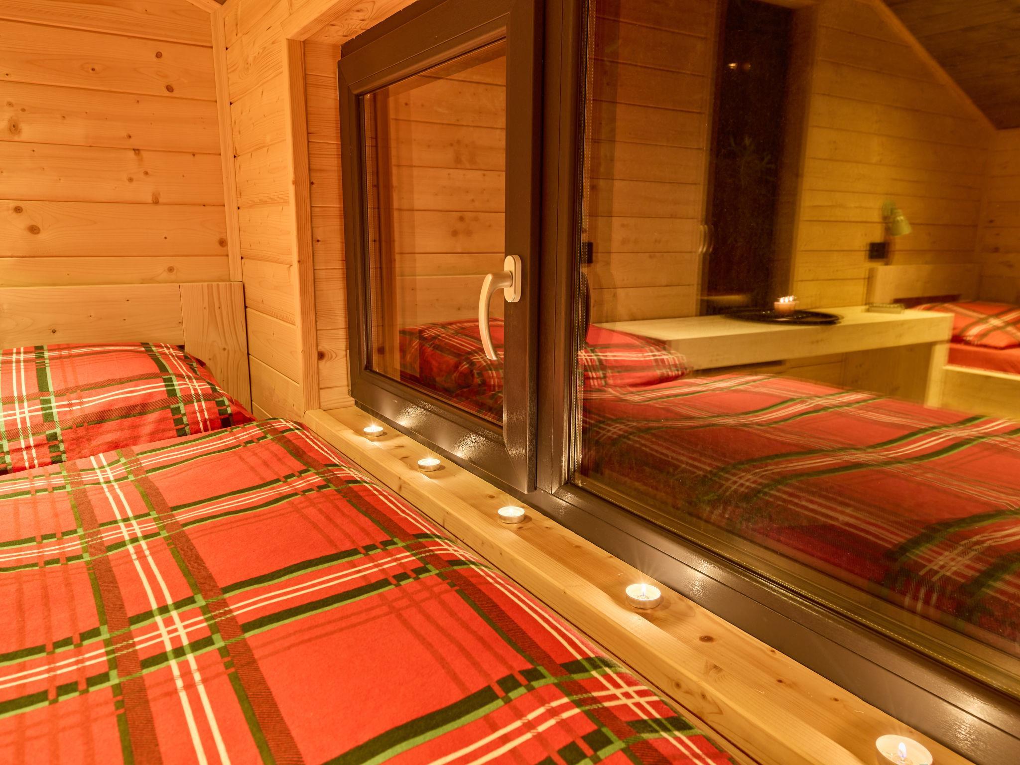 "Luxe Timber Lodge & Pet Retreat", 3-room chalet. Very beautiful and tasteful furnishings: living/dining room with 1 sofabed, Scandinavian wood stove, dining table and TV. Kitchenette (2 hot plates, oven, toaster, kettle, microwave, electric coffee machine, Capsules for coffee machine (Tchibo)). Shower/WC. Electric heating, wood heating, floor heating. Upper floor: 1 room with 1 double bed. 1 room with 2 beds. Exit to the balcony. Balcony. Balcony furniture, barbecue. Facilities: Internet (WiFi, free). Please note: suitable for families. Non-smoking house. 1 small pet/ dog allowed. Built-in bluetooth audio system and central touch control of lighting and temperature conveniently from the living room.