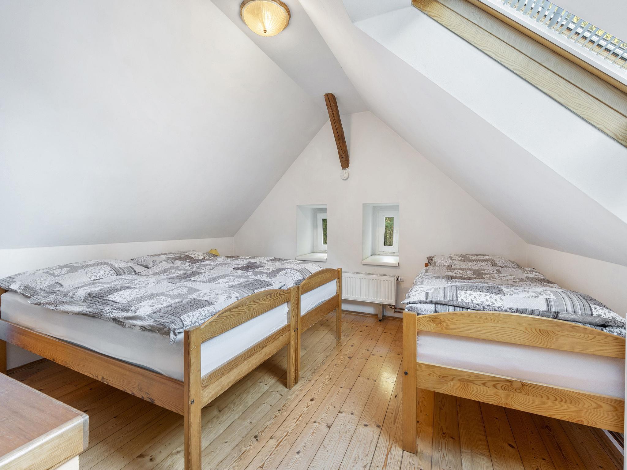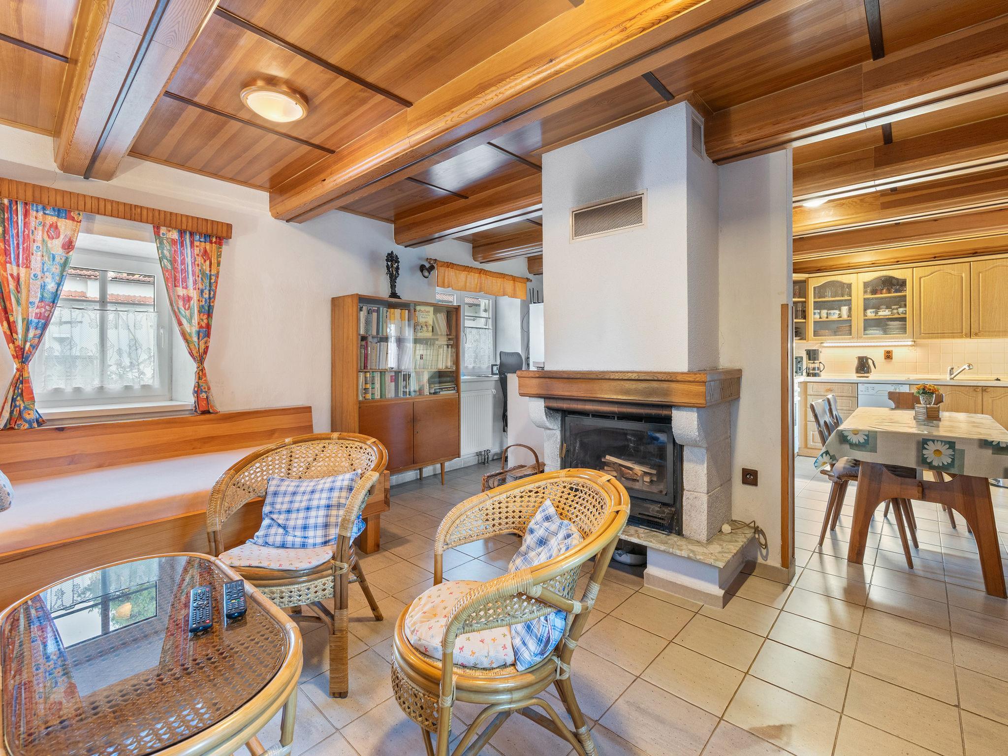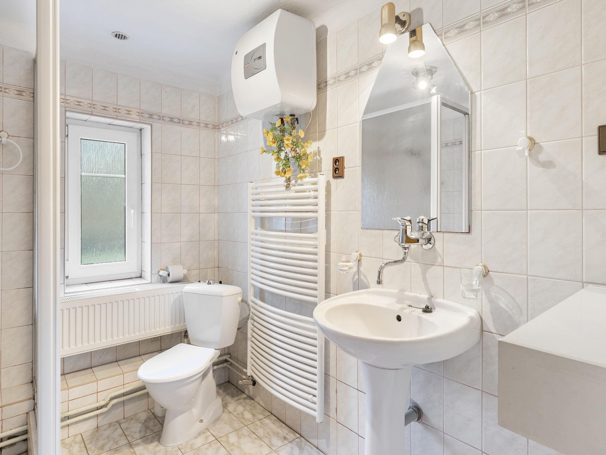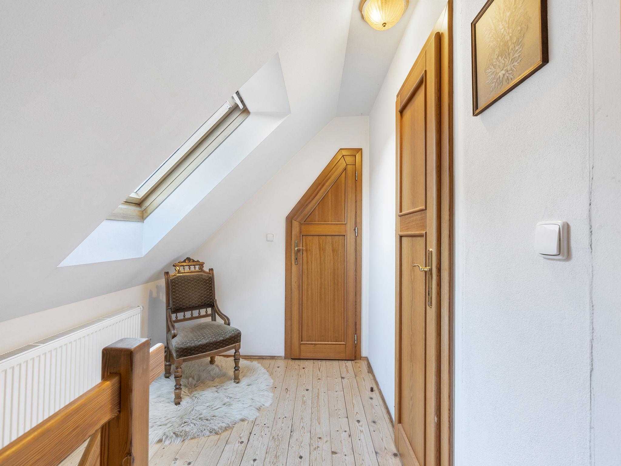 "Polžov", 5-room house 129 m2 on 2 levels. Spacious, cosy furnishings: living room with 1 sofabed, Scandinavian wood stove, satellite TV, radio and CD-player. 1 room with 2 beds. Playroom. Kitchen (4 hot plates, oven, dishwasher, kettle, microwave, electric coffee machine). Shower/WC. Upper floor: 1 room with sloping ceilings with 1 double bed. 1 room with sloping ceilings with 2 beds and 1 double bed. Shower/WC. Electric heating, wood heating. Terrace. Terrace furniture. Facilities: washing machine. Internet (WiFi, free). Suitable for families. Maximum 2 pets/ dogs allowed. Playroom is a house with its own entrance through the yard with the table tennis, table football, seating and toilet.