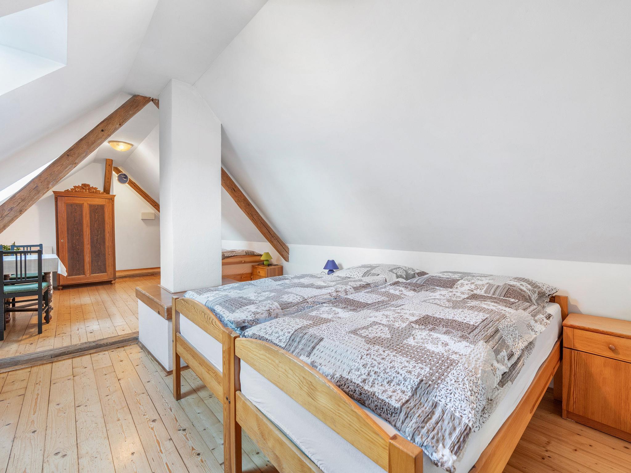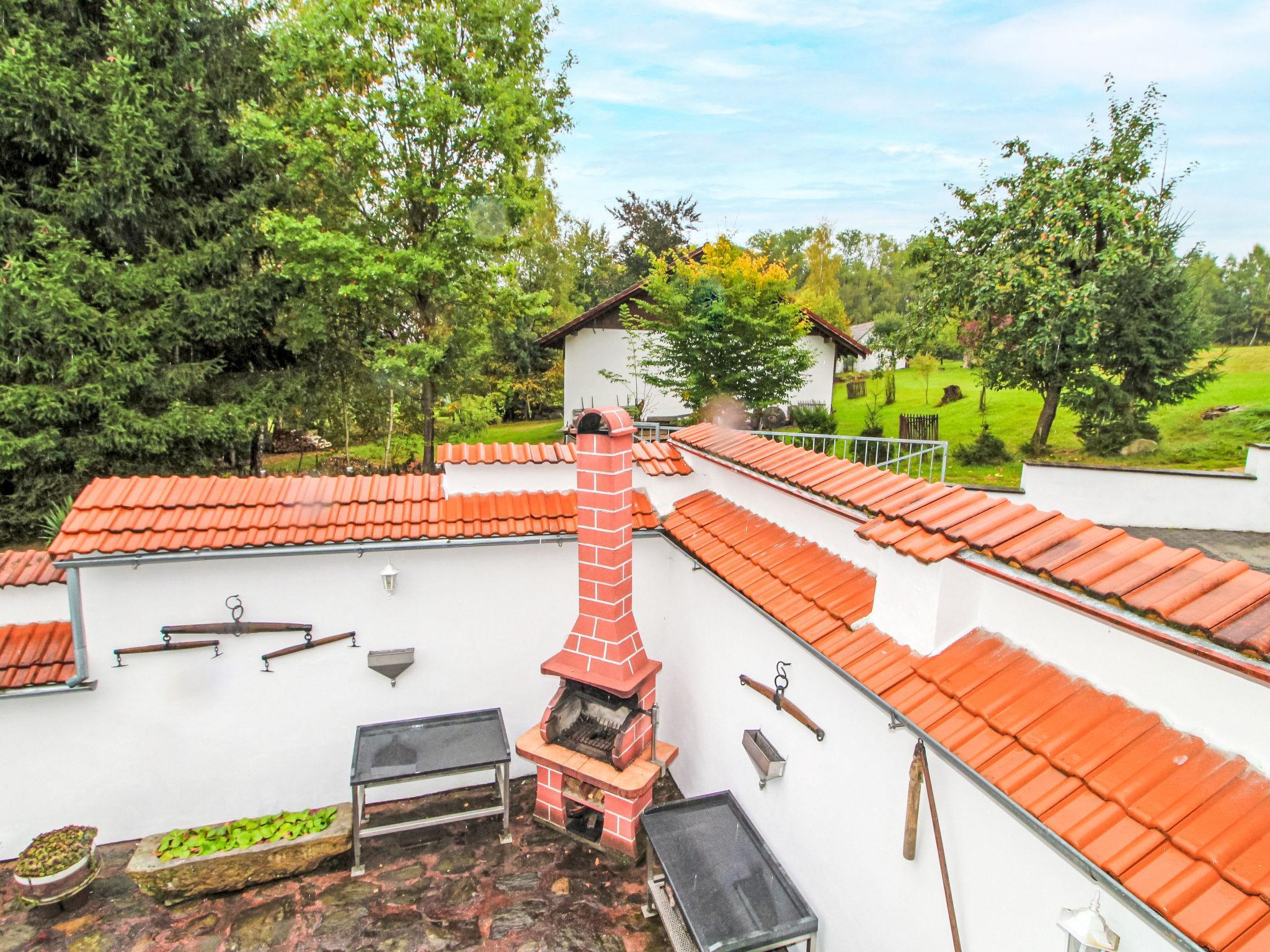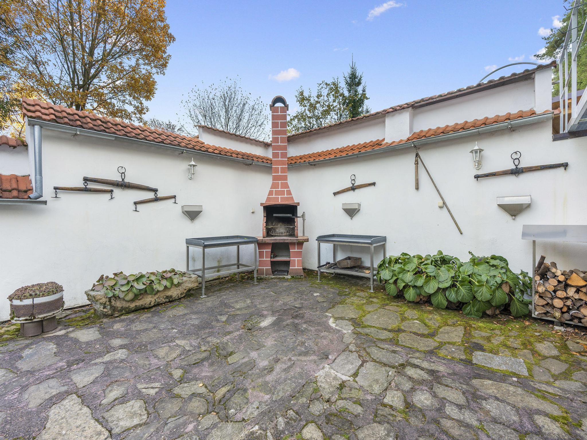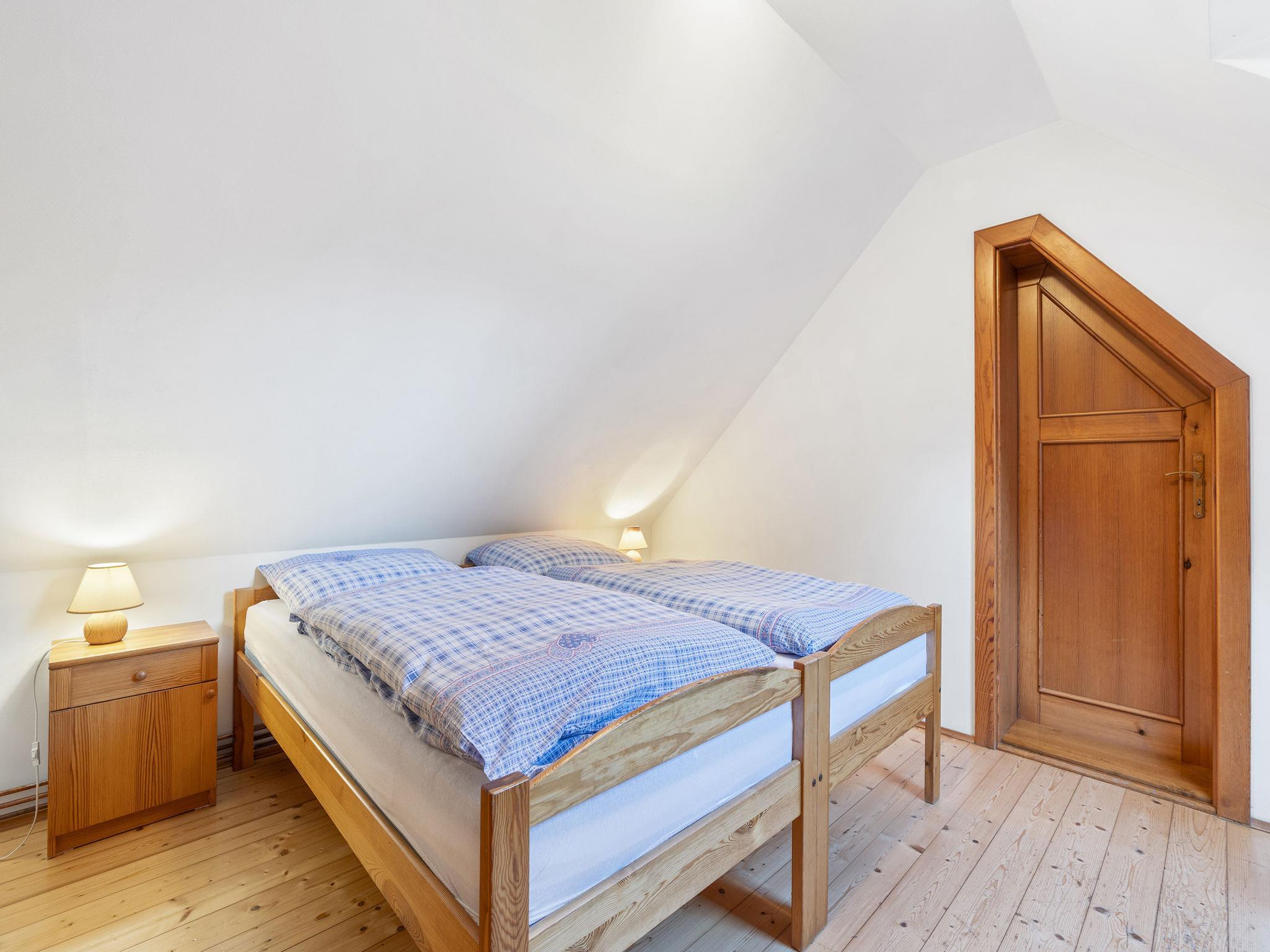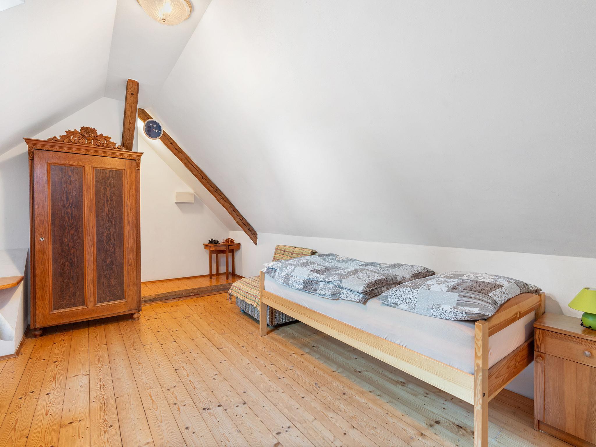 "Polžov", 5-room house 129 m2 on 2 levels. Spacious, cosy furnishings: living room with 1 sofabed, Scandinavian wood stove, satellite TV, radio and CD-player. 1 room with 2 beds. Playroom. Kitchen (4 hot plates, oven, dishwasher, kettle, microwave, electric coffee machine). Shower/WC. Upper floor: 1 room with sloping ceilings with 1 double bed. 1 room with sloping ceilings with 2 beds and 1 double bed. Shower/WC. Electric heating, wood heating. Terrace. Terrace furniture. Facilities: washing machine. Internet (WiFi, free). Suitable for families. Maximum 2 pets/ dogs allowed. Playroom is a house with its own entrance through the yard with the table tennis, table football, seating and toilet.