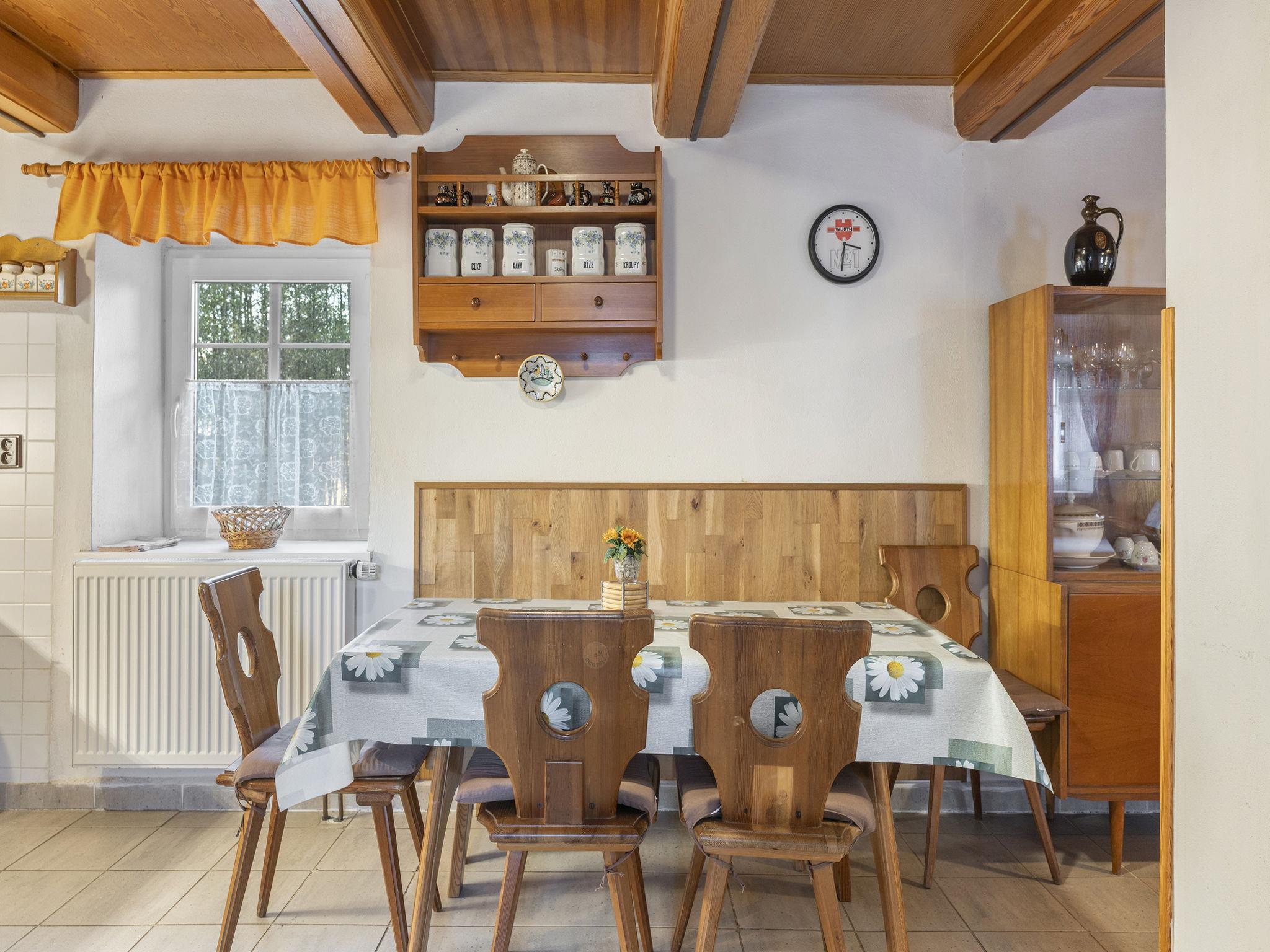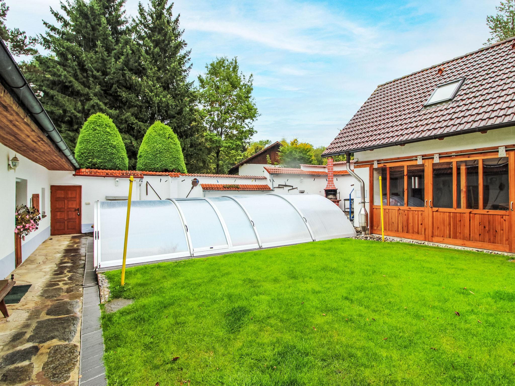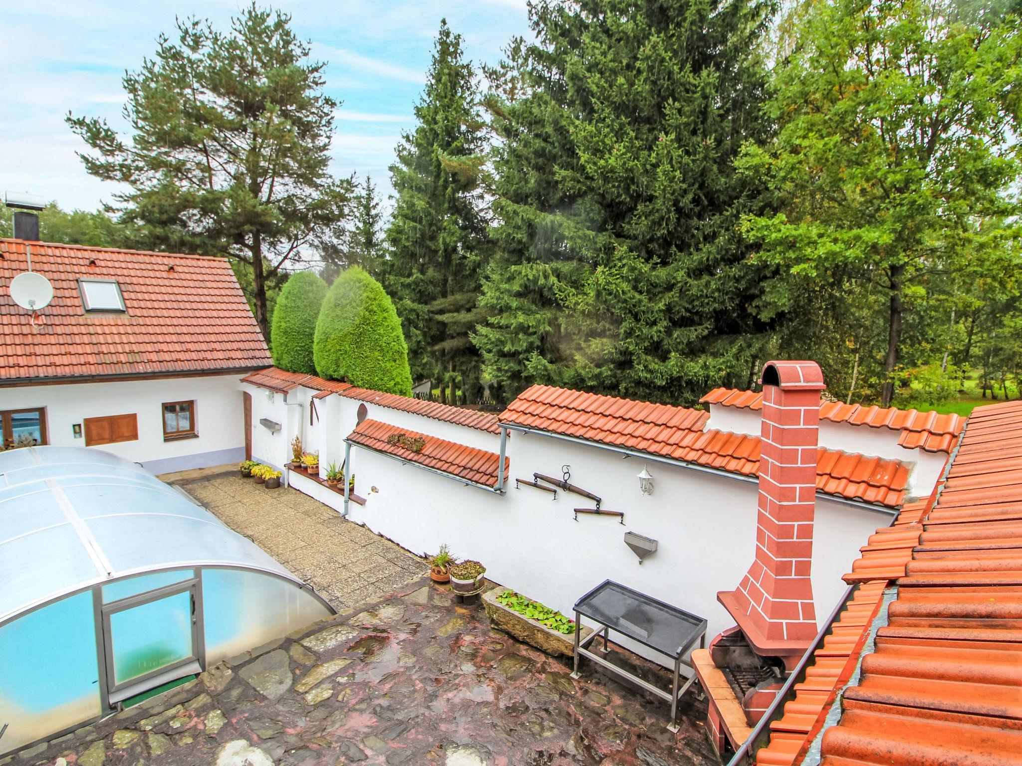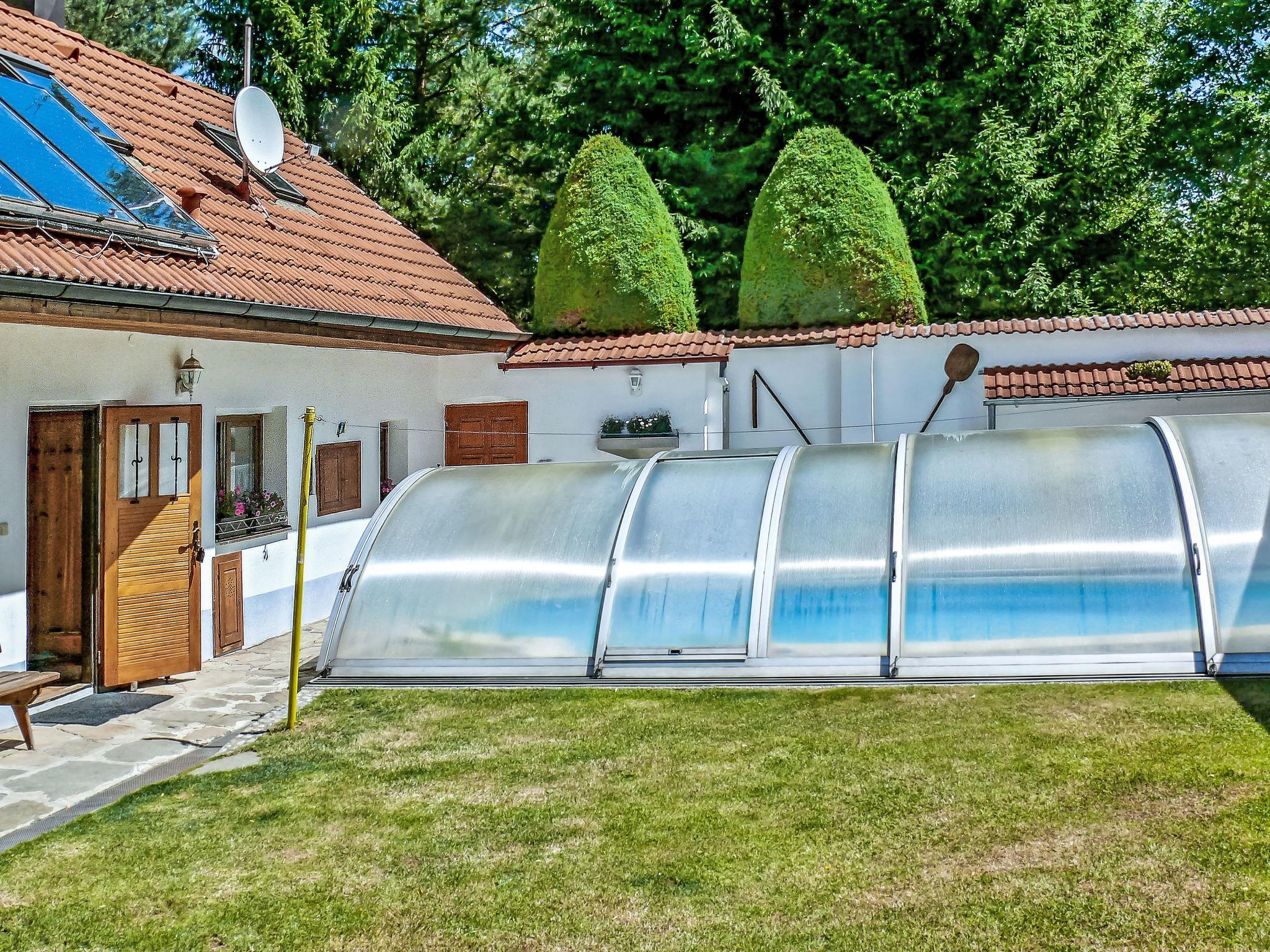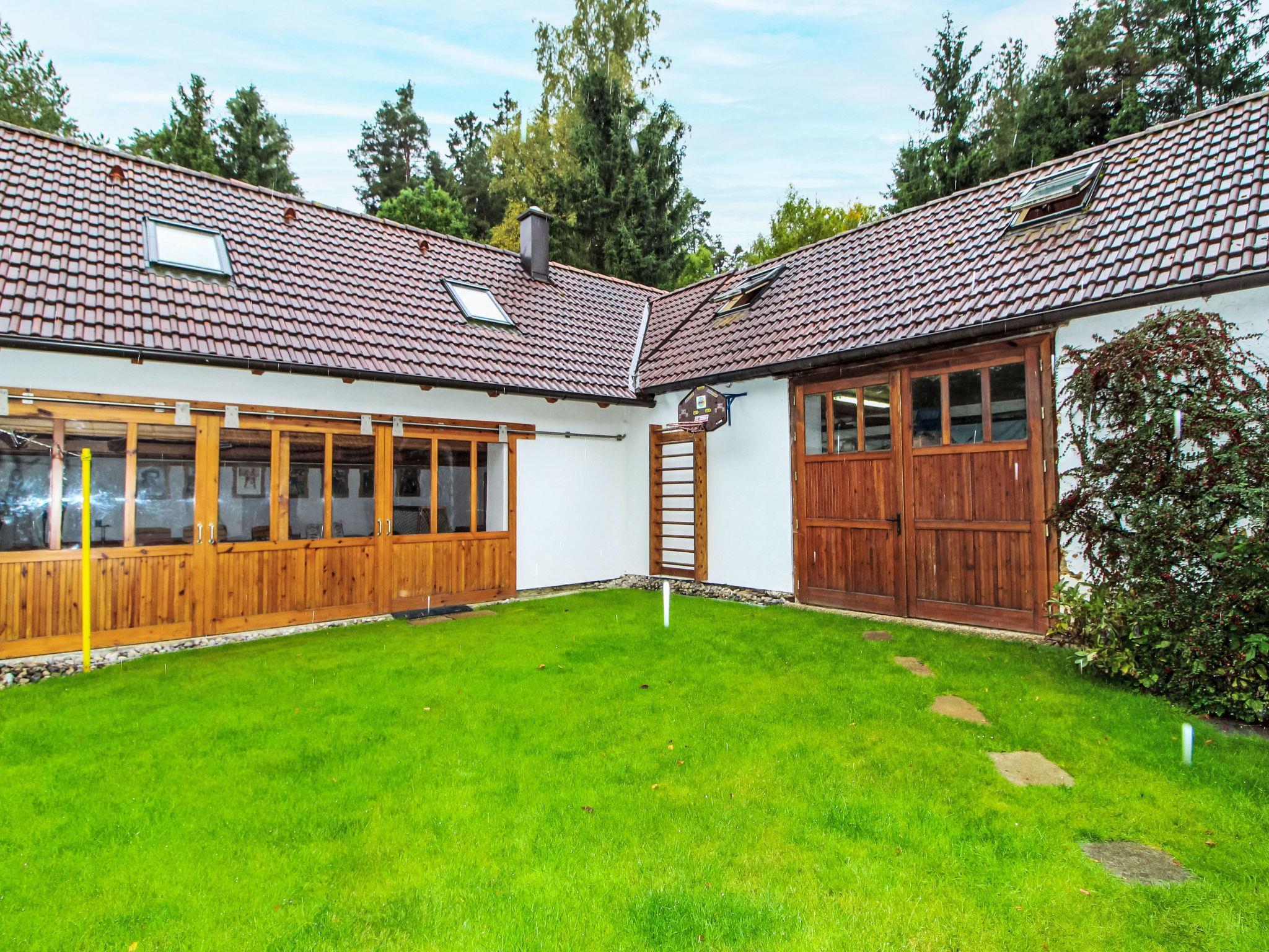 Polžov/Mokrý Lom 10 km from Trhové Sviny: Country house. 5 km from the lake. Private: property 900 m2 (fenced) with lawn 1'000 m2, swimming pool (4 x 7 m, depth 150 cm, seasonal availability: 01.May. - 30.Sep.). Tennis, table tennis, basketball, terrace, garden furniture, barbecue house. In the house: storage room for bicycles, washing machine. Available: bicycles (3). Parking (for 2 cars) on the premises, single garage. Shop 5 km, supermarket 9 km, restaurant 4 km, bus stop "Mokrý Lom" 1.9 km, outdoor swimming pool 20 km, indoor swimming pool 20 km, bathing lake "Rímov" 5 km. Golf course (18 hole) 25 km, walking paths from the house, cycle lane 20 m. Nearby attractions: Zrícenina hradu Porešín, Buškuv hamr 15 km, Ceské Budejovice 20 km, Stredoveká tvrz Žumberk, Ceský Krumlov 22 km, Trebon 34 km, Lipenská prehrada 40 km, Linz (AT) 85 km.