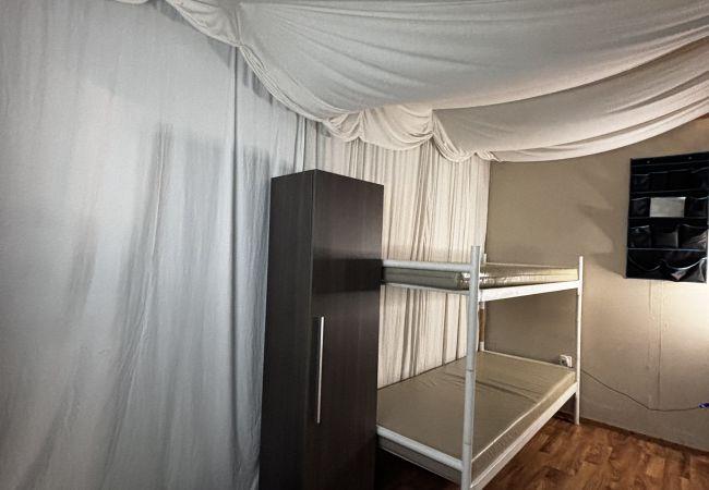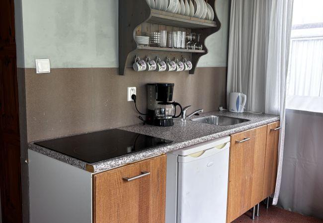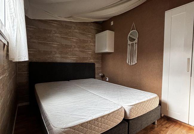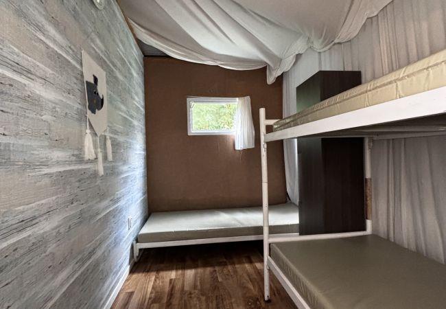 There are two separate bedrooms: One with a comfortable double boxspring bed and one with a bunk bed and a separate single bed - perfect for children or friends