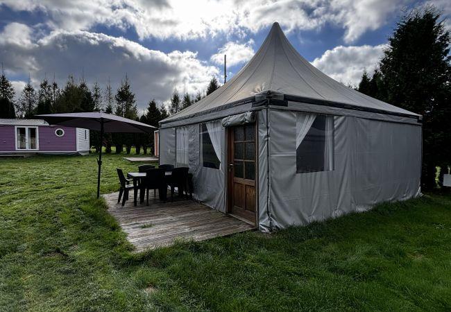 Looking for the ultimate outdoor feeling, but with the comfort of home? Then our Glamour tents are really something for you! With an area of no less than 36 m² and a spacious sunny terrace, you'll fully enjoy peace, space and luxury here.