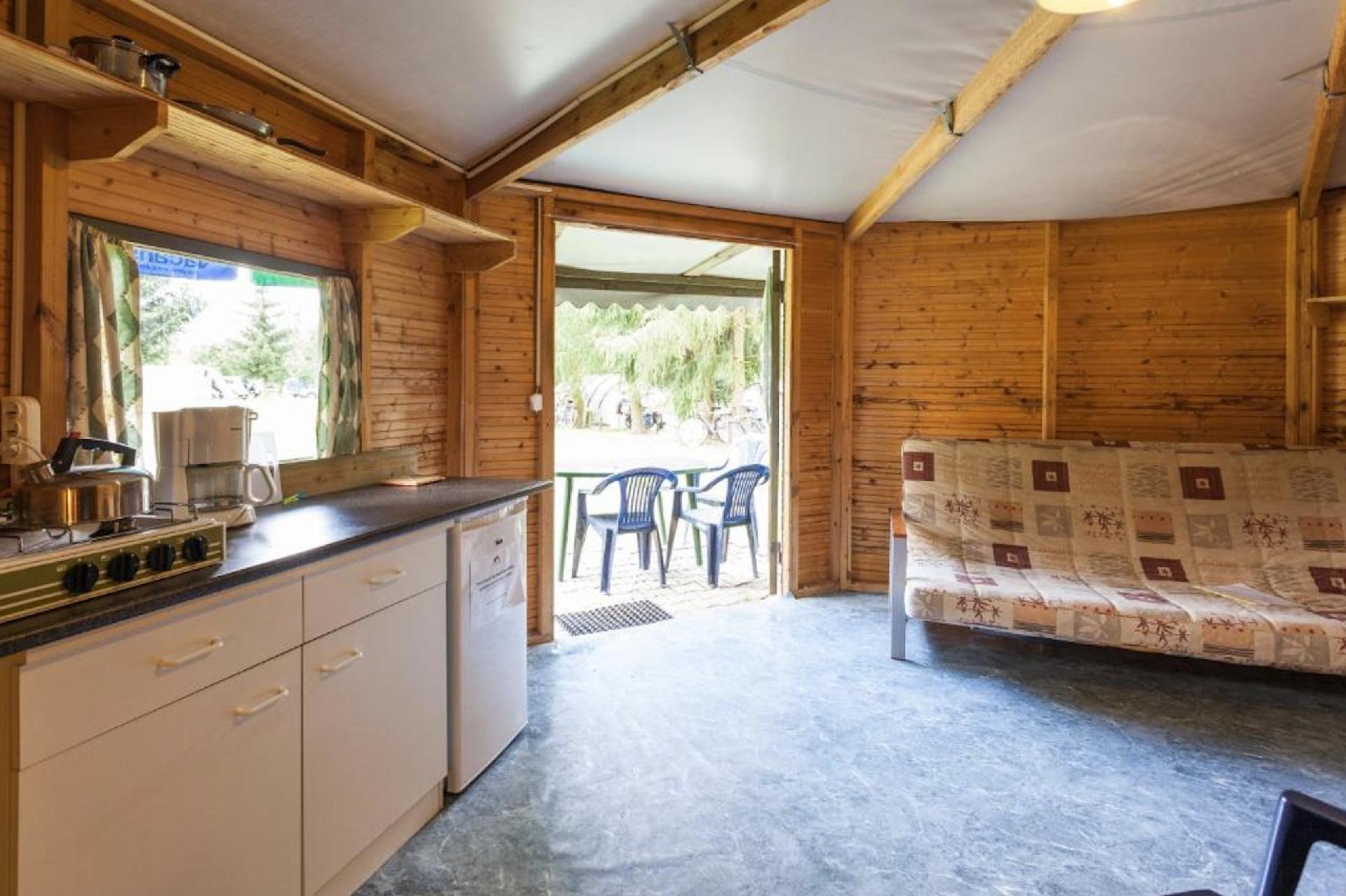 Cosy and complete: stay in a camping cabin in the middle of the green in the Czech Republic.