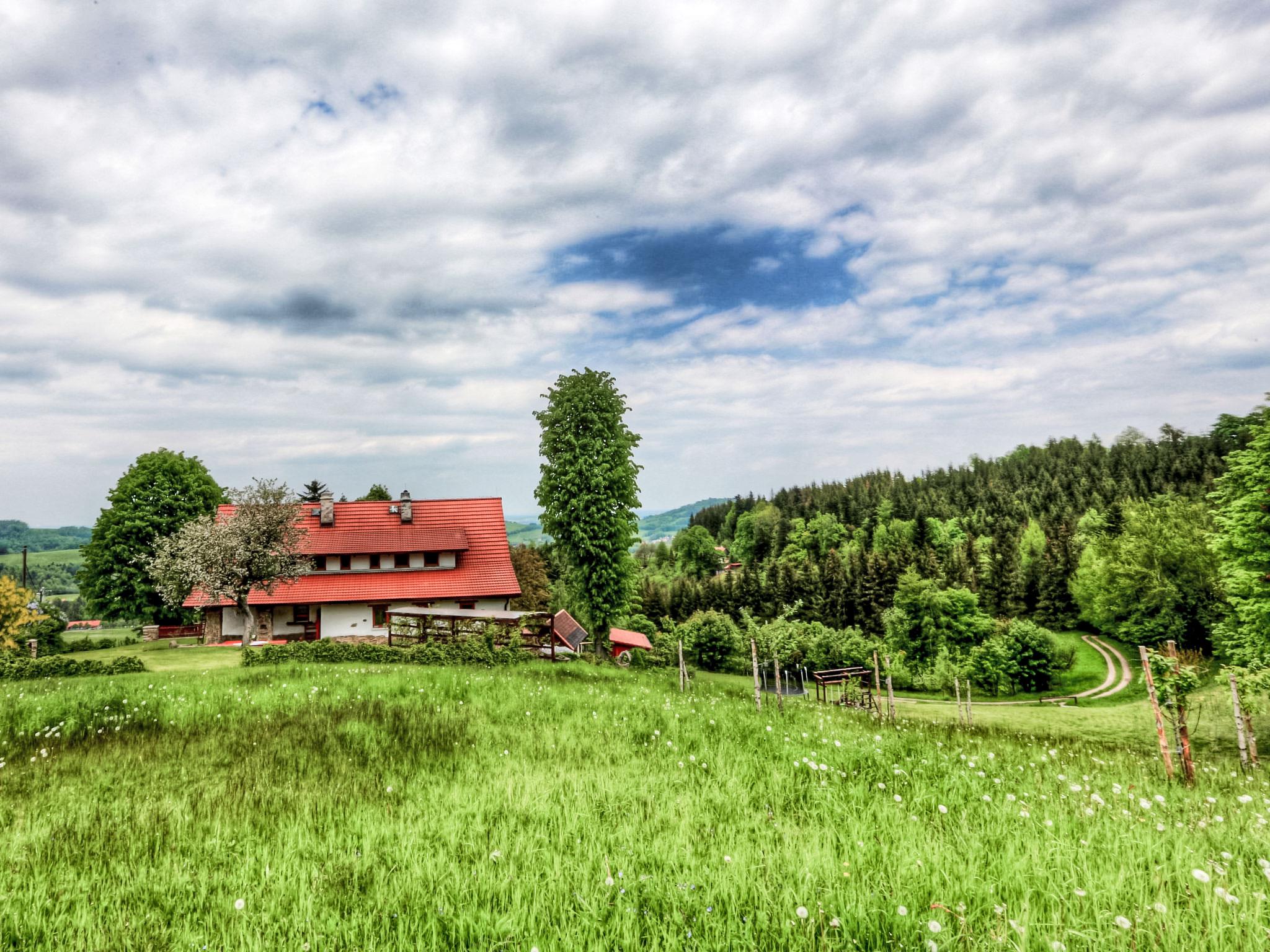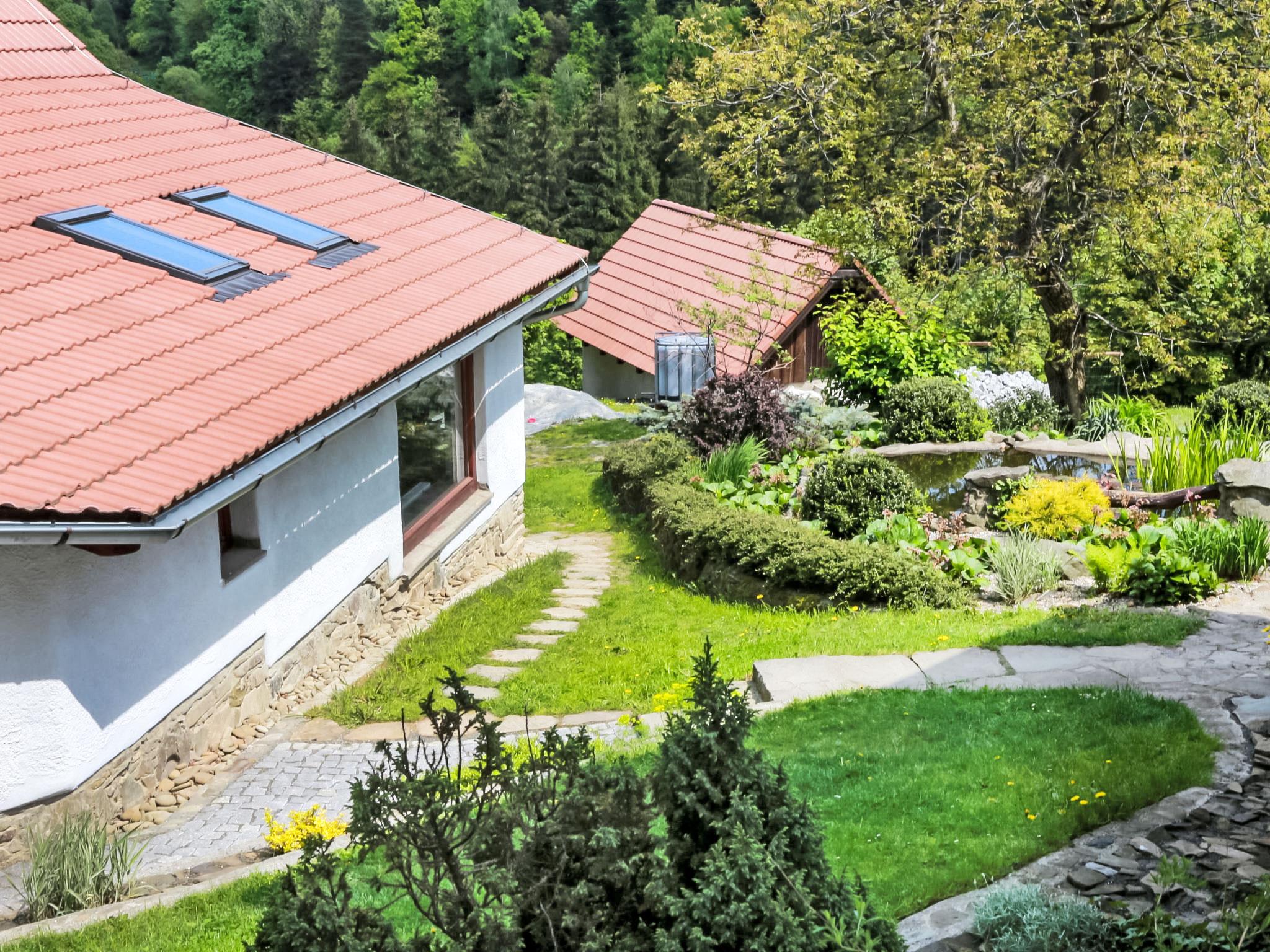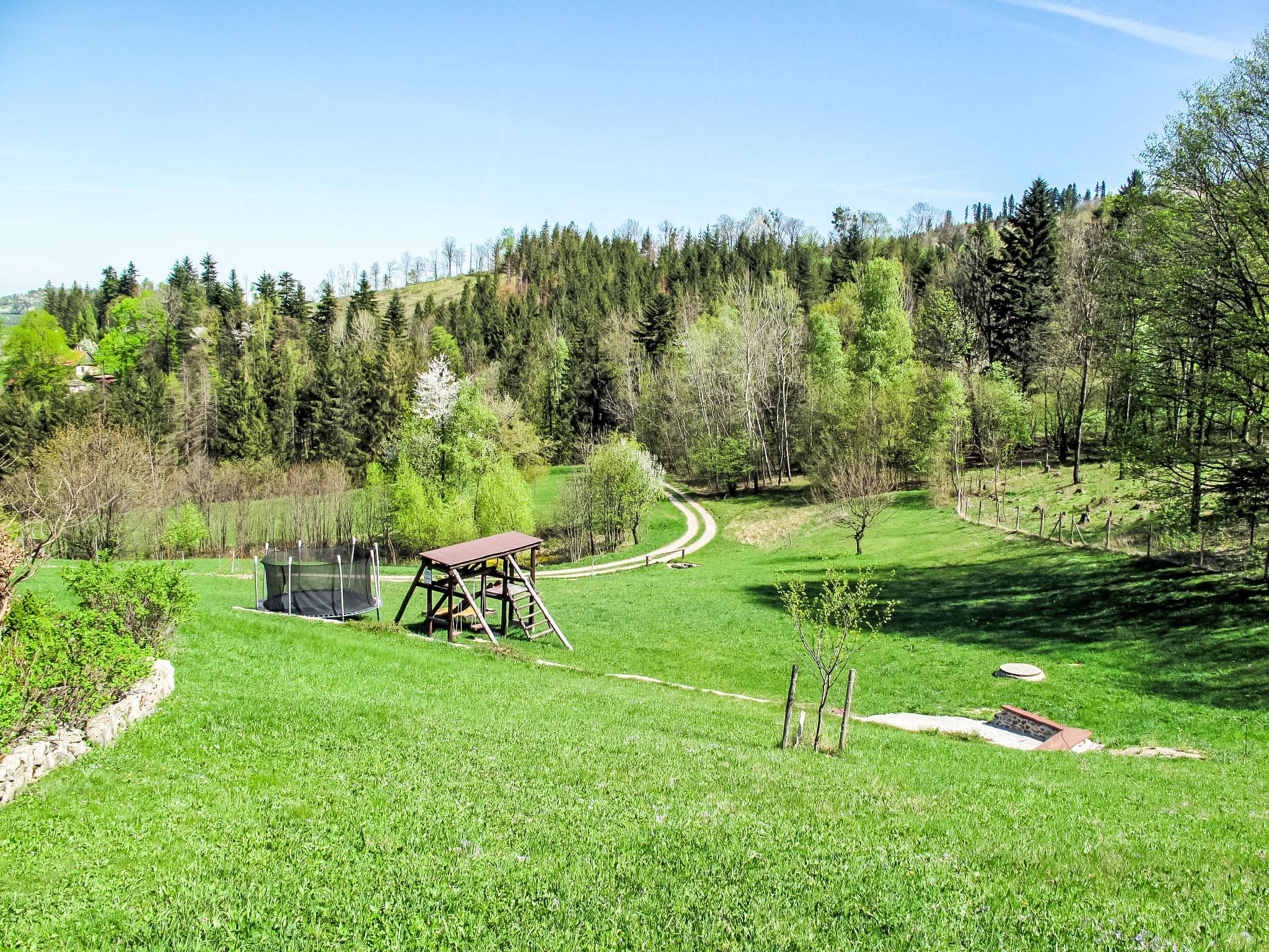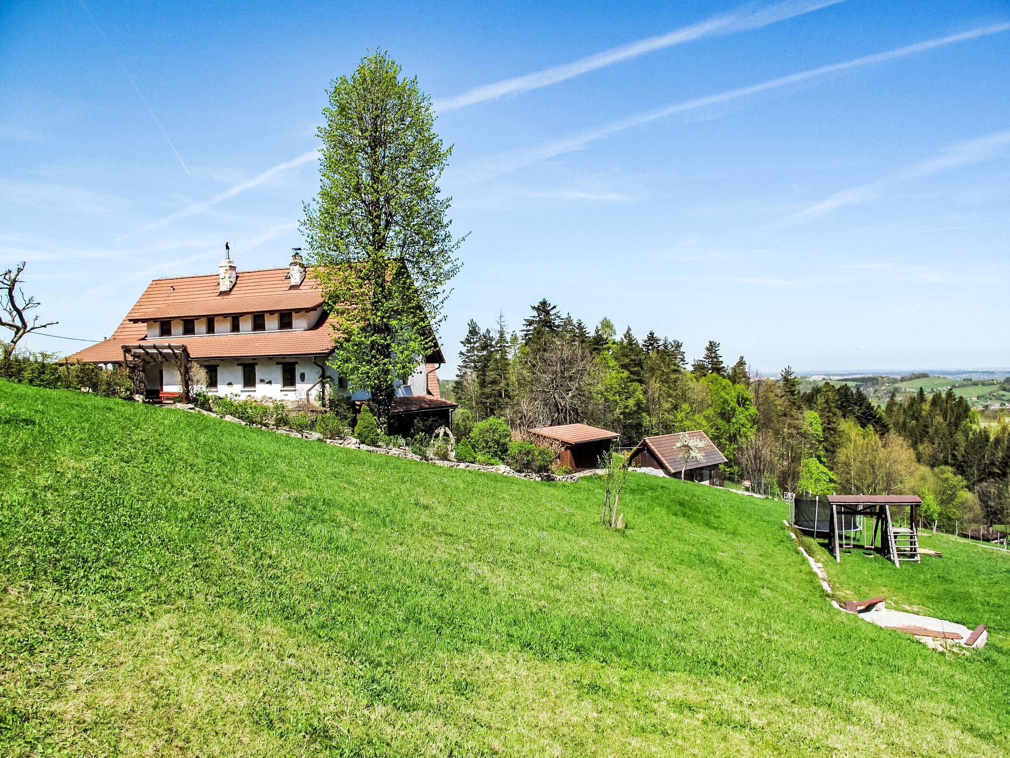 Lhotka 12 km from Ostravice: Large, child friendly, comfortable chalet "Lhotka", built in 1774, renovated in 2015, surrounded by meadows. On the outskirts, in a quiet, sunny position on a slope, 200 m from the edge of the forest. Private: natural state property 12 ha, garden 600 m2, meadow. Terrace, garden furniture, barbecue, children's playground (slide, swing, sandbox). In the house: storage room for bicycles, storage room for skis, central heating system. Steep motor access (via unmade road). In Winter: please take snow chains. Parking (for 4 cars) at the house. Grocery 1.5 km, supermarket 6 km, restaurant 1.6 km, bus stop 1 km, railway station 6 km, outdoor swimming pool 6 km, indoor swimming pool 1.6 km. Golf course (18 hole) 12 km, tennis 6 km, riding stable 4 km, ski lift 5 km, ski school 9 km, cross country ski track 3 km. Nearby attractions: Tatra Koprivnice Museum 16 km, Skanzen Rožnov pod Radhoštem 24 km. Please note: car recommended. Suitable for families.