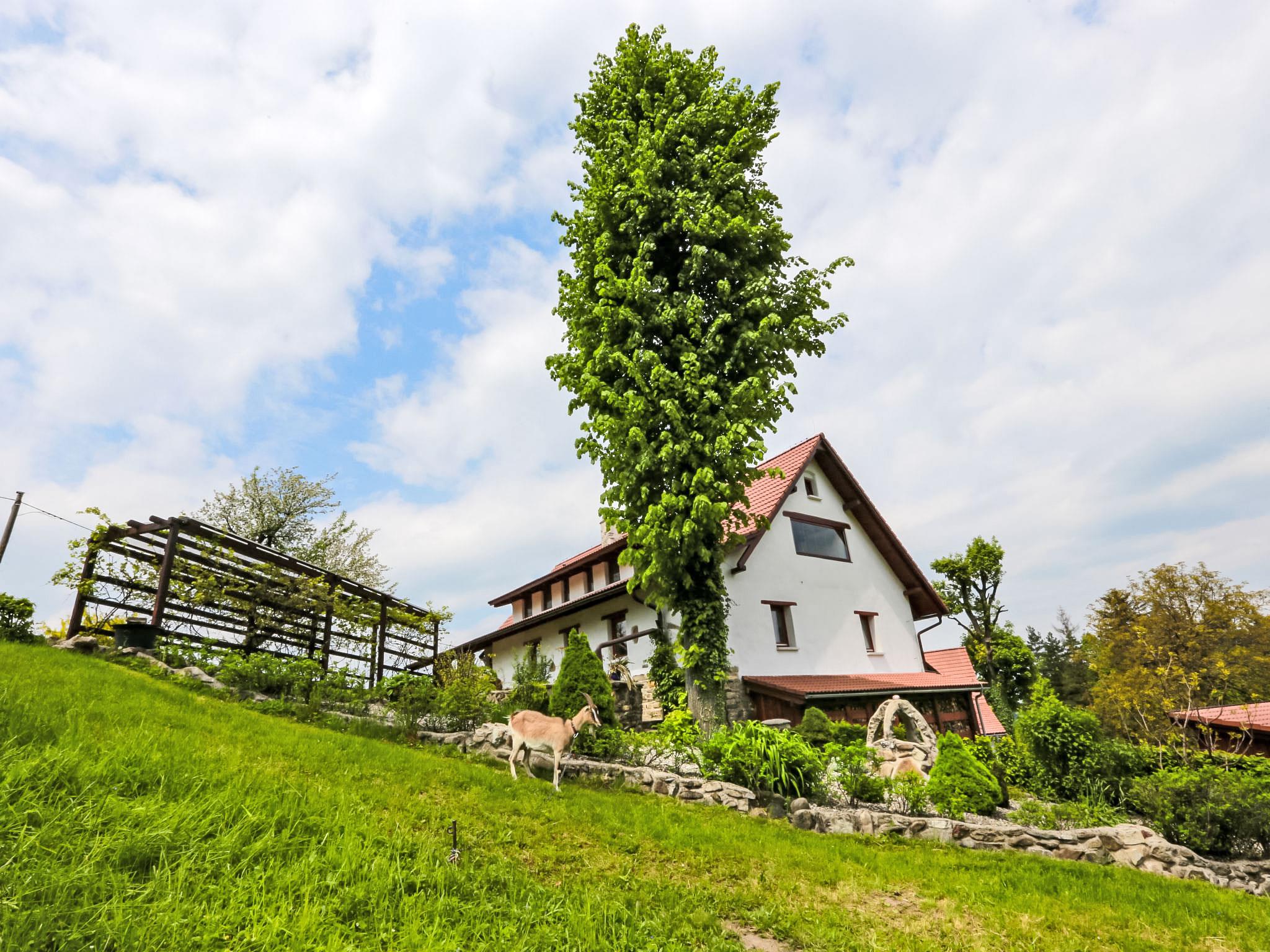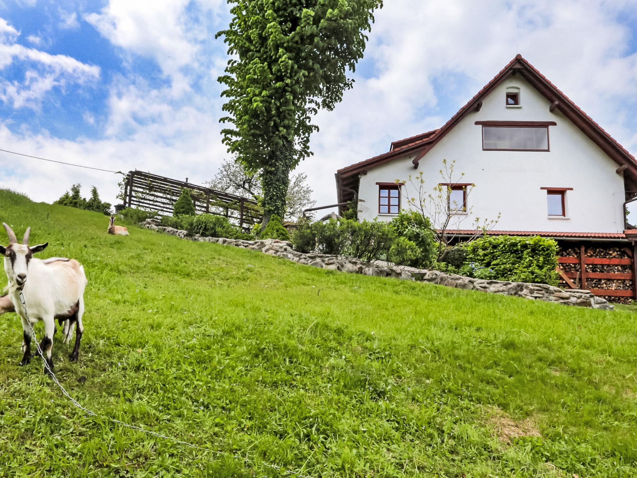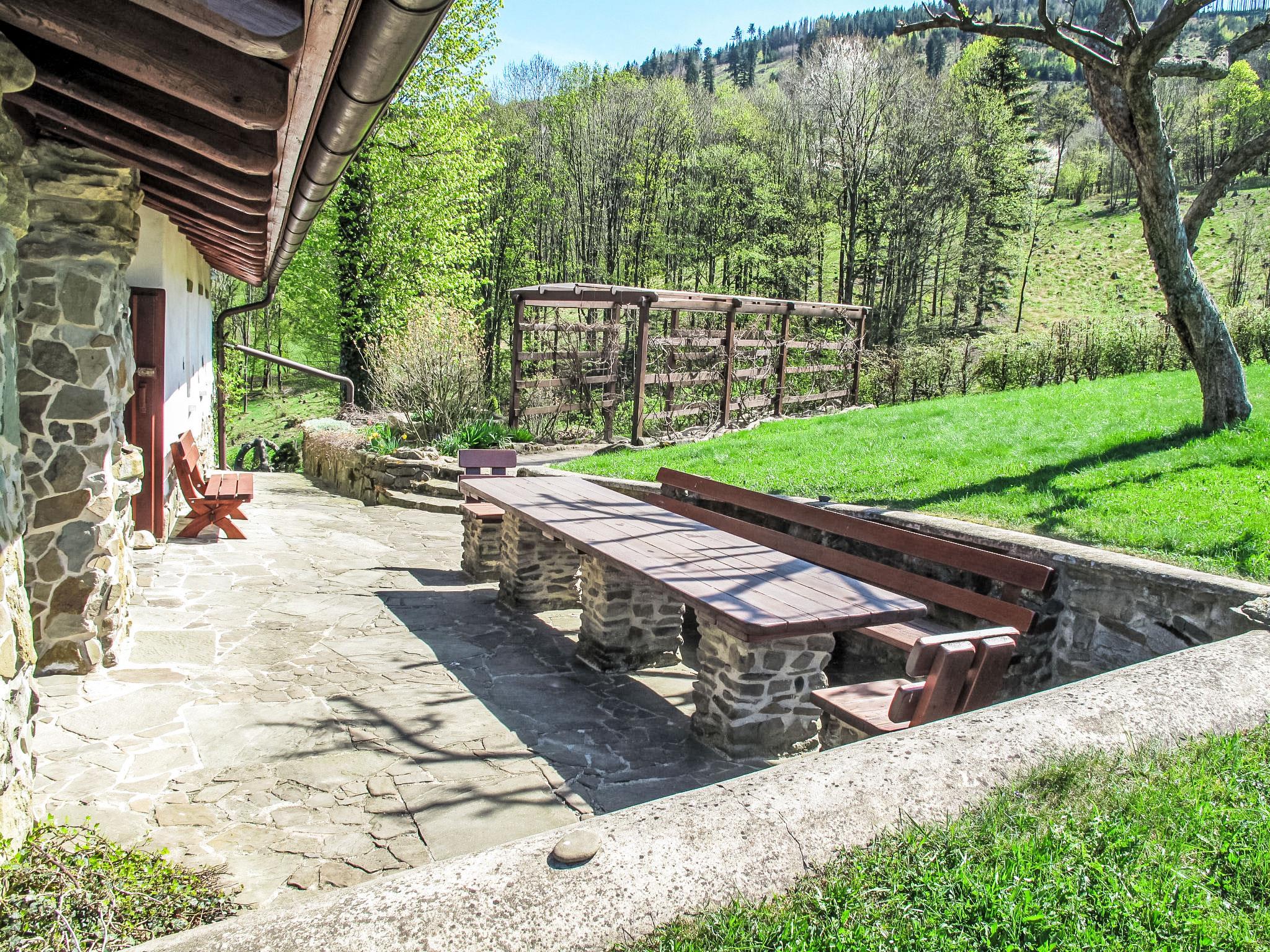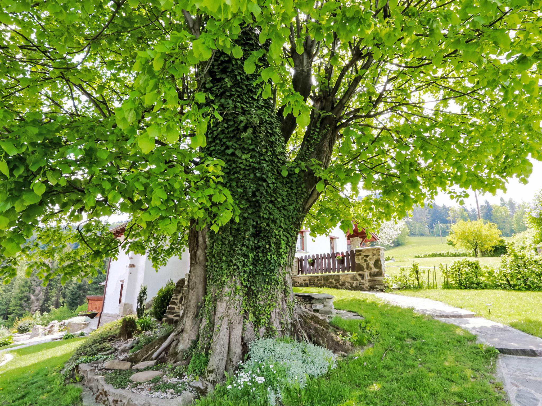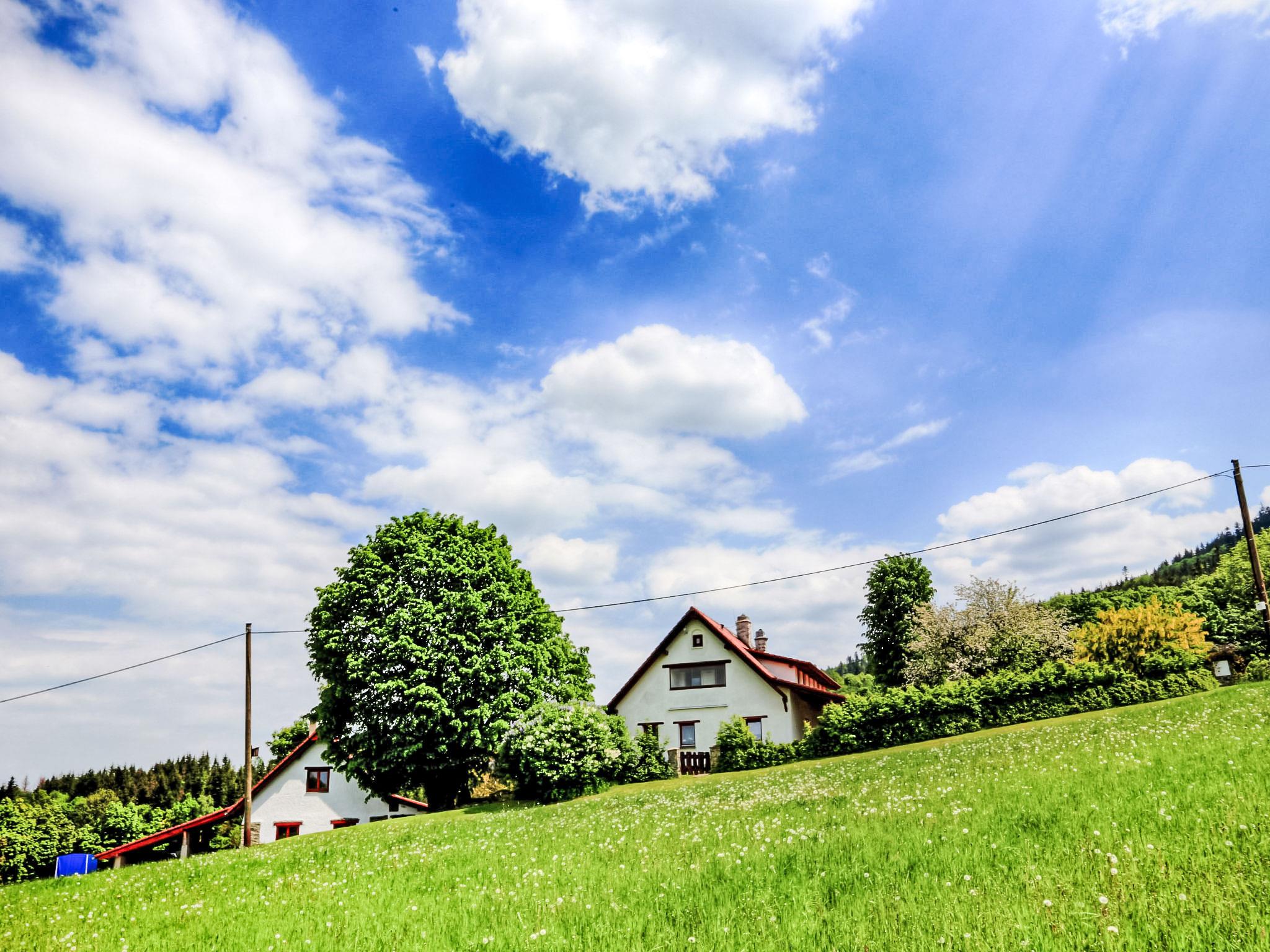 Lhotka 12 km from Ostravice: Large, child friendly, comfortable chalet "Lhotka", built in 1774, renovated in 2015, surrounded by meadows. On the outskirts, in a quiet, sunny position on a slope, 200 m from the edge of the forest. Private: natural state property 12 ha, garden 600 m2, meadow. Terrace, garden furniture, barbecue, children's playground (slide, swing, sandbox). In the house: storage room for bicycles, storage room for skis, central heating system. Steep motor access (via unmade road). In Winter: please take snow chains. Parking (for 4 cars) at the house. Grocery 1.5 km, supermarket 6 km, restaurant 1.6 km, bus stop 1 km, railway station 6 km, outdoor swimming pool 6 km, indoor swimming pool 1.6 km. Golf course (18 hole) 12 km, tennis 6 km, riding stable 4 km, ski lift 5 km, ski school 9 km, cross country ski track 3 km. Nearby attractions: Tatra Koprivnice Museum 16 km, Skanzen Rožnov pod Radhoštem 24 km. Please note: car recommended. Suitable for families.