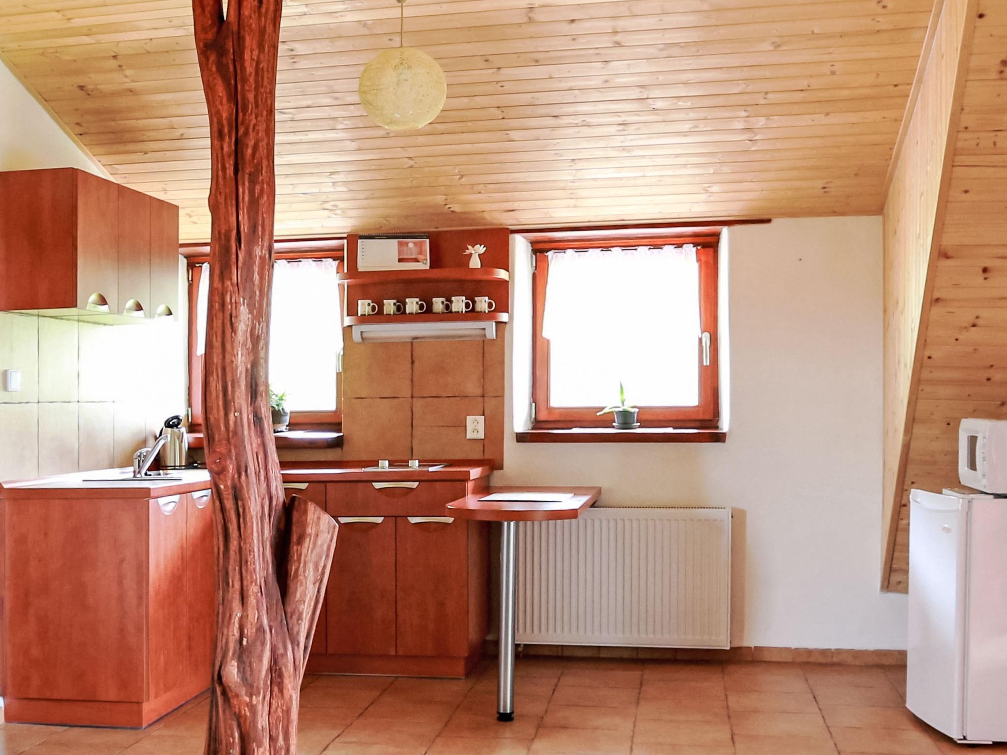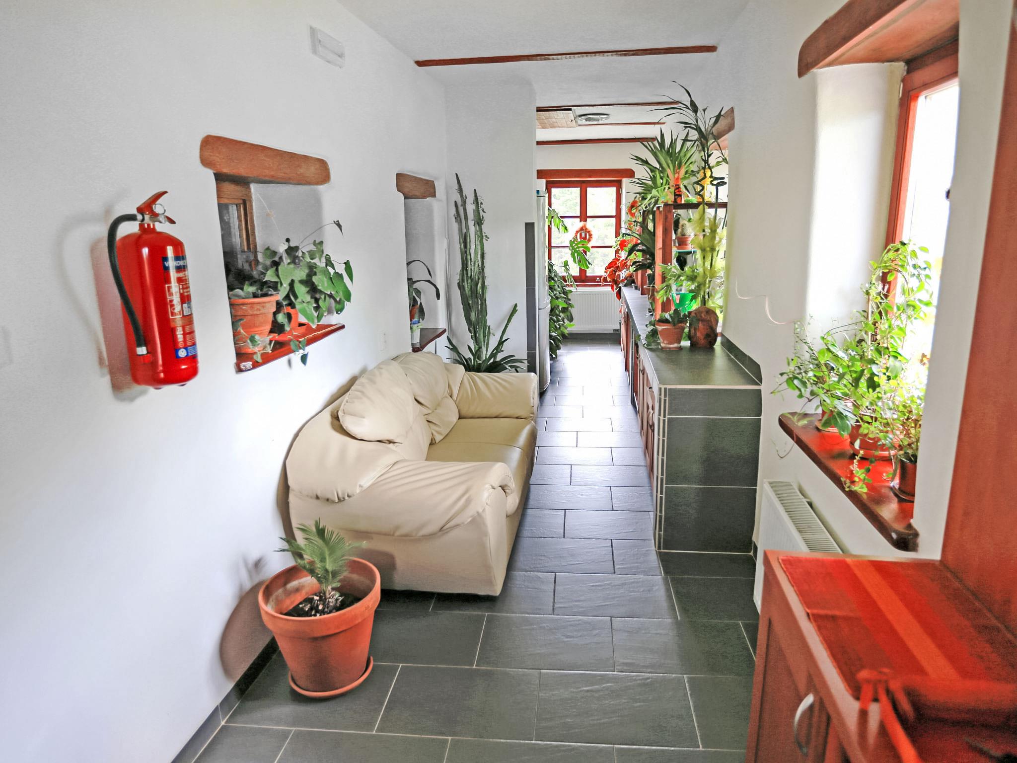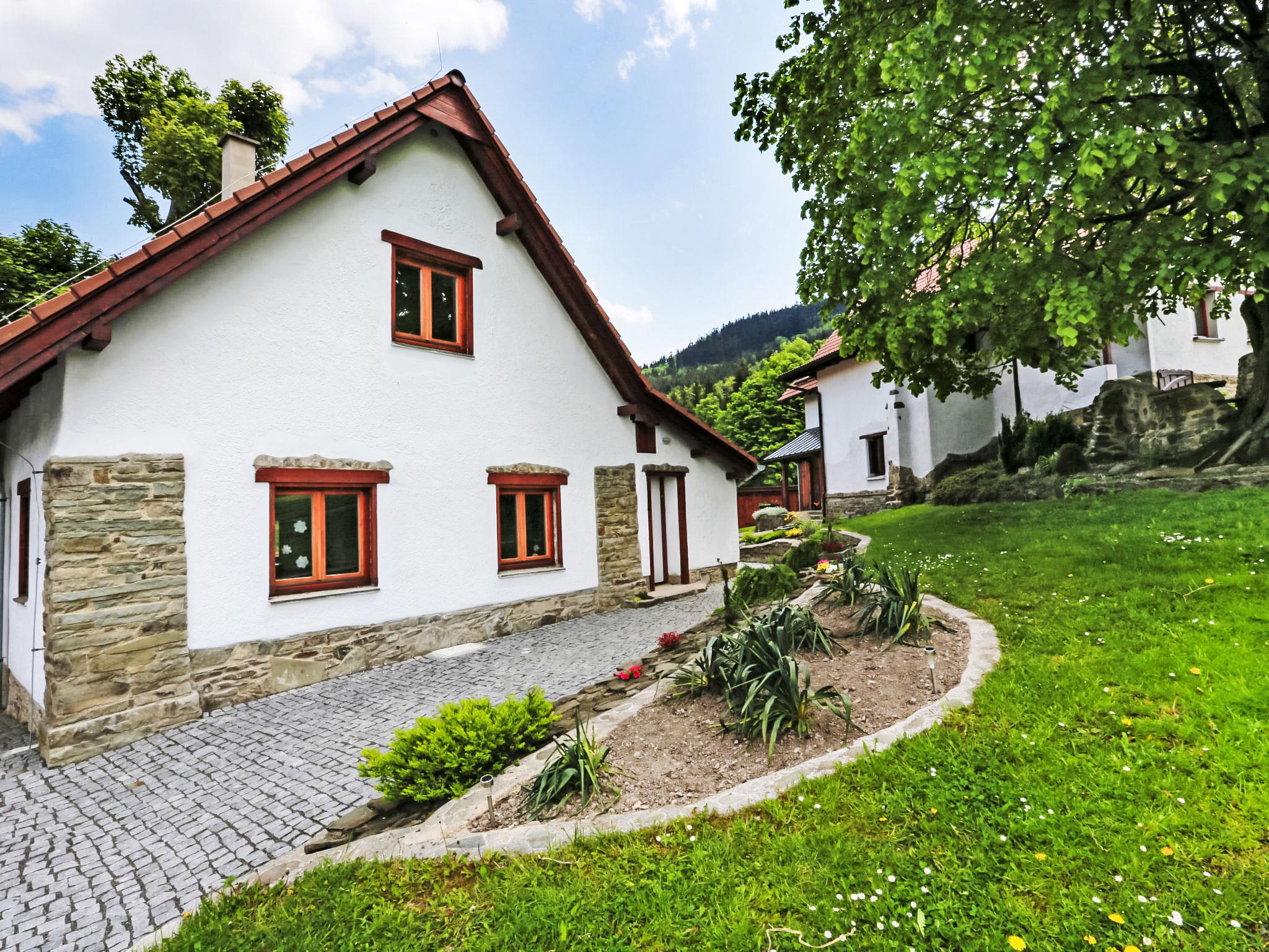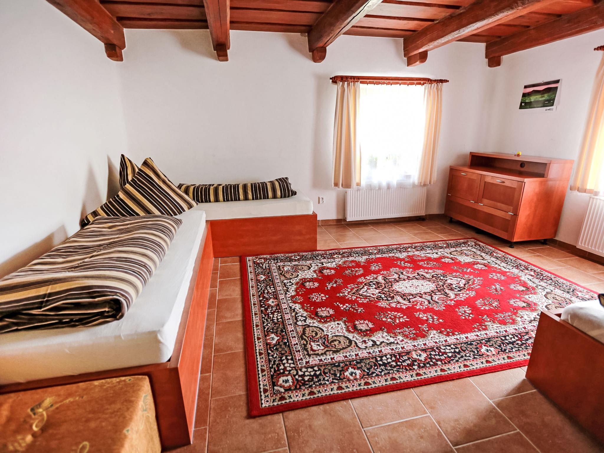 Lhotka 12 km from Ostravice: Large, child friendly, comfortable chalet "Lhotka", built in 1774, renovated in 2015, surrounded by meadows. On the outskirts, in a quiet, sunny position on a slope, 200 m from the edge of the forest. Private: natural state property 12 ha, garden 600 m2, meadow. Terrace, garden furniture, barbecue, children's playground (slide, swing, sandbox). In the house: storage room for bicycles, storage room for skis, central heating system. Steep motor access (via unmade road). In Winter: please take snow chains. Parking (for 4 cars) at the house. Grocery 1.5 km, supermarket 6 km, restaurant 1.6 km, bus stop 1 km, railway station 6 km, outdoor swimming pool 6 km, indoor swimming pool 1.6 km. Golf course (18 hole) 12 km, tennis 6 km, riding stable 4 km, ski lift 5 km, ski school 9 km, cross country ski track 3 km. Nearby attractions: Tatra Koprivnice Museum 16 km, Skanzen Rožnov pod Radhoštem 24 km. Please note: car recommended. Suitable for families.