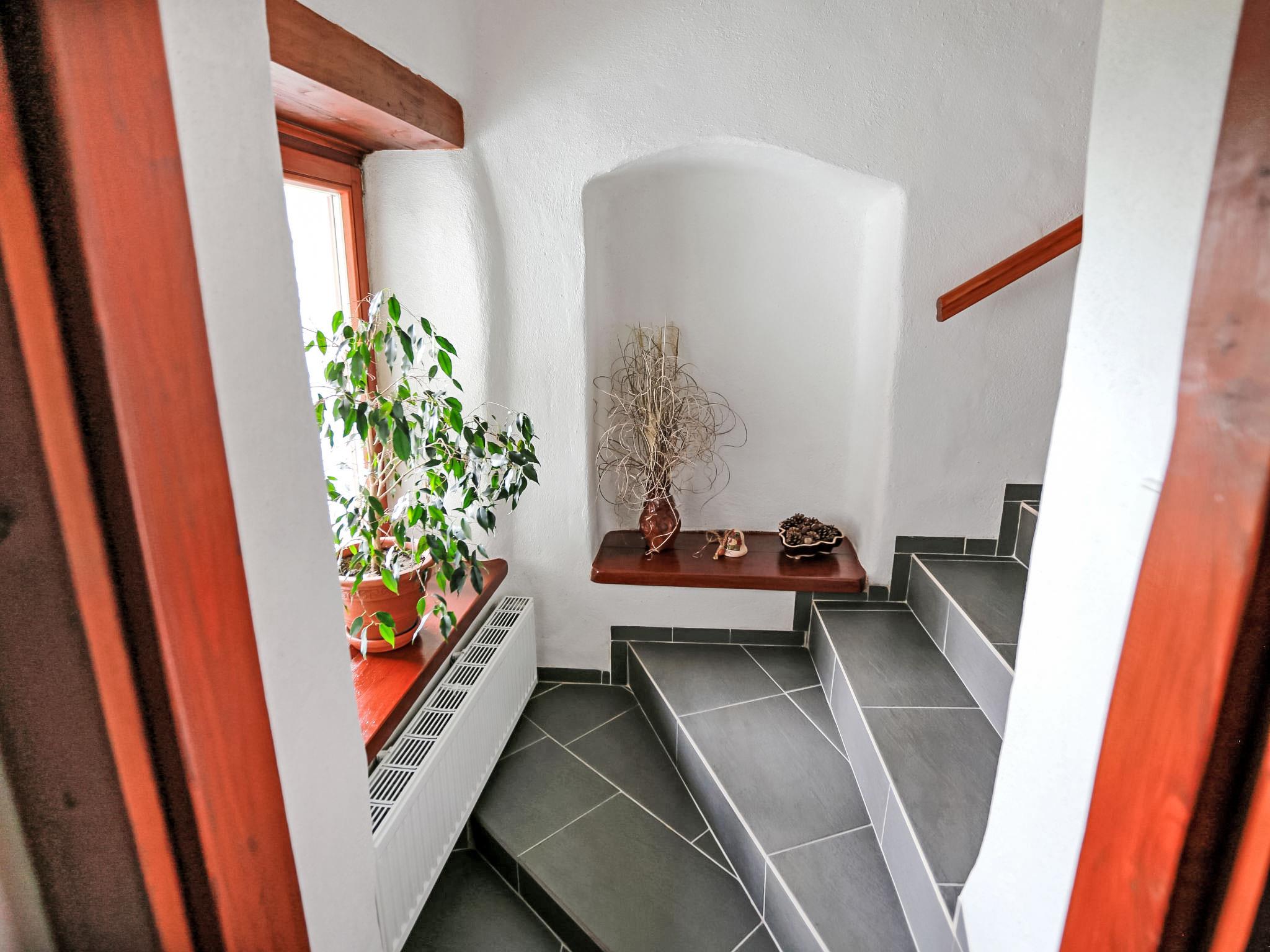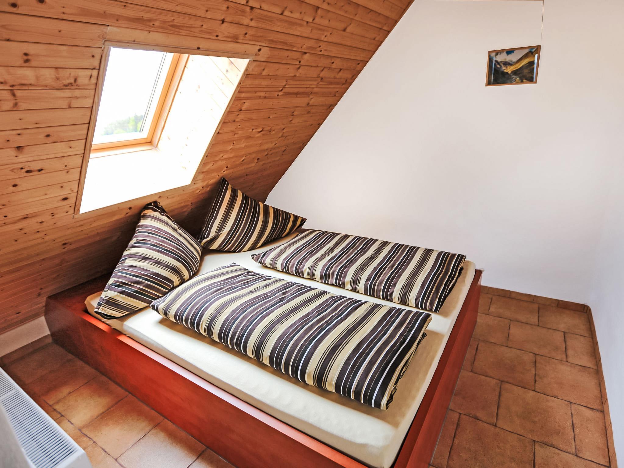 5-room chalet 290 m2 on 2 levels. Spacious and bright, partly with sloping ceilings, very comfortable furnishings: entrance hall. Interconnecting room. Large living/dining room 25 m2 with dining table and TV (flat screen), radio, CD-player and tiled stove. Exit to the garden, to the terrace, to the veranda. 1 room 20 m2 with 2 beds and 1 double bed. Kitchen 15 m2 (oven, 4 ceramic glass hob hotplates, freezer) with tiled stove. Bath/WC. Upper floor: interconnecting room. Living/sleeping room with sloping ceilings with 2 double beds (1 x 150 cm), dining table, kitchen corner and shower/WC. Exit to the balcony. Large walk-through room with sloping ceilings with 1 double bed (1 x 150 cm), dining table, kitchen corner and shower/WC. Exit to the balcony. 1 small room with sloping ceilings with 1 double bed. Kitchenette (2 ceramic glass hob hotplates, microwave). Beautiful view of the countryside. Facilities: Internet (WiFi, free). Please note: suitable for families. Non-smoking house.
