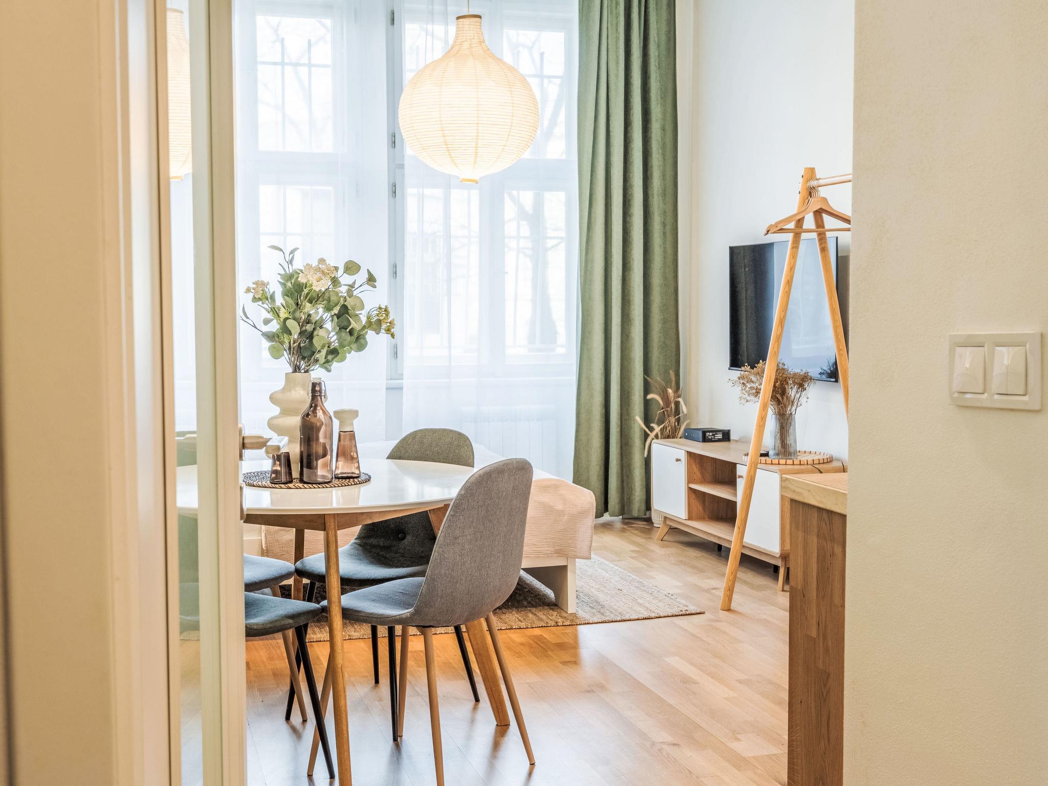 Very beautiful, historical residence "Celakovsky", 6 storeys. In the centre of Praha, in a central, busy position, 1.8 km from the river. In the house: lift, central heating system. Linen change (suppl. charge extra). Towel change (suppl. charge extra). Room cleaning on request (extra). Public parking extra. Shop, grocery, supermarket, shopping centre, restaurant, bar, café, pedestrian zone 200 m, tram "Muzeum" 300 m, bus stop "Praha, ÚAN Florenc" 1.7 km, railway station "Praha, hlavní nádraží" 350 m, underground station "Muzeum" 150 m, park "Riegerovy sady" 700 m, indoor swimming pool 1 km. Tennis 2.4 km, indoor tennis centre 2.4 km, minigolf 1 km, sports centre 1.5 km, children's playground 600 m. Nearby attractions: Václavské námestí 200 m, Karluv most 2 km, Staromestské námestí, Orloj 1500 km, Pražský hrad, Petrínská rozhledna 3 km, Zoo 7 km, Vyšehrad 3 m, Karlštejn 30 km, Krivoklát 50 km. Well-known lakes can easily be reached: vodní nádrž Džbán 10 km, Hostivarská prehrada 13 km, Velká Amerika 33 km. Hiking paths: Stromovka 4 km, Prokopské údolí 9 km, Divoká Šárka 11 km.