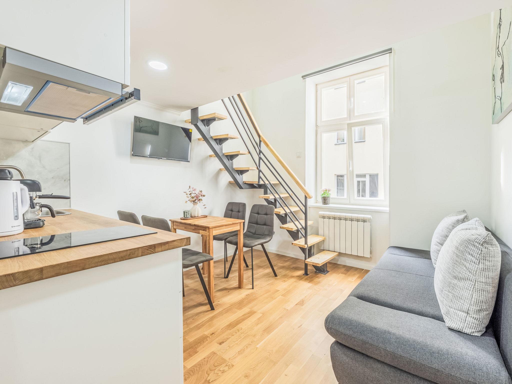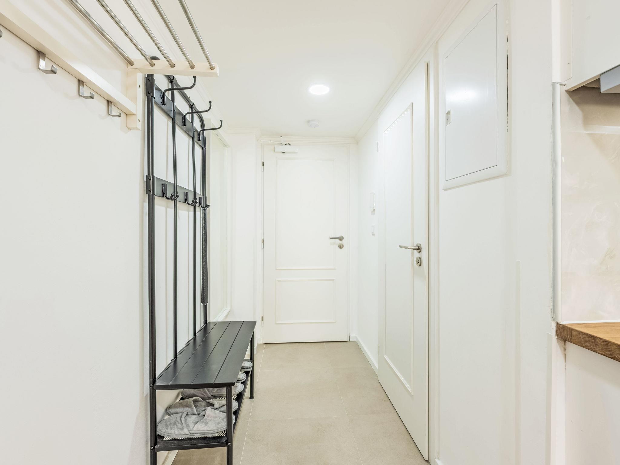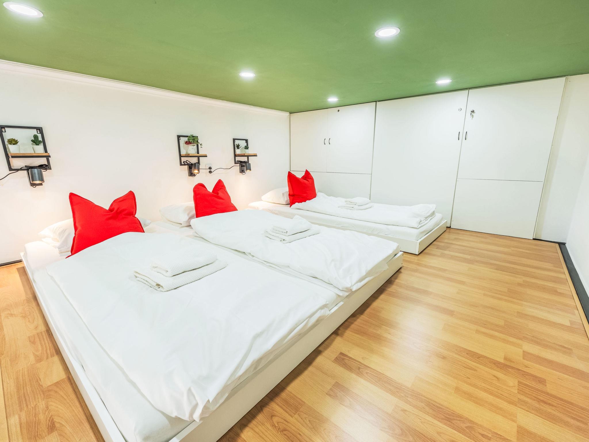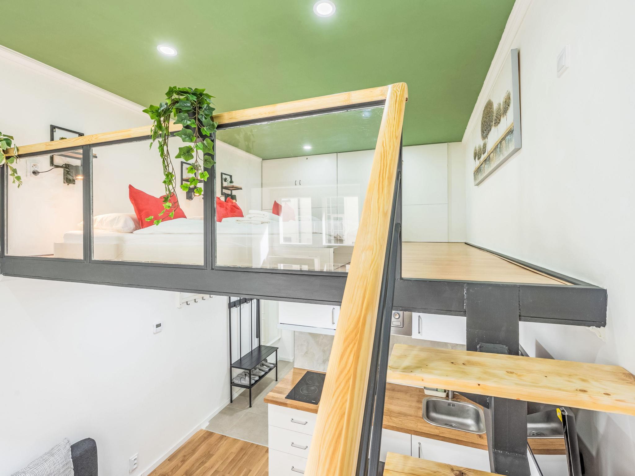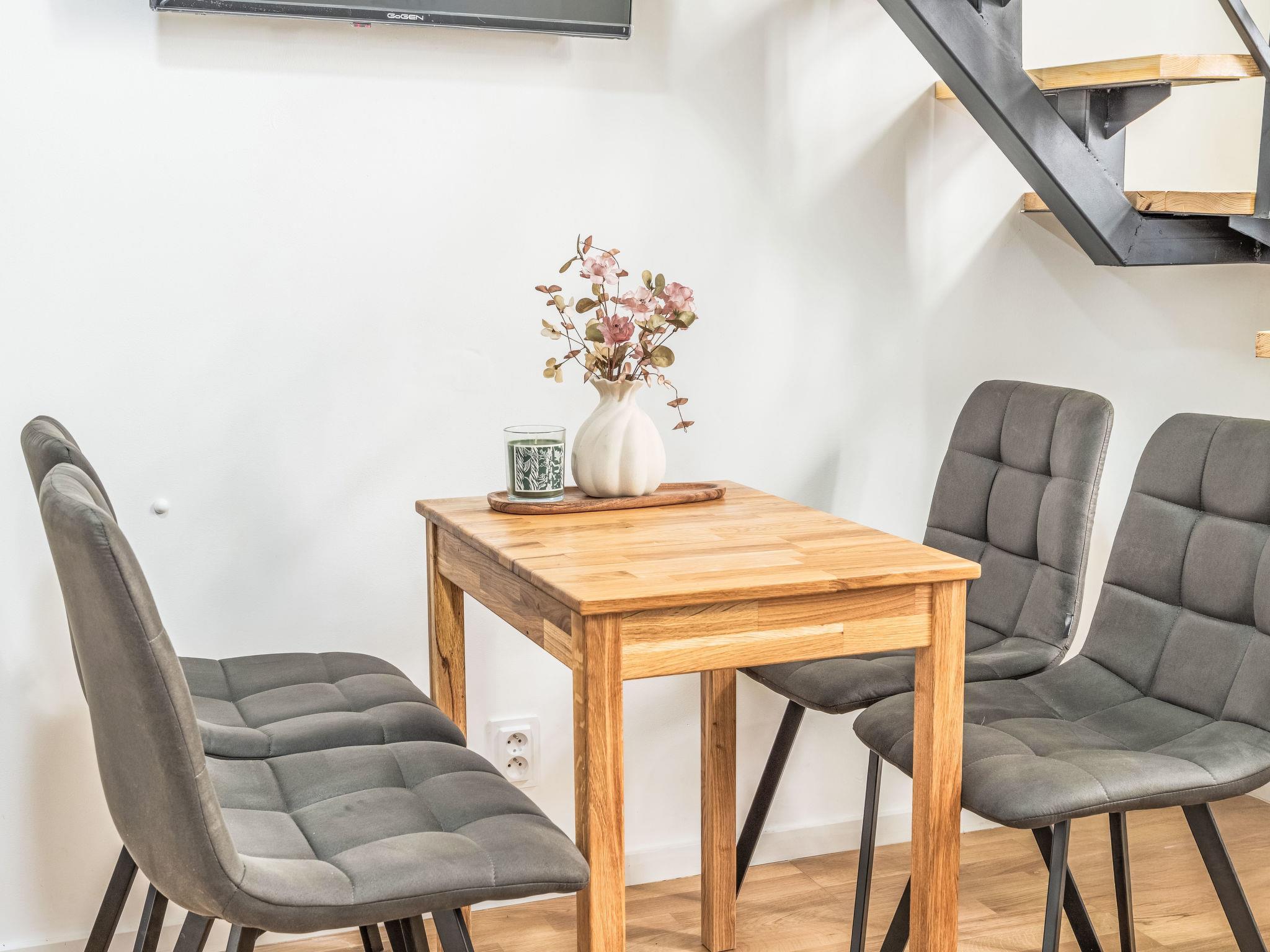 2-room apartment 30 m2 on 3rd floor. Bright, fully renovated, very beautiful and modern furnishings: entrance hall. Living/dining room with 1 double sofabed (150 cm, length 200 cm), dining table and TV. Kitchenette (2 induction hot plates, toaster, kettle, microwave, freezer, electric coffee machine). Shower/WC. Upper floor: (steep stair) open gallery with 1 bed (100 cm, length 200 cm), 1 double bed (160 cm, length 200 cm). Facilities: washing machine, baby cot, hair dryer. Internet (WiFi, free). Please note: suitable for families apartment courtyard side. Non-smokers only. Maximum 1 pet/ dog allowed. Smoke alarm, fire extinguisher. Instead of an enclosed bedroom, some sleeping areas are located in an open-plan area (gallery, alcove, etc.).