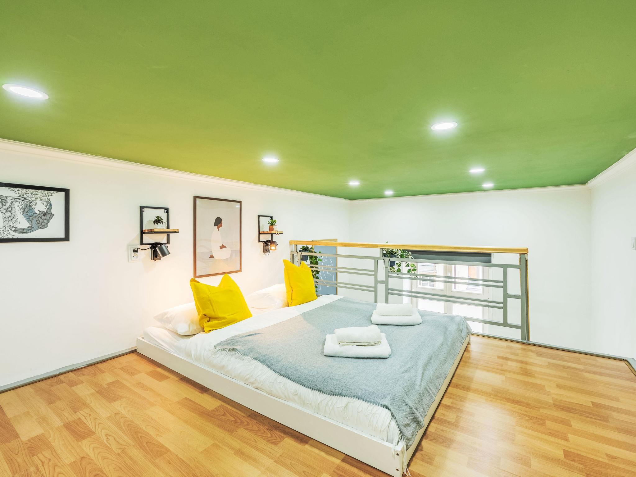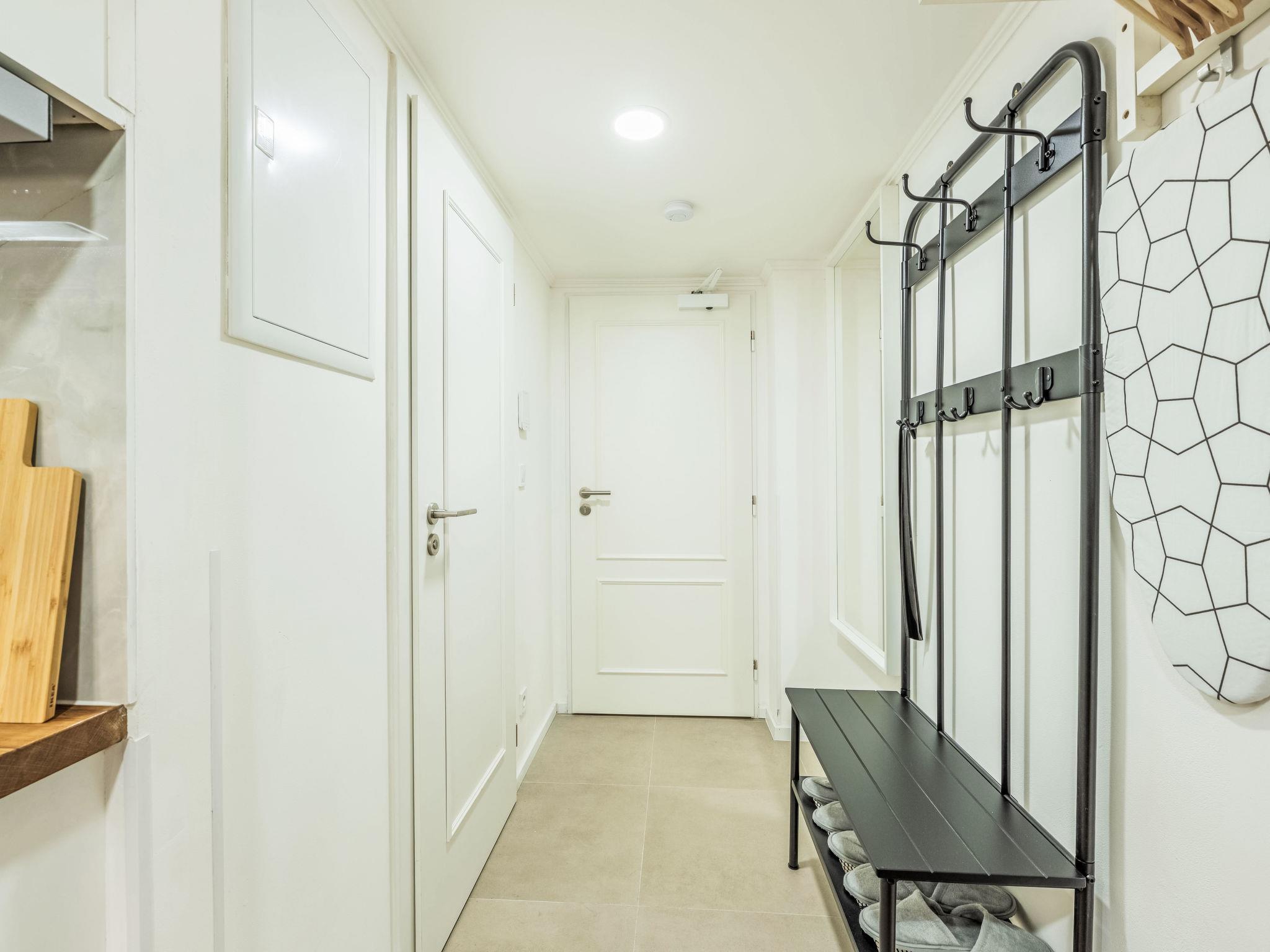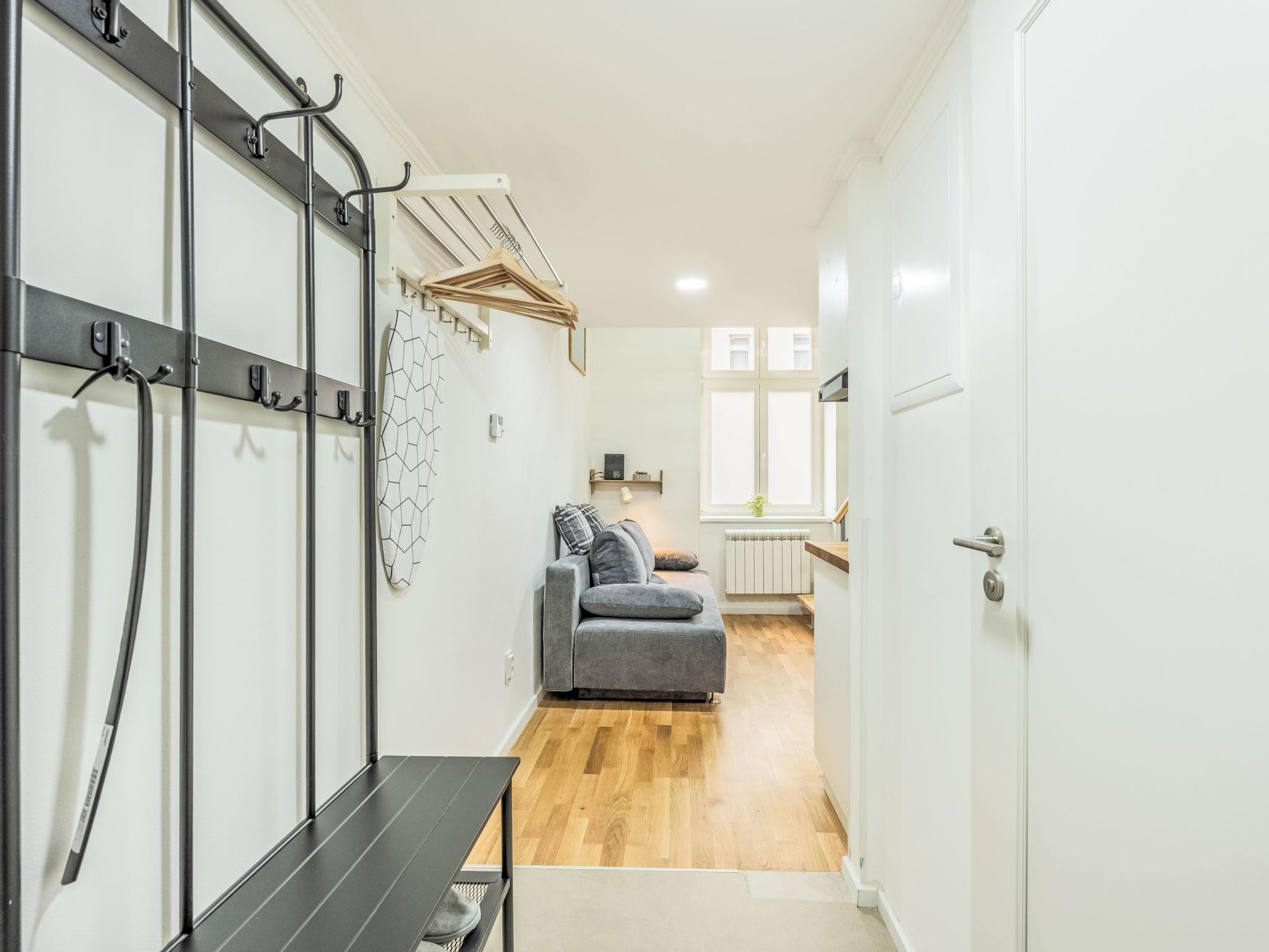2-room apartment 30 m2 on 3rd floor. Bright, fully renovated, very beautiful and modern furnishings: entrance hall. Living/dining room with 1 double sofabed (150 cm, length 200 cm), dining table and TV. Kitchenette (2 induction hot plates, toaster, kettle, microwave, freezer, electric coffee machine). Shower/WC. Upper floor: (steep stair) open gallery with 1 bed (100 cm, length 200 cm), 1 double bed (160 cm, length 200 cm). Facilities: washing machine, baby cot, hair dryer. Internet (WiFi, free). Please note: suitable for families apartment courtyard side. Non-smokers only. Maximum 1 pet/ dog allowed. Smoke alarm, fire extinguisher. Instead of an enclosed bedroom, some sleeping areas are located in an open-plan area (gallery, alcove, etc.).