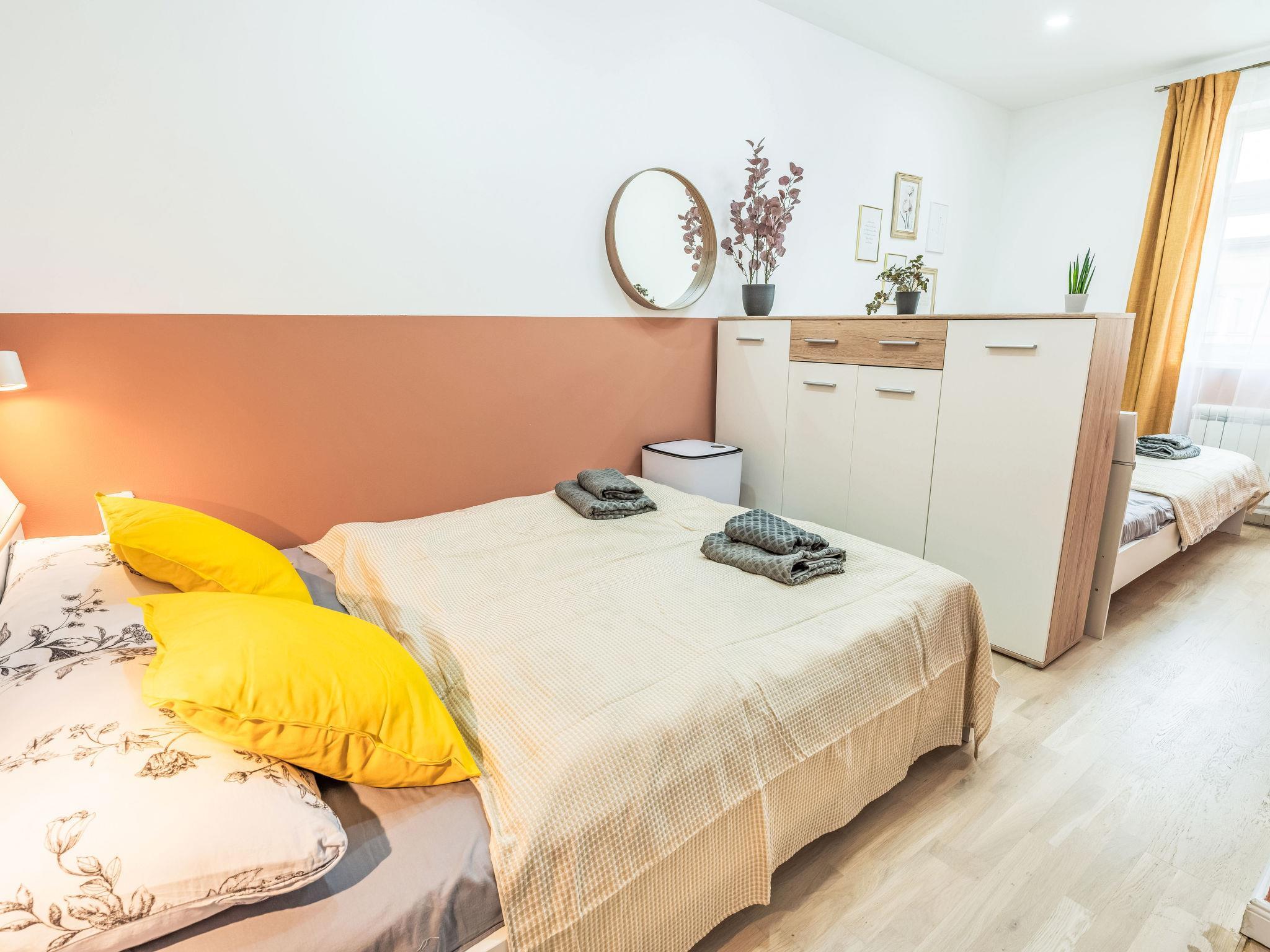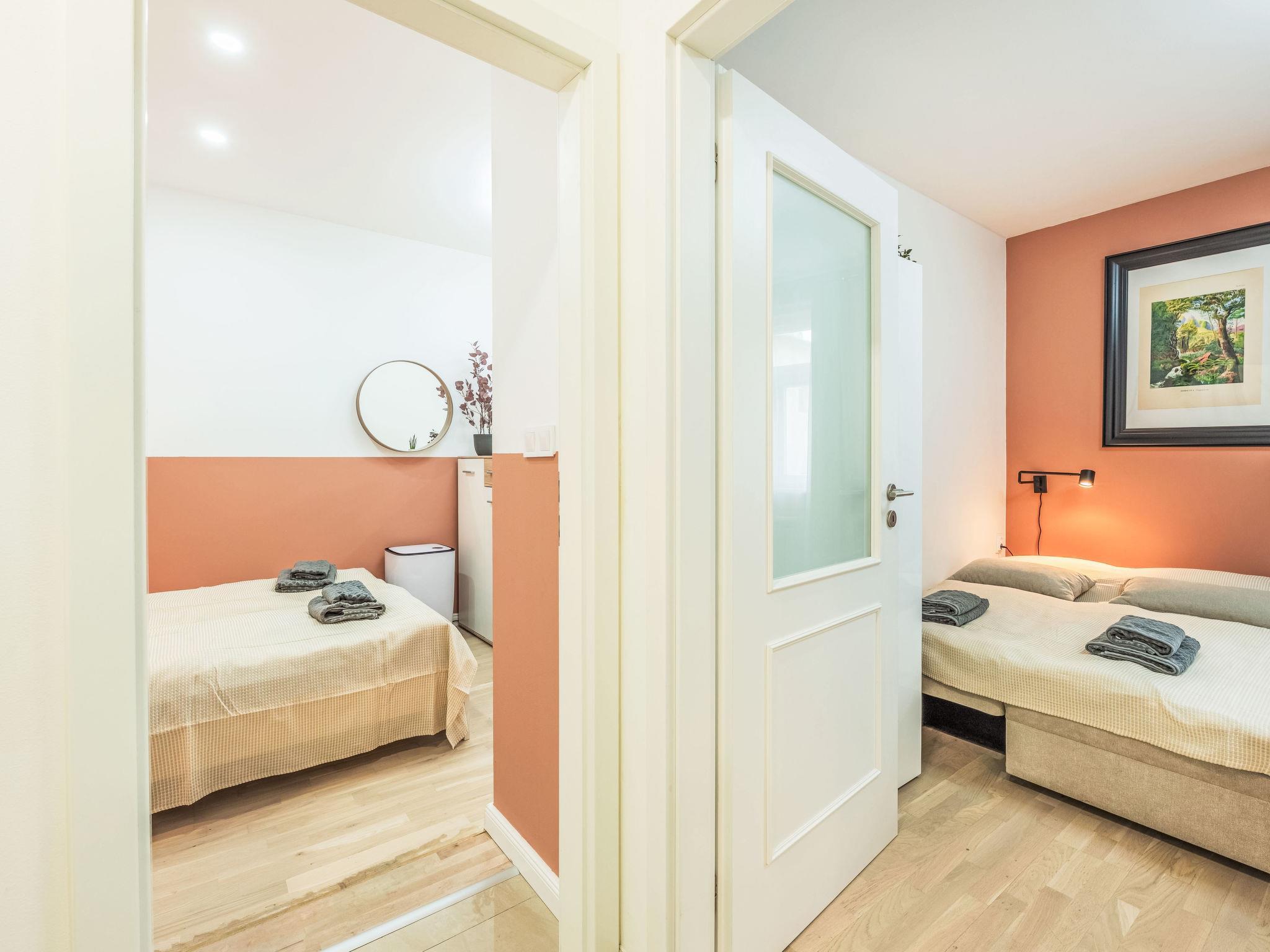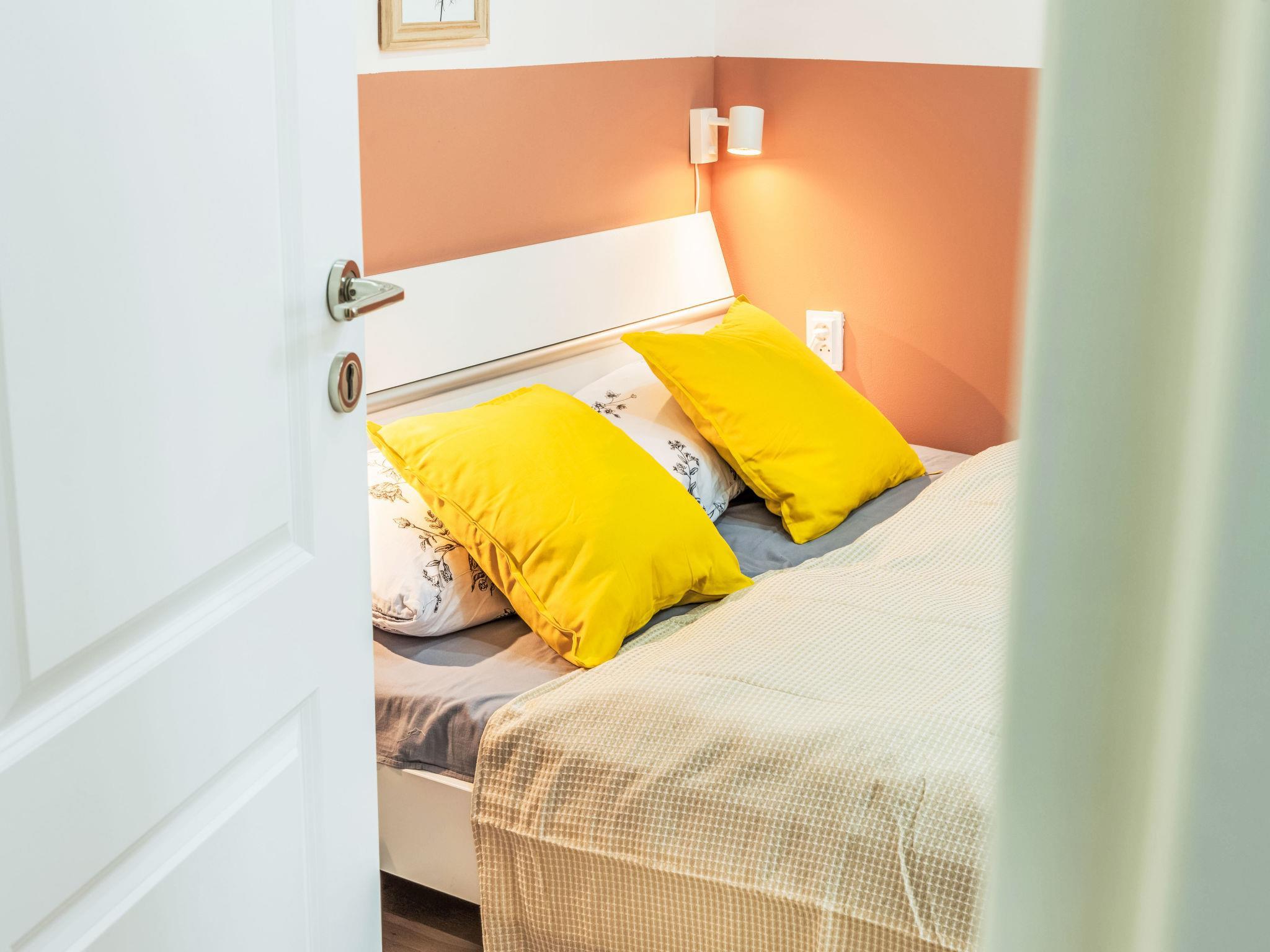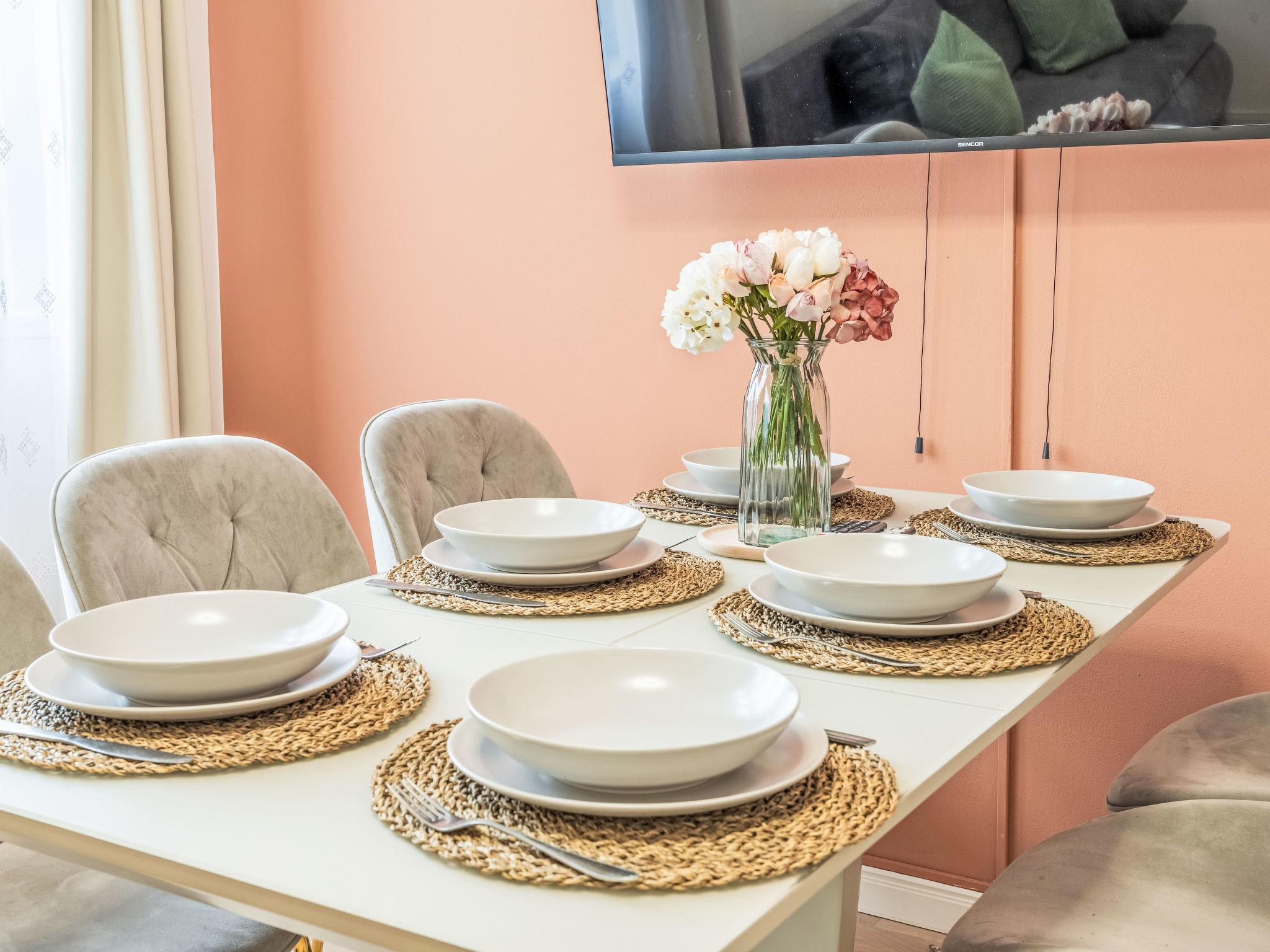 2-room apartment 39 m2 on 4th floor. Bright, fully renovated, very beautiful and modern furnishings: entrance hall. Living/dining room with 1 double bed, dining table and TV. 1 room with 2 double beds. Kitchenette (2 induction hot plates, toaster, kettle, microwave, freezer, electric coffee machine). Shower/WC. Facilities: washing machine, baby cot, hair dryer. Internet (WiFi, free). Please note: suitable for families apartment courtyard side. Non-smokers only. Maximum 1 pet/ dog allowed. Smoke alarm.