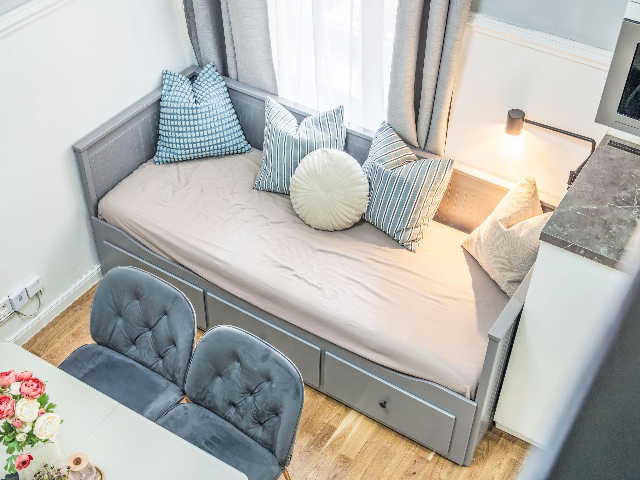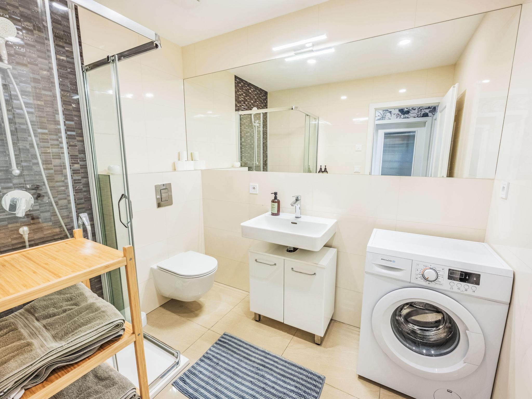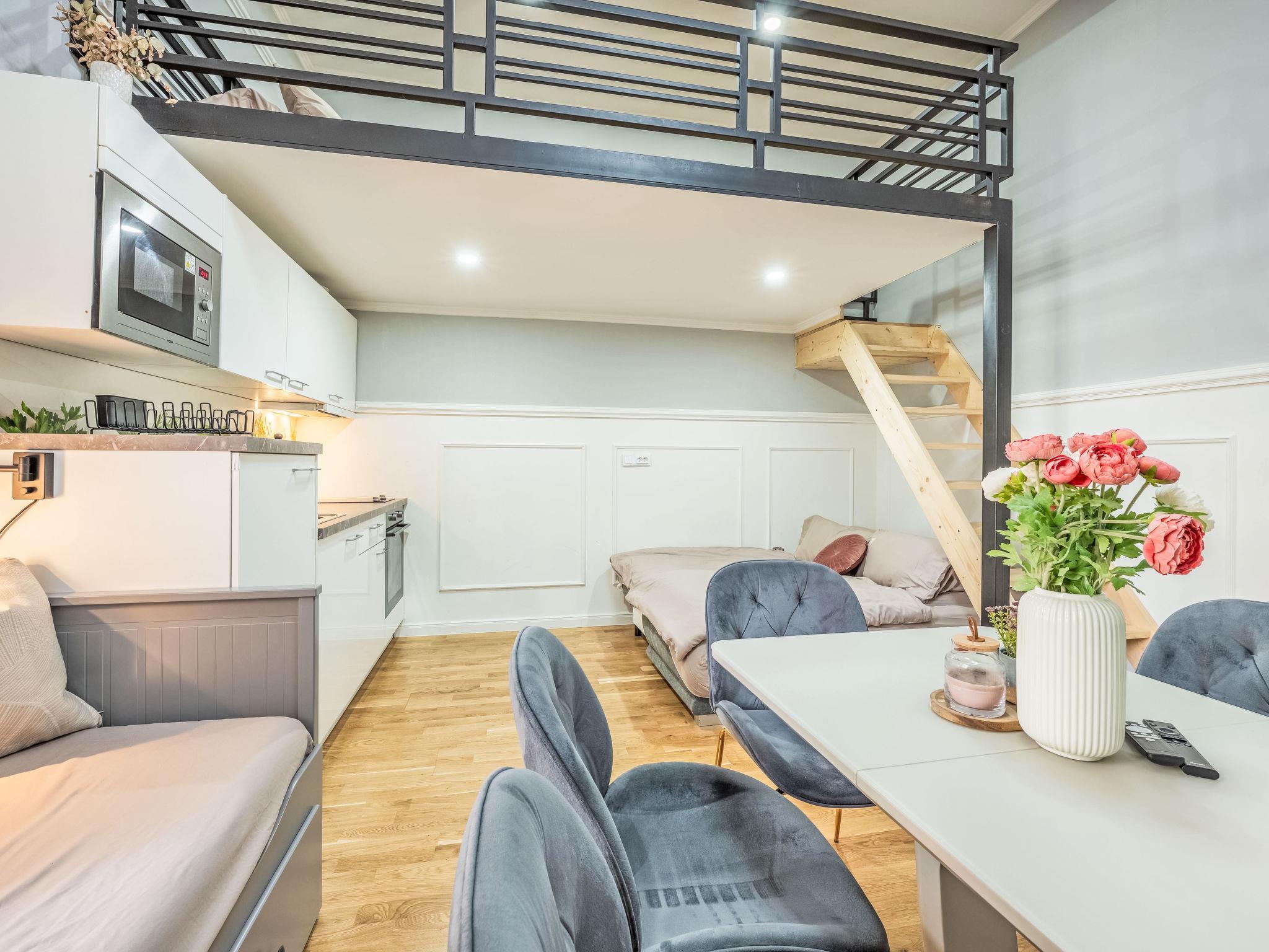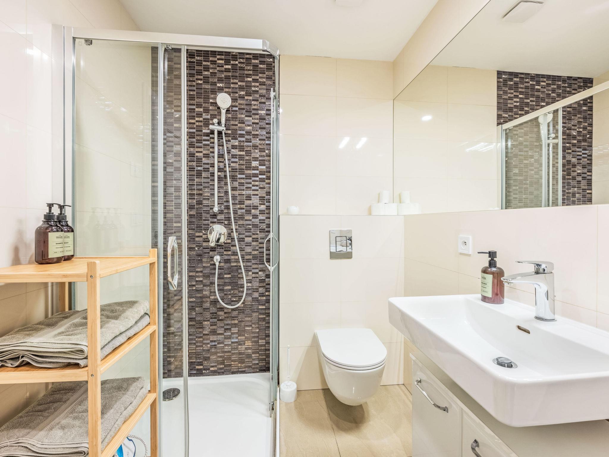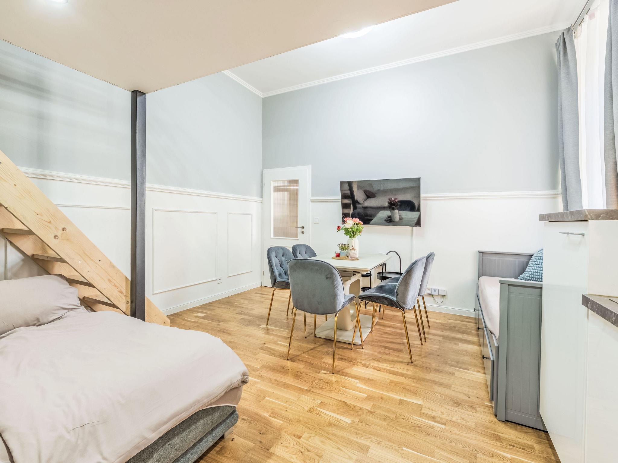 3-room apartment 52 m2 on 1st floor. Bright, fully renovated, very beautiful and modern furnishings: entrance hall. Living/dining room with 2 double beds, dining table and TV. 1 room with 1 bed and 1 french bed (160 cm). Open small gallery with 1 double bed. Kitchenette (oven, 2 induction hot plates, toaster, kettle, microwave, freezer, electric coffee machine). Shower/WC. Facilities: washing machine, baby cot, hair dryer. Internet (WiFi, free). Please note: suitable for families apartment courtyard side. Non-smokers only. Maximum 1 pet/ dog allowed. Smoke alarm. Instead of an enclosed bedroom, some sleeping areas are located in an open-plan area (gallery, alcove, etc.).